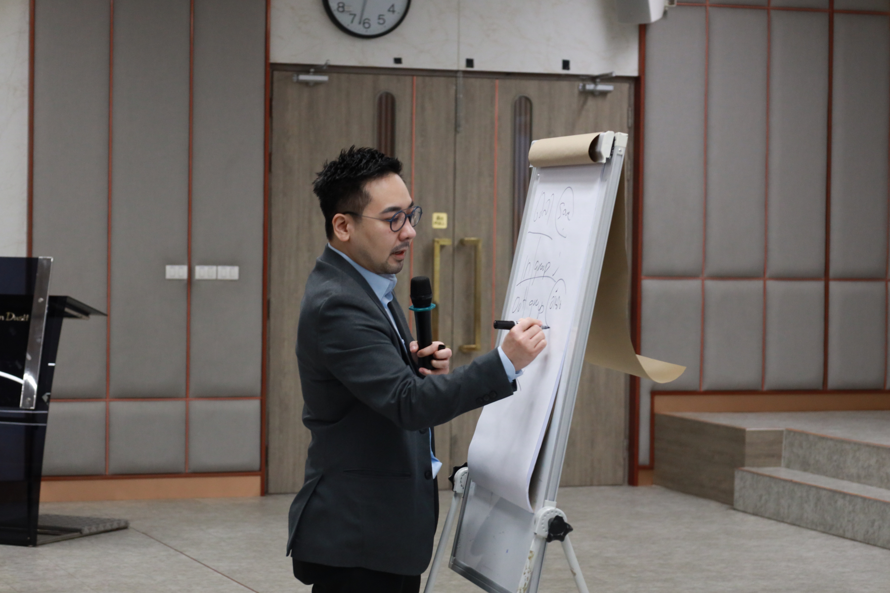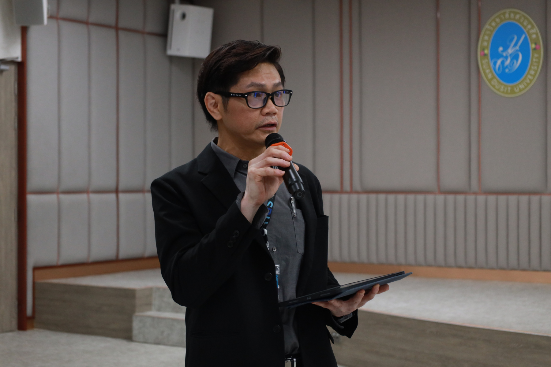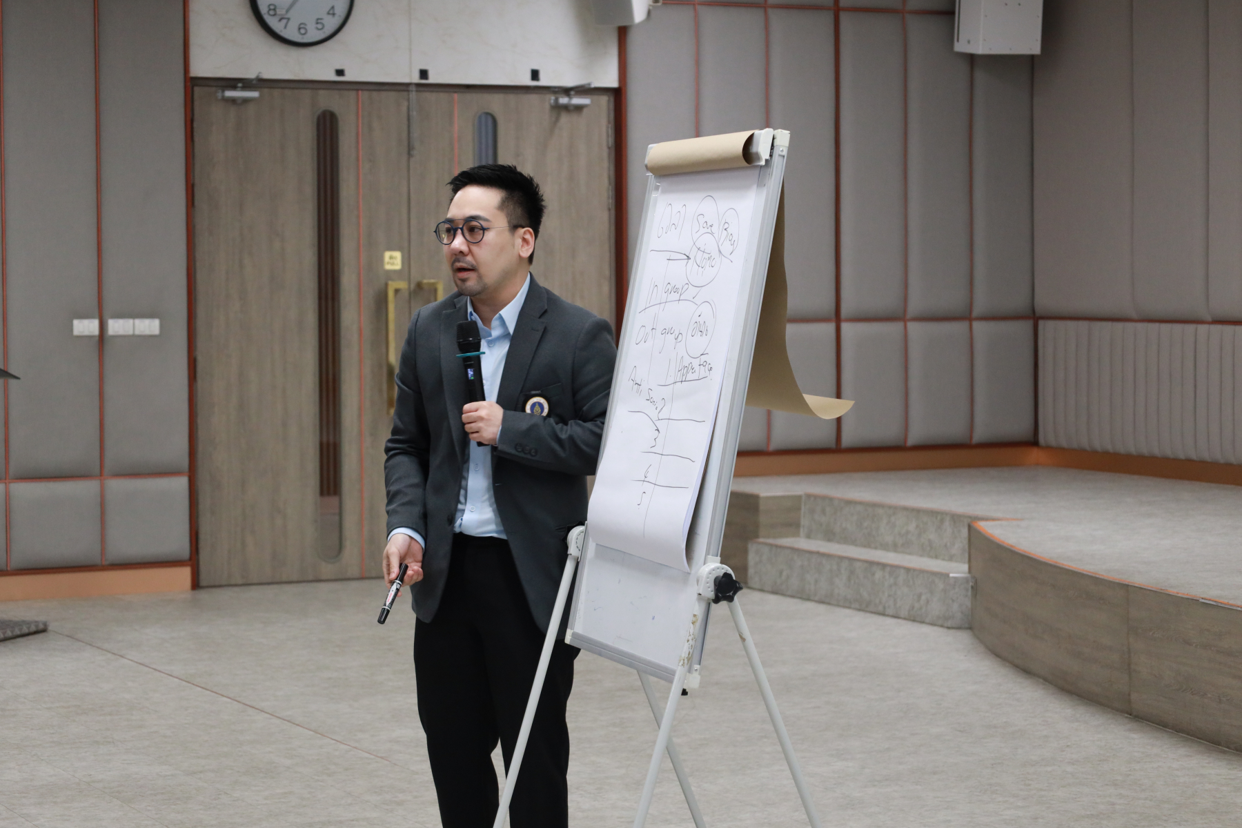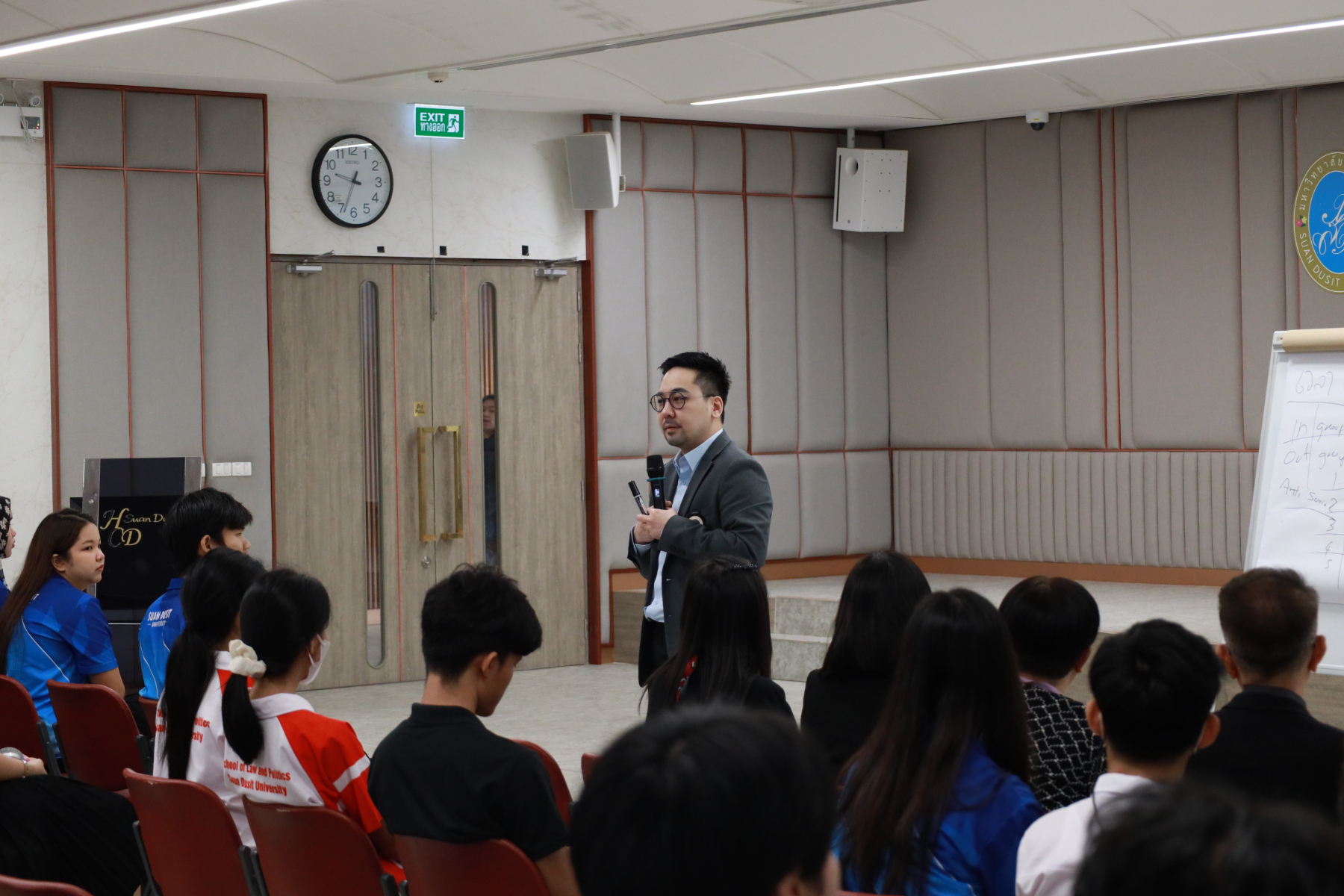 หลักสูตรศิลปศาสตรบัณฑิต สาขาวิชาภาษาและการสื่อสาร คณะมนุษยศาสตร์และสังคมศาสตร์ จัดโครงการ “พลังภาษาไทย” การพัฒนานักศึกษาเพื่อส่งเสริมทักษะการสื่อสารภาษาไทย เป็นส่วนหนึ่งของกิจกรรมการเรียนการสอนรายวิชาทักษะการสื่อสารภาษาไทย วิทยากรโดย ดร.ตฤณห์ โพธิ์รักษา บรรยายในหัวข้อ “เข้าใจการสื่อสาร อ่านคนเป็น” ณ ห้องประชุม 301 อาคาร ดร.ศิโรจน์ ผลพันธิน วันจันทร์ที่ 22 ธันวาคม 2568