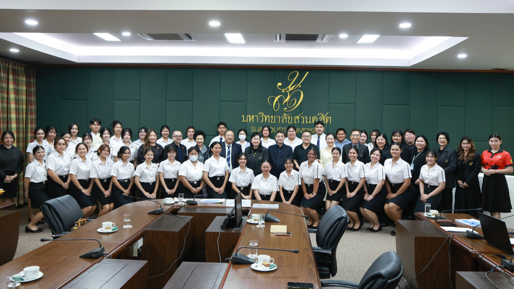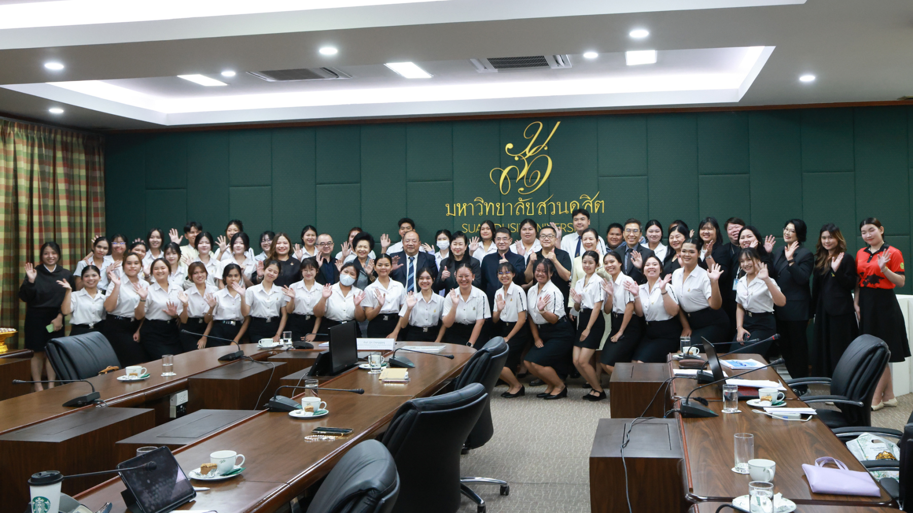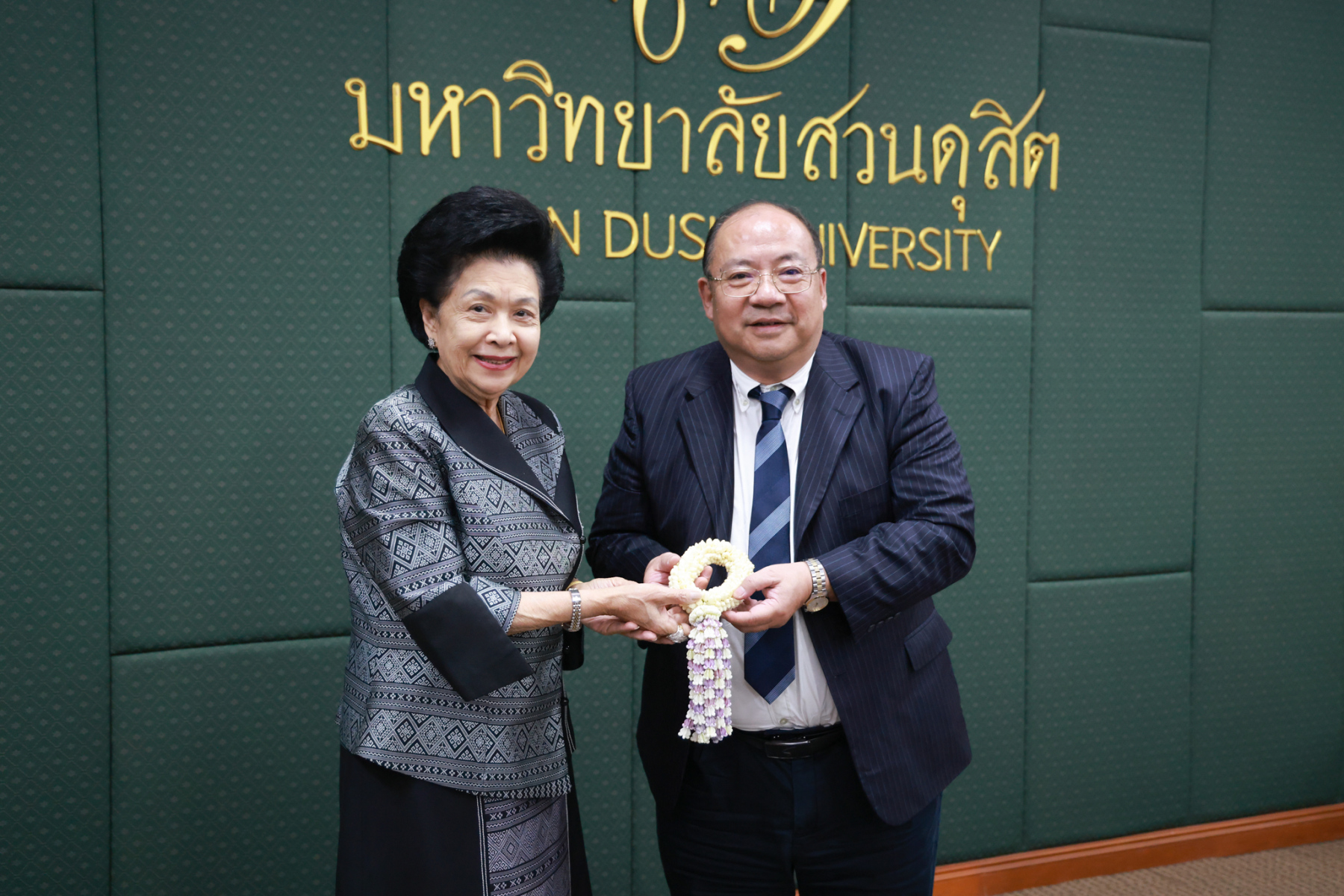 พิธีเปิดศูนย์ความร่วมมือฯ จัดขึ้น ณ อาคาร 2 ชั้น 3 มหาวิทยาลัยสวนดุสิต โดยมีคณะผู้บริหารจากทั้งสองหน่วยงานเข้าร่วมงาน โดย ผศ.ดร.พรชณิตว์ แก้วเนตร รองอธิการบดีฝ่ายวิชาการและกิจการต่างประเทศ มหาวิทยาลัยสวนดุสิต กล่าวถึงความเป็นมาและวัตถุประสงค์ของความร่วมมือในการจัดตั้งศูนย์ฯ Mr. Zhu Sichang รองอธิการบดีมหาวิทยาลัย GXUFE กล่าวแสดงความยินดีและเน้นย้ำถึงความสำคัญของมิตรภาพทางวิชาการระหว่างสองสถาบัน โดย ดร.วรานี เวสสุนทรเทพ รองอธิการบดีฝ่ายวิทยาเขตสุพรรณบุรี และ รศ.พัชรี สวนแก้ว รองอธิการบดีฝ่ายกิจการนักศึกมอบแจกันดอกไม้แสดงความยินดี