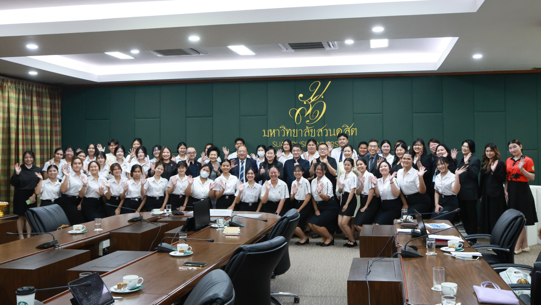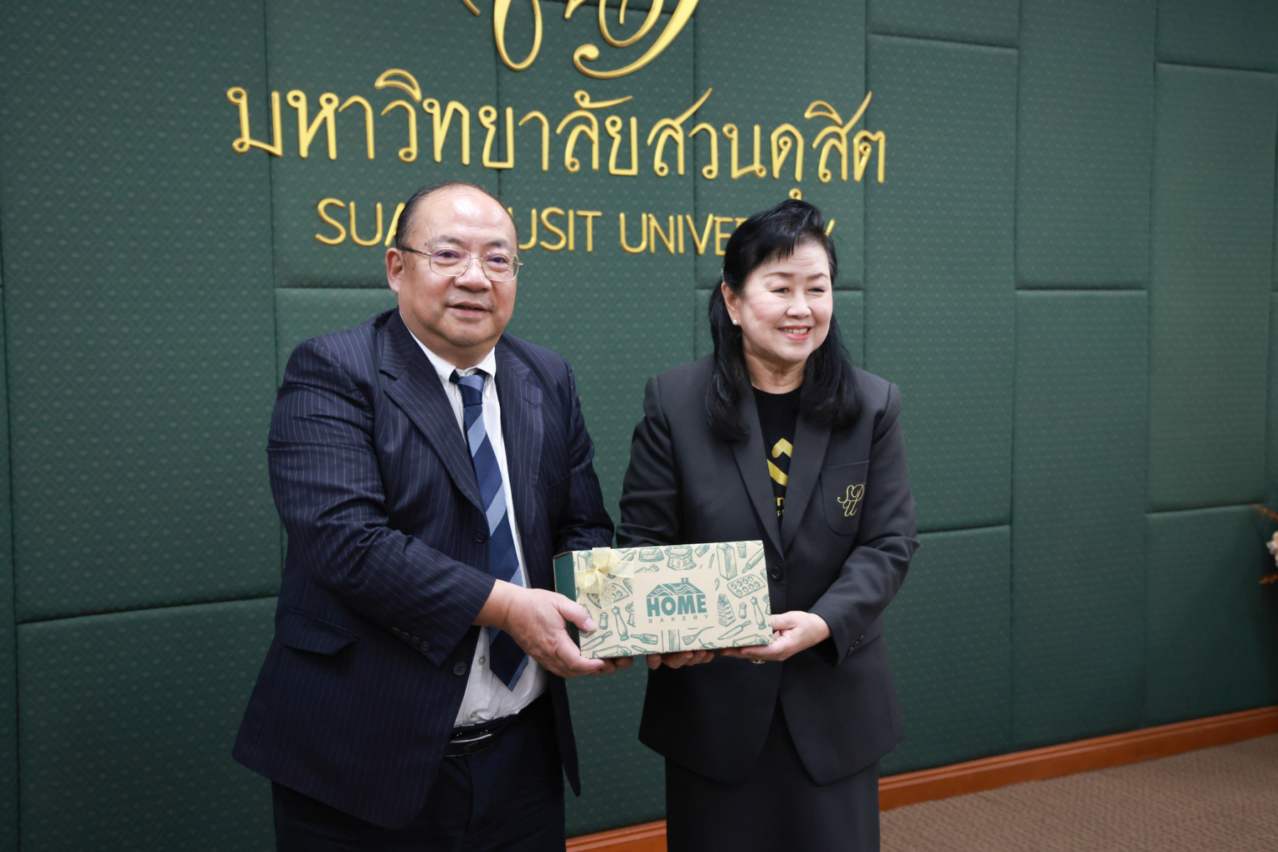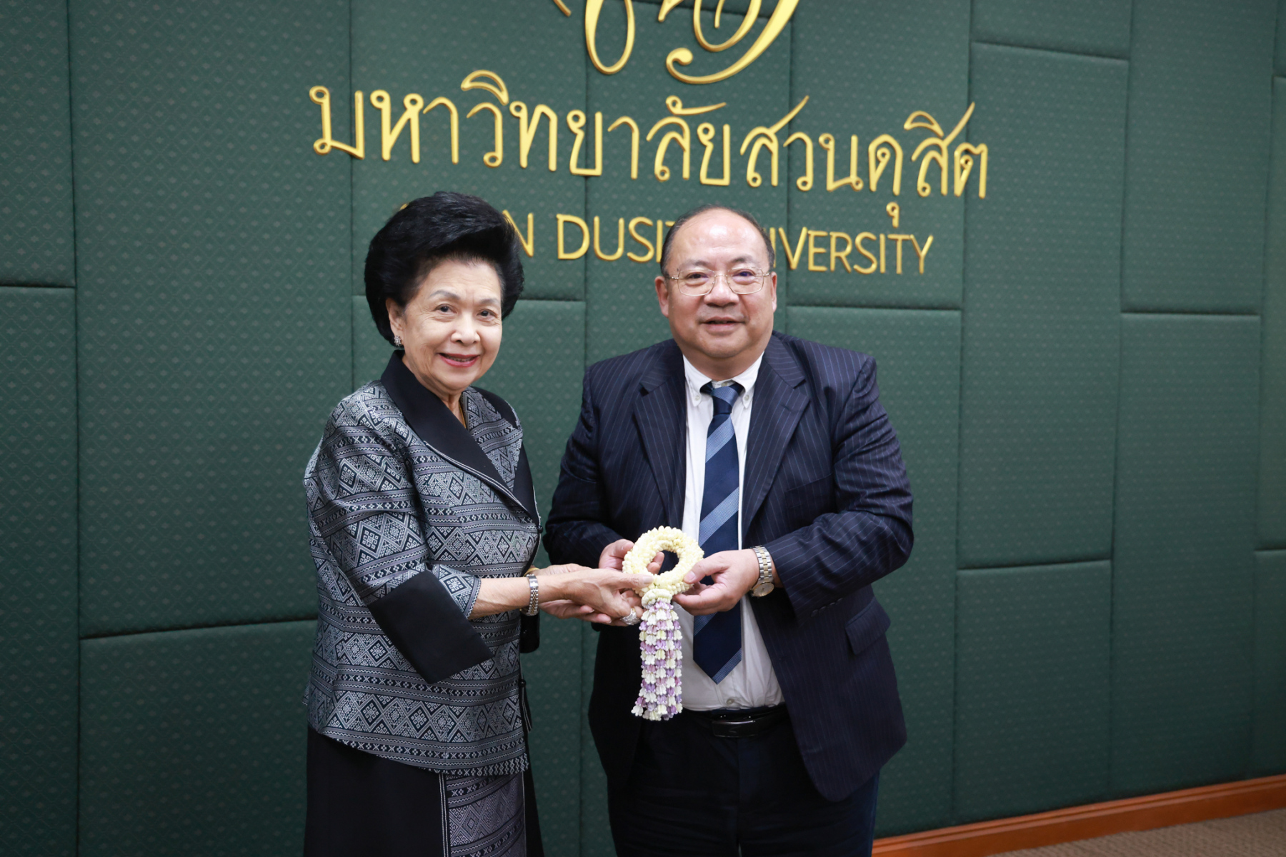 พิธีเปิดศูนย์ความร่วมมือฯ จัดขึ้น ณ อาคาร 2 ชั้น 3 มหาวิทยาลัยสวนดุสิต โดยมีคณะผู้บริหารจากทั้งสองหน่วยงานเข้าร่วมงาน โดย ผศ.ดร.พรชณิตว์ แก้วเนตร รองอธิการบดีฝ่ายวิชาการและกิจการต่างประเทศ มหาวิทยาลัยสวนดุสิต กล่าวถึงความเป็นมาและวัตถุประสงค์ของความร่วมมือในการจัดตั้งศูนย์ฯ Mr. Zhu Sichang รองอธิการบดีมหาวิทยาลัย GXUFE กล่าวแสดงความยินดีและเน้นย้ำถึงความสำคัญของมิตรภาพทางวิชาการระหว่างสองสถาบัน โดย ดร.วรานี เวสสุนทรเทพ รองอธิการบดีฝ่ายวิทยาเขตสุพรรณบุรี และ รศ.พัชรี สวนแก้ว รองอธิการบดีฝ่ายกิจการนักศึกมอบแจกันดอกไม้แสดงความยินดี