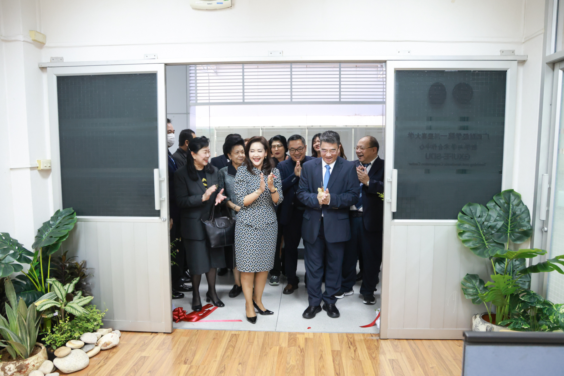 พิธีเปิดศูนย์ความร่วมมือฯ จัดขึ้น ณ อาคาร 2 ชั้น 3 มหาวิทยาลัยสวนดุสิต โดยมีคณะผู้บริหารจากทั้งสองหน่วยงานเข้าร่วมงาน โดย ผศ.ดร.พรชณิตว์ แก้วเนตร รองอธิการบดีฝ่ายวิชาการและกิจการต่างประเทศ มหาวิทยาลัยสวนดุสิต กล่าวถึงความเป็นมาและวัตถุประสงค์ของความร่วมมือในการจัดตั้งศูนย์ฯ Mr. Zhu Sichang รองอธิการบดีมหาวิทยาลัย GXUFE กล่าวแสดงความยินดีและเน้นย้ำถึงความสำคัญของมิตรภาพทางวิชาการระหว่างสองสถาบัน โดย ดร.วรานี เวสสุนทรเทพ รองอธิการบดีฝ่ายวิทยาเขตสุพรรณบุรี และ รศ.พัชรี สวนแก้ว รองอธิการบดีฝ่ายกิจการนักศึกมอบแจกันดอกไม้แสดงความยินดี