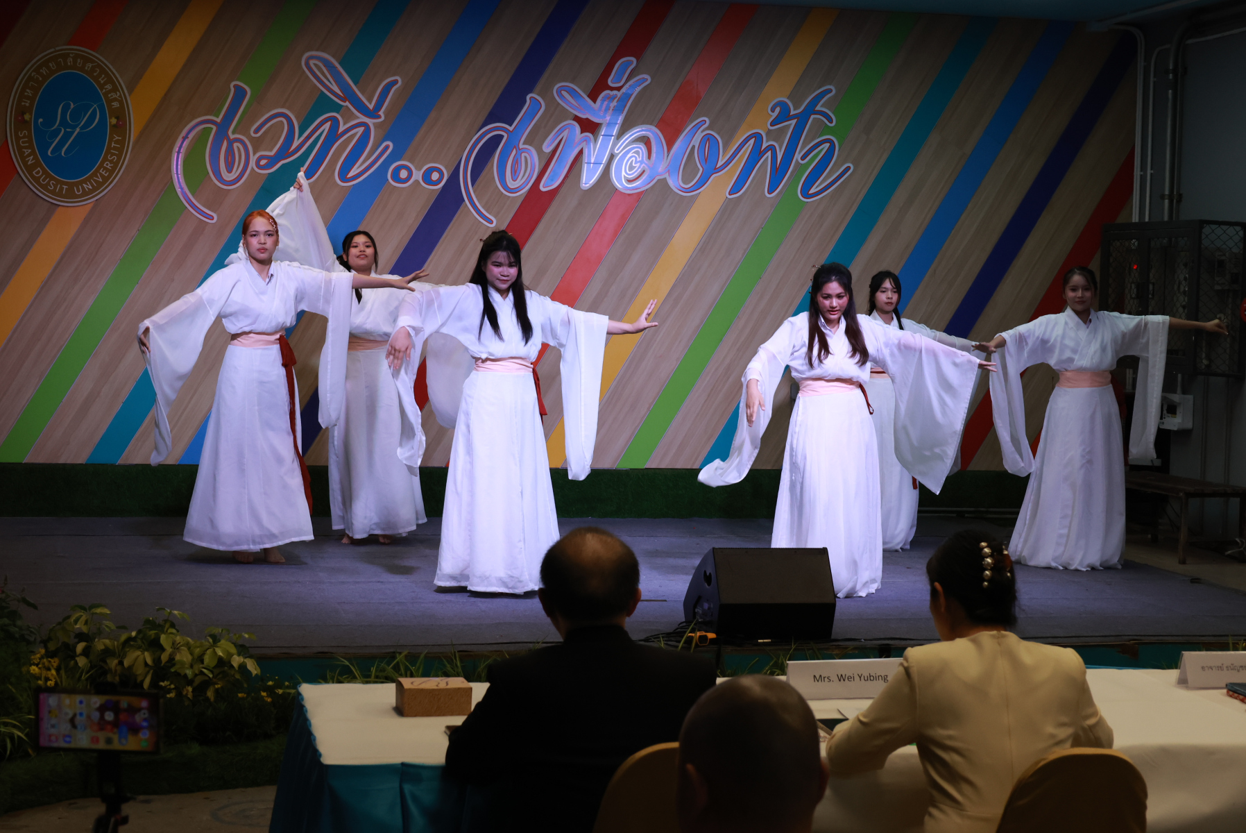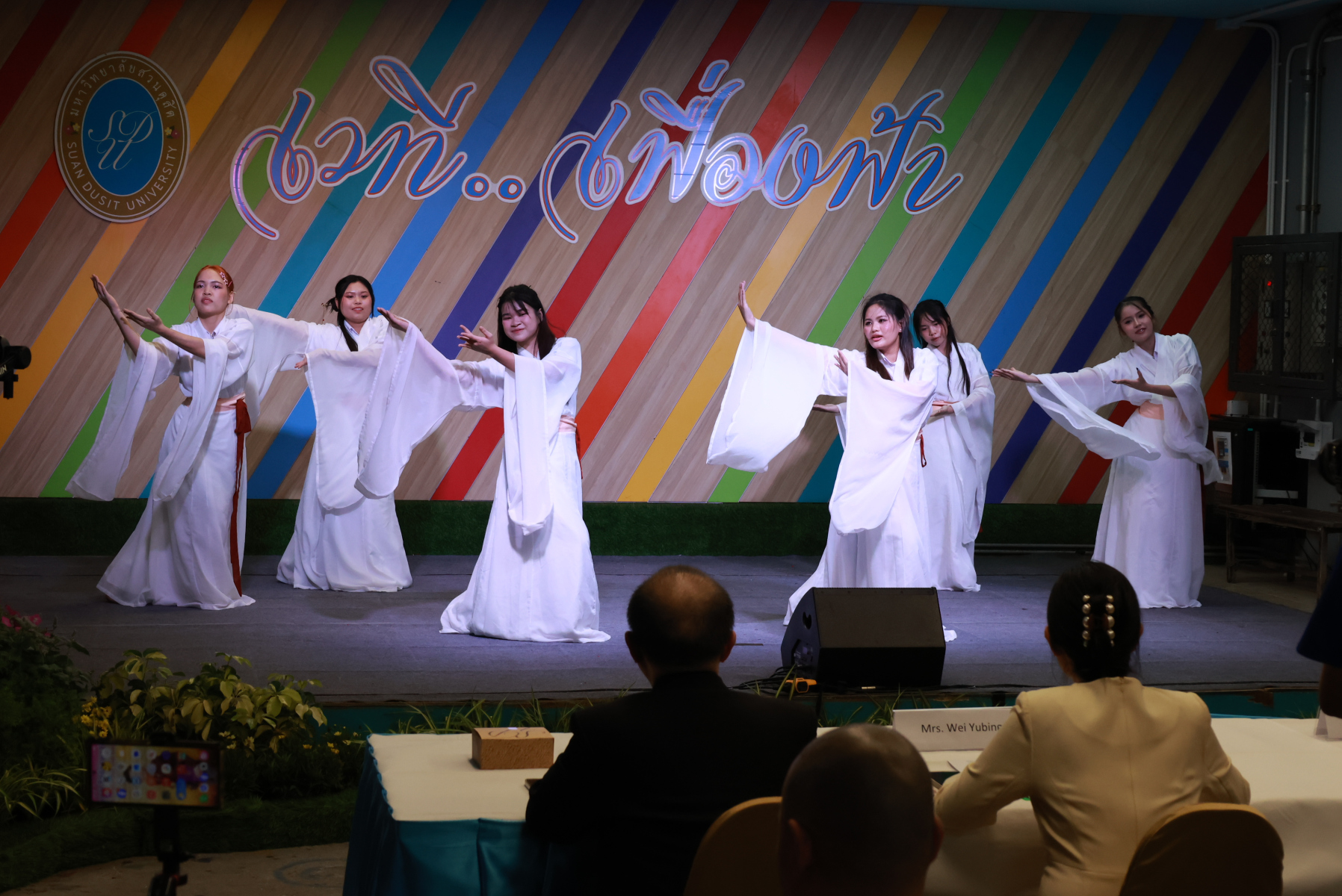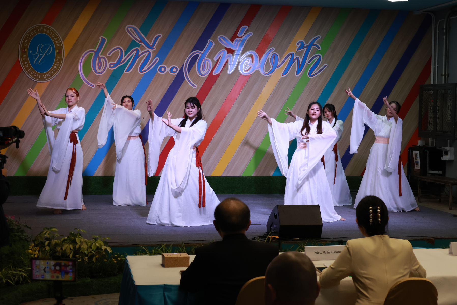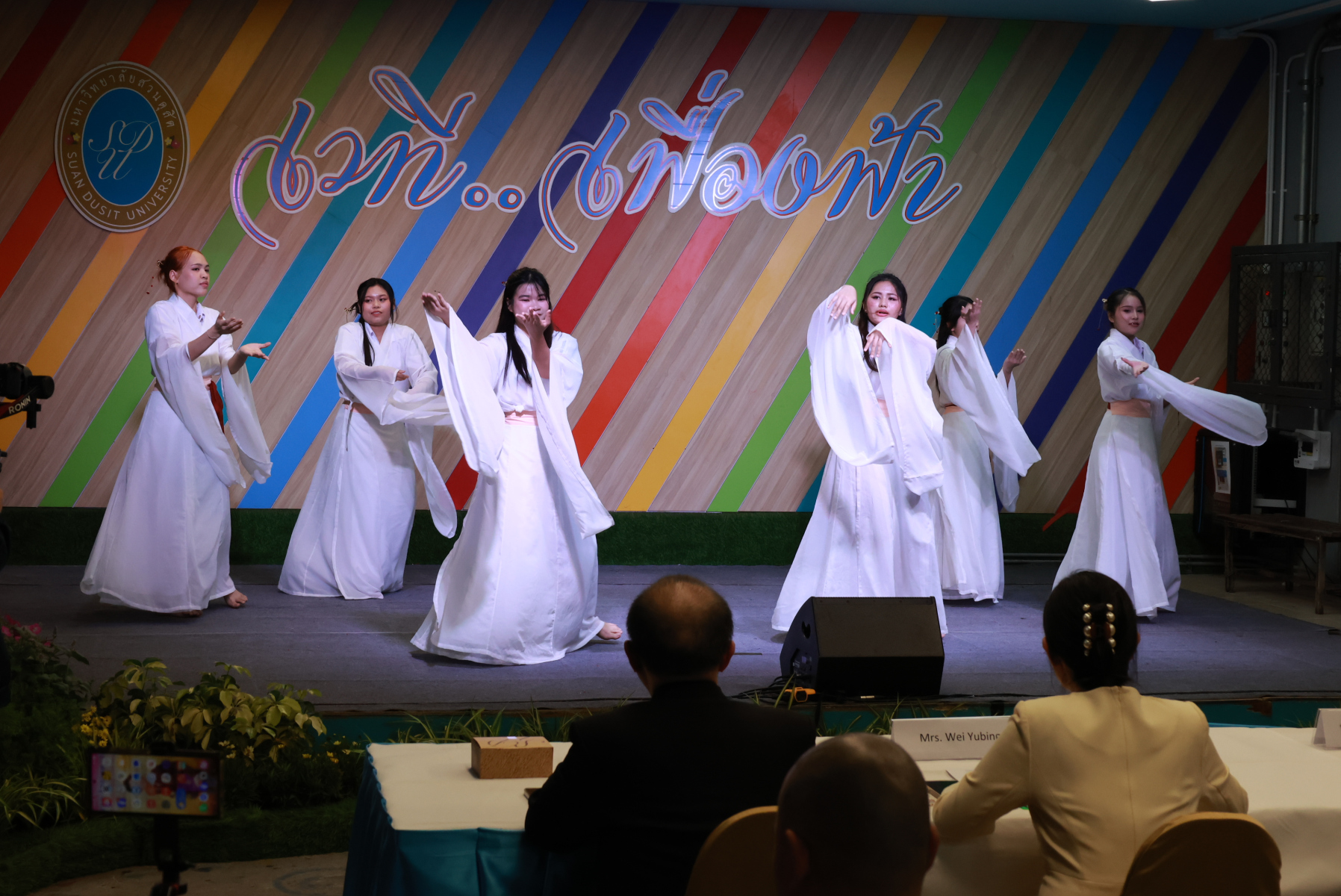 มหาวิทยาลัยสวนดุสิต โดยสถาบันขงจื่อมหาวิทยาลัยสวนดุสิต สุพรรณบุรี ร่วมกับหลักสูตรบริหารธุรกิจบัณฑิต สาขาธุรกิจระหว่างประเทศ ธุรกิจจีน–อาเซียน จัดโครงการประกวดศิลปะสะท้อนวัฒนธรรมไทย–จีน ครั้งที่ 5 ภายใต้หัวข้อ “ปีทองแห่งมิตรภาพไทย–จีน : การแสดงและศิลปะวัฒนธรรมร่วมสมัย” ในการนี้ คณะผู้จัดงานได้จัดพิธีไว้อาลัยแด่สมเด็จพระนางเจ้าสิริกิติ์ พระบรมราชินีนาถ พระบรมราชชนนีพันปีหลวง ลำดับถัดไป Mrs. Wei Yubing ผู้อำนวยการสถาบันขงจื่อมหาวิทยาลัยสวนดุสิต สุพรรณบุรี ฝ่ายจีน กล่าวรายงานวัตถุประสงค์ของการจัดงาน และผู้ช่วยศาสตราจารย์ ดร.พรชนิตย์ แก้วนุตร รองอธิการบดีฝ่ายวิชาการและกิจการต่างประเทศ พร้อมกรรมการอำนวยการสถาบันขงจื่อ กล่าวเปิดงานอย่างเป็นทางการ โดยมีการแสดงเปิดงานจากนักศึกษาหลักสูตรบริหารธุรกิจบัณฑิต สาขาธุรกิจระหว่างประเทศ ธุรกิจจีน–อาเซียน จากนั้นเป็นการประกวดศิลปะสะท้อนวัฒนธรรมไทย–จีน และการประกวดร้องเพลง เมื่อวันที่ 23 ธันวาคม 2568 ณ ลานเวทีเฟื่องฟ้า อาคาร 32 มหาวิทยาลัยสวนดุสิต