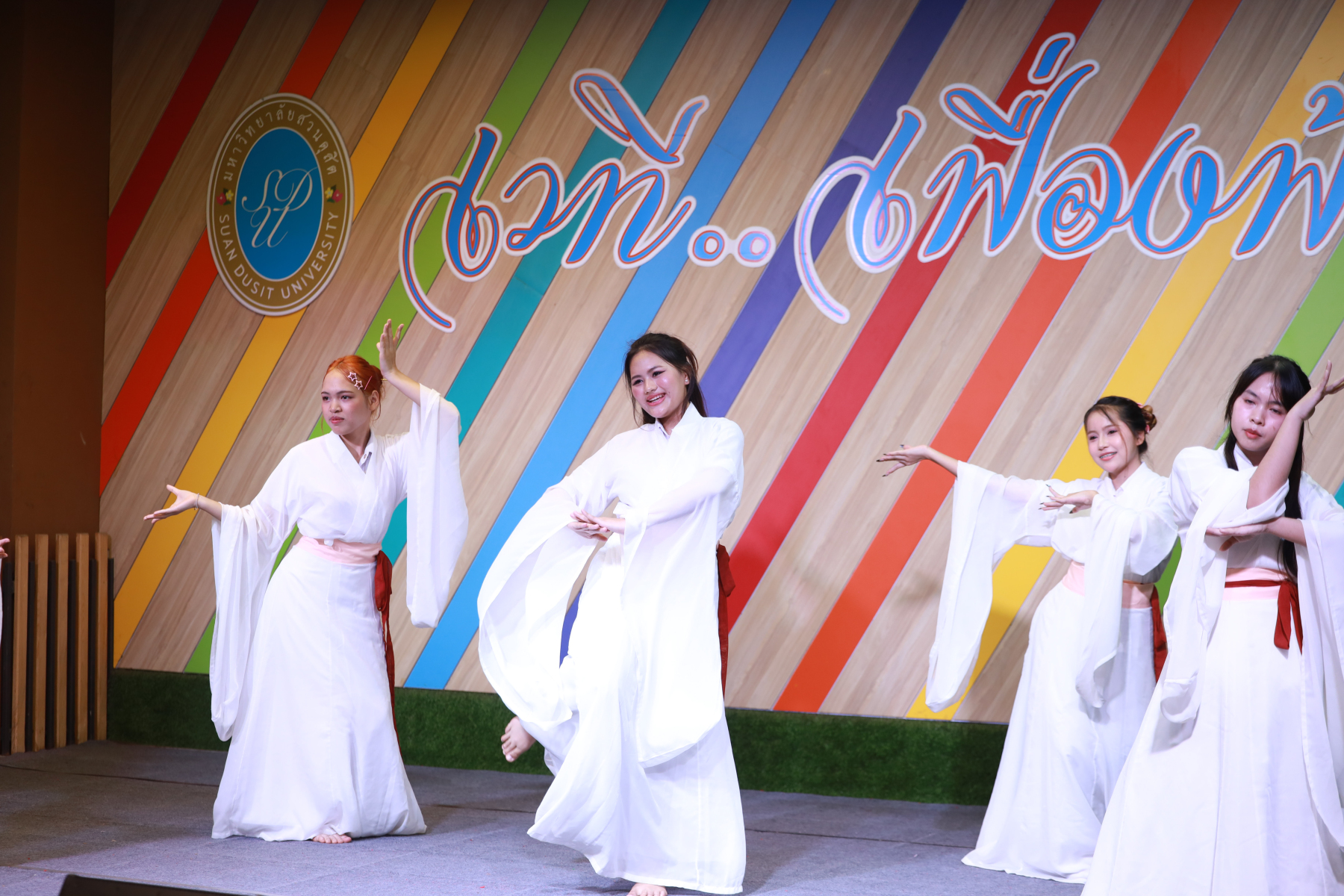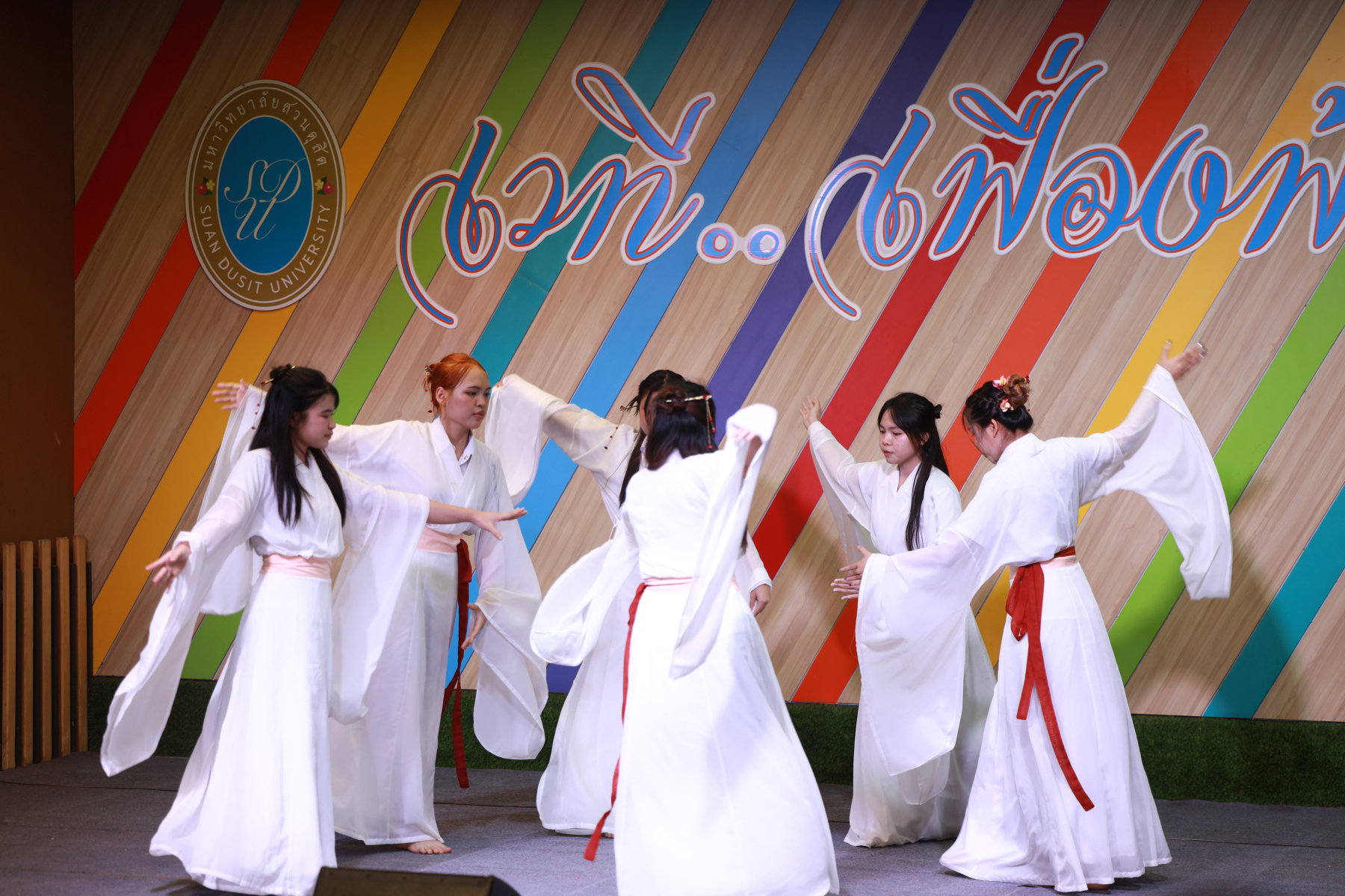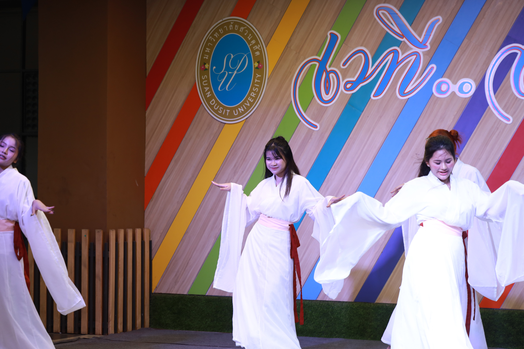 มหาวิทยาลัยสวนดุสิต โดยสถาบันขงจื่อมหาวิทยาลัยสวนดุสิต สุพรรณบุรี ร่วมกับหลักสูตรบริหารธุรกิจบัณฑิต สาขาธุรกิจระหว่างประเทศ ธุรกิจจีน–อาเซียน จัดโครงการประกวดศิลปะสะท้อนวัฒนธรรมไทย–จีน ครั้งที่ 5 ภายใต้หัวข้อ “ปีทองแห่งมิตรภาพไทย–จีน : การแสดงและศิลปะวัฒนธรรมร่วมสมัย” ในการนี้ คณะผู้จัดงานได้จัดพิธีไว้อาลัยแด่สมเด็จพระนางเจ้าสิริกิติ์ พระบรมราชินีนาถ พระบรมราชชนนีพันปีหลวง ลำดับถัดไป Mrs. Wei Yubing ผู้อำนวยการสถาบันขงจื่อมหาวิทยาลัยสวนดุสิต สุพรรณบุรี ฝ่ายจีน กล่าวรายงานวัตถุประสงค์ของการจัดงาน และผู้ช่วยศาสตราจารย์ ดร.พรชนิตย์ แก้วนุตร รองอธิการบดีฝ่ายวิชาการและกิจการต่างประเทศ พร้อมกรรมการอำนวยการสถาบันขงจื่อ กล่าวเปิดงานอย่างเป็นทางการ โดยมีการแสดงเปิดงานจากนักศึกษาหลักสูตรบริหารธุรกิจบัณฑิต สาขาธุรกิจระหว่างประเทศ ธุรกิจจีน–อาเซียน จากนั้นเป็นการประกวดศิลปะสะท้อนวัฒนธรรมไทย–จีน และการประกวดร้องเพลง เมื่อวันที่ 23 ธันวาคม 2568 ณ ลานเวทีเฟื่องฟ้า อาคาร 32 มหาวิทยาลัยสวนดุสิต