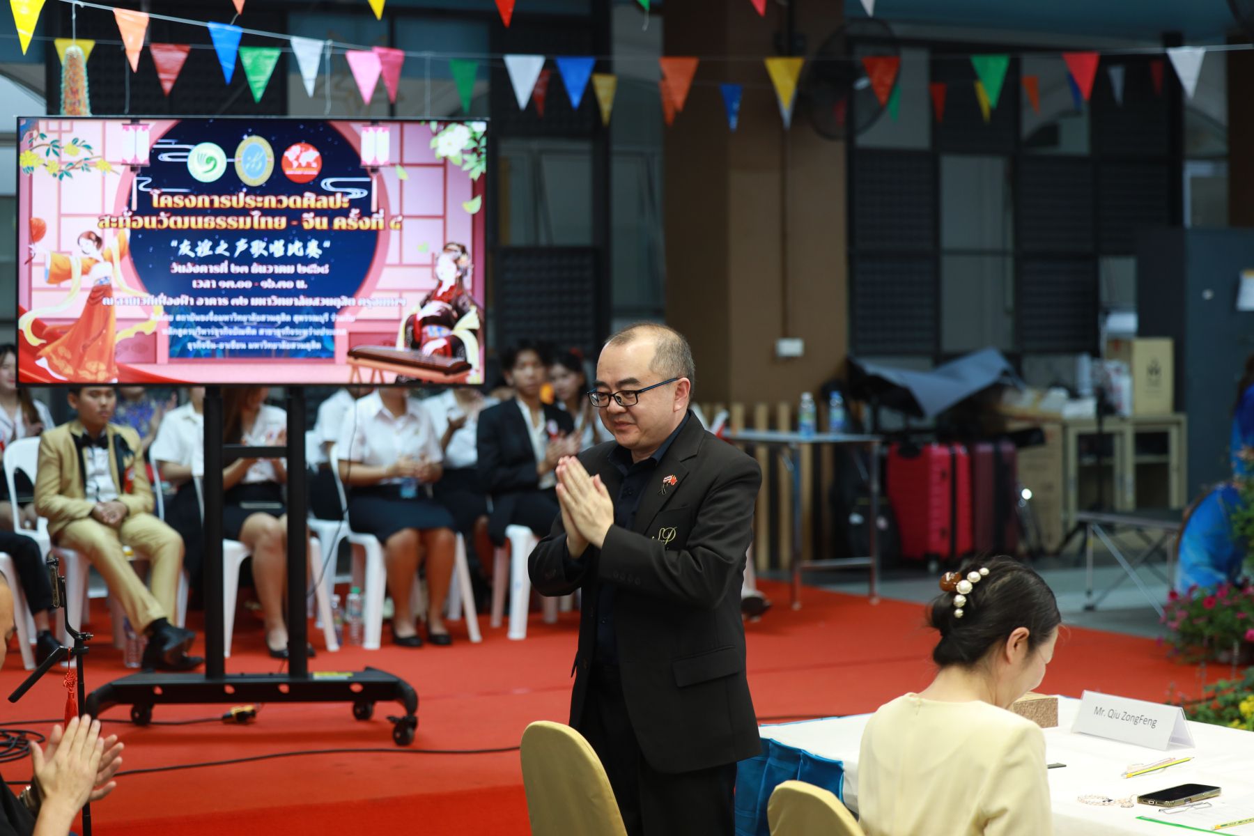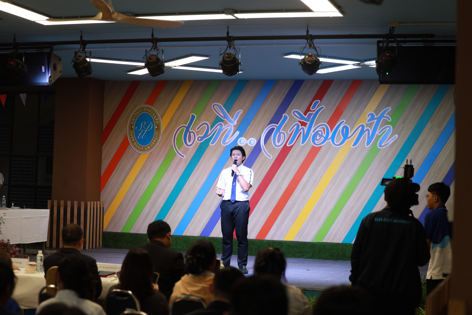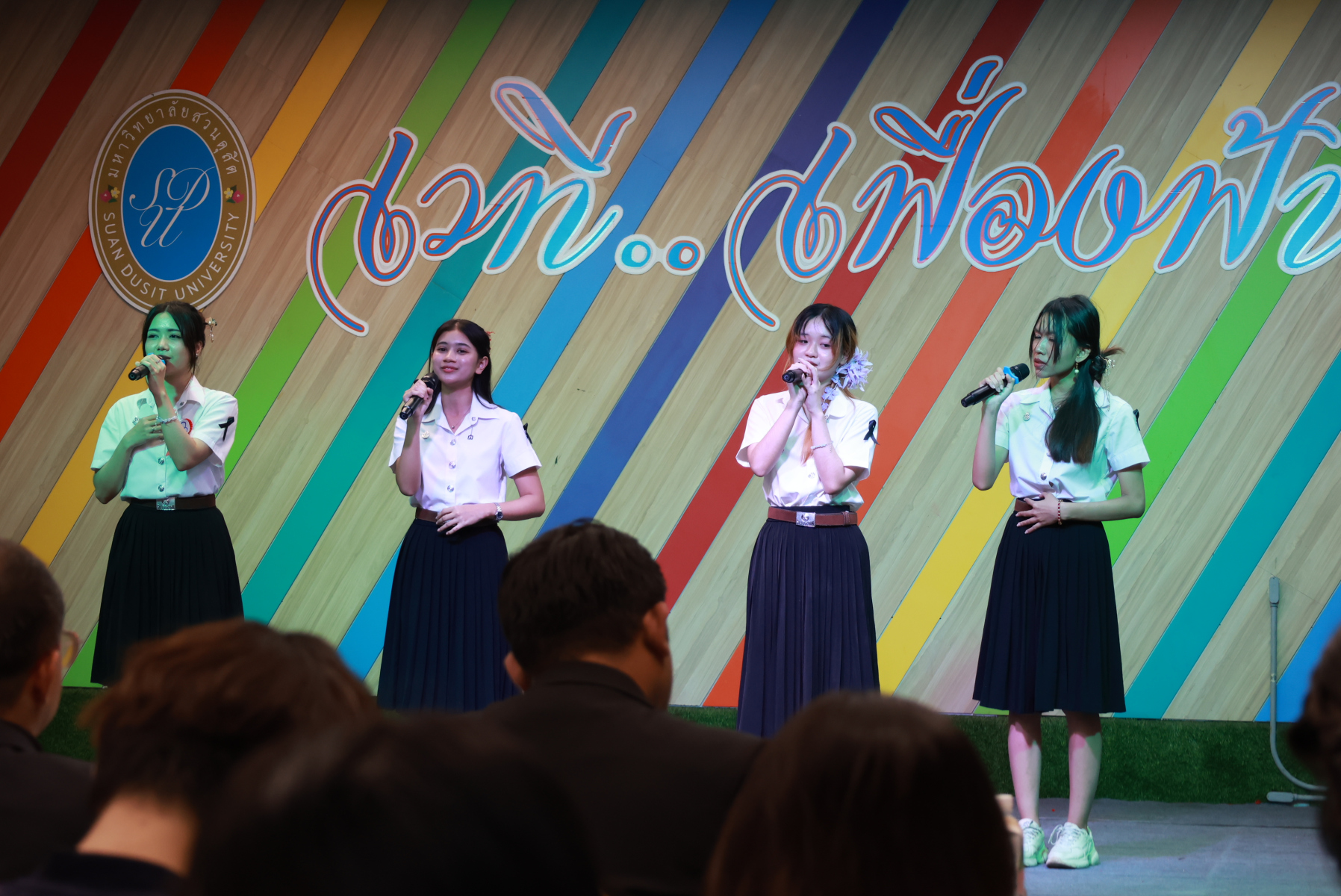 มหาวิทยาลัยสวนดุสิต โดยสถาบันขงจื่อมหาวิทยาลัยสวนดุสิต สุพรรณบุรี ร่วมกับหลักสูตรบริหารธุรกิจบัณฑิต สาขาธุรกิจระหว่างประเทศ ธุรกิจจีน–อาเซียน จัดโครงการประกวดศิลปะสะท้อนวัฒนธรรมไทย–จีน ครั้งที่ 5 ภายใต้หัวข้อ “ปีทองแห่งมิตรภาพไทย–จีน : การแสดงและศิลปะวัฒนธรรมร่วมสมัย” ในการนี้ คณะผู้จัดงานได้จัดพิธีไว้อาลัยแด่สมเด็จพระนางเจ้าสิริกิติ์ พระบรมราชินีนาถ พระบรมราชชนนีพันปีหลวง ลำดับถัดไป Mrs. Wei Yubing ผู้อำนวยการสถาบันขงจื่อมหาวิทยาลัยสวนดุสิต สุพรรณบุรี ฝ่ายจีน กล่าวรายงานวัตถุประสงค์ของการจัดงาน และผู้ช่วยศาสตราจารย์ ดร.พรชนิตย์ แก้วนุตร รองอธิการบดีฝ่ายวิชาการและกิจการต่างประเทศ พร้อมกรรมการอำนวยการสถาบันขงจื่อ กล่าวเปิดงานอย่างเป็นทางการ โดยมีการแสดงเปิดงานจากนักศึกษาหลักสูตรบริหารธุรกิจบัณฑิต สาขาธุรกิจระหว่างประเทศ ธุรกิจจีน–อาเซียน จากนั้นเป็นการประกวดศิลปะสะท้อนวัฒนธรรมไทย–จีน และการประกวดร้องเพลง เมื่อวันที่ 23 ธันวาคม 2568 ณ ลานเวทีเฟื่องฟ้า อาคาร 32 มหาวิทยาลัยสวนดุสิต