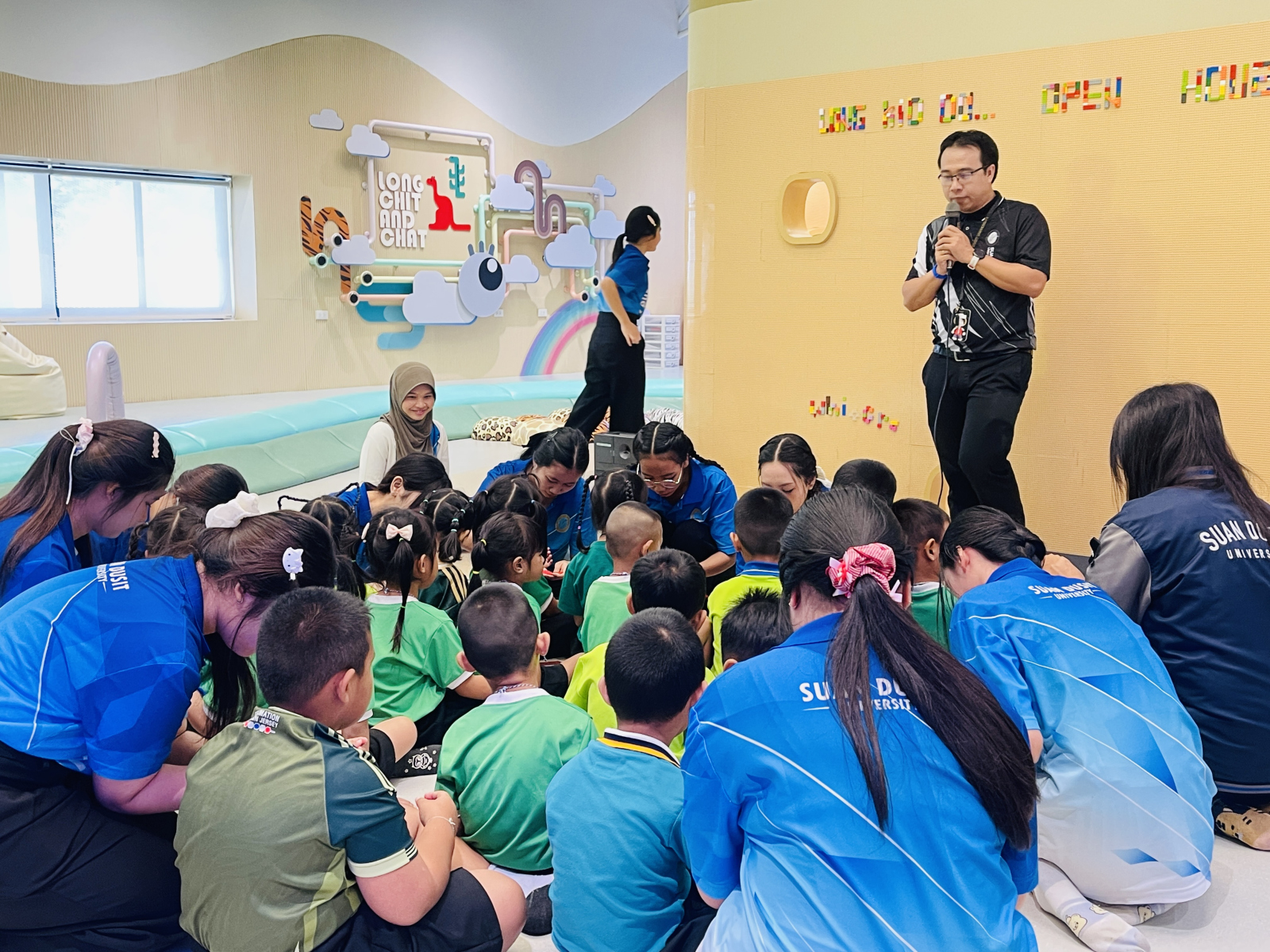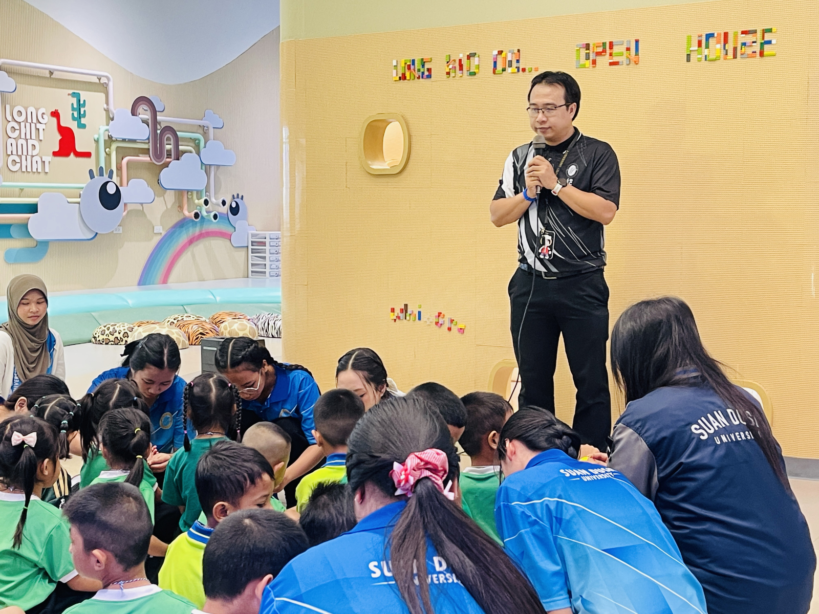 โรงเรียนวัดกุดตะเคียน จังหวัดนครนายก นำนักเรียนระดับชั้นอนุบาล 1 – 3 และคุณครู รวมจำนวน 21 คน เข้าศึกษาและทำกิจกรรม ณ แหล่งเรียนรู้เพื่อยกระดับคุณภาพชีวิตของเด็กระดับประถมศึกษา มหาวิทยาลัยสวนดุสิต ศูนย์การศึกษา นครนายก (LONG KID DO) โดยมีทีมวิทยากรจากอาจารย์ประจำหลักสูตรศึกษาศาสตรบัณฑิต สาขาวิชาการศึกษาปฐมวัย และบุคลากรมหาวิทยาลัยสวนดุสิต ศูนย์การศึกษา นครนายก เป็นผู้จัดกิจกรรมให้แก่นักเรียน โดยมีวัตถุประสงค์ เพื่อพัฒนาและส่งเสริมพหุปัญญาทั้ง 8 ด้าน ให้เด็กปฐมวัยมีพัฒนาการเรียนรู้ที่เหมาะสมตามวัย และเป็นการเปิดประสบการณ์การเรียนรู้นอกห้องเรียน ให้แก่นักเรียนระดับปฐมวัย ในวันที่ 24 ธันวาคม 2568 เวลา 09.00 – 11.00 น.