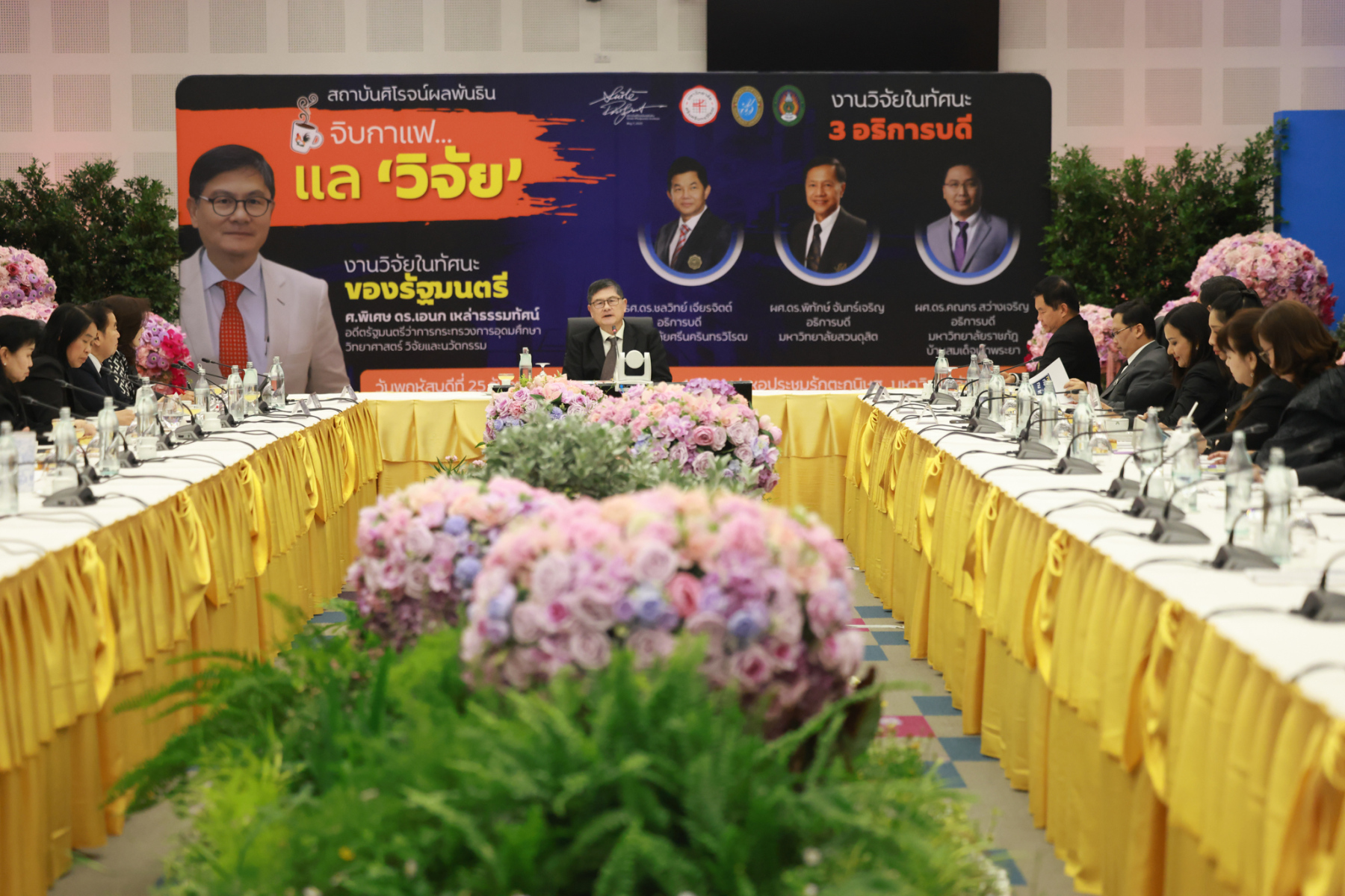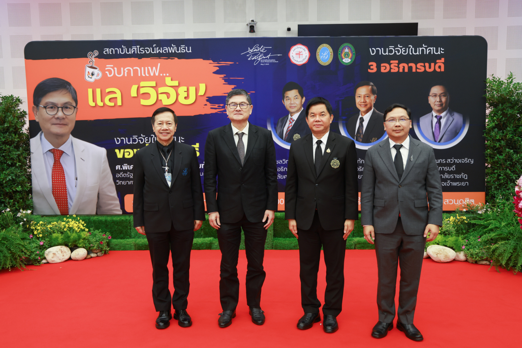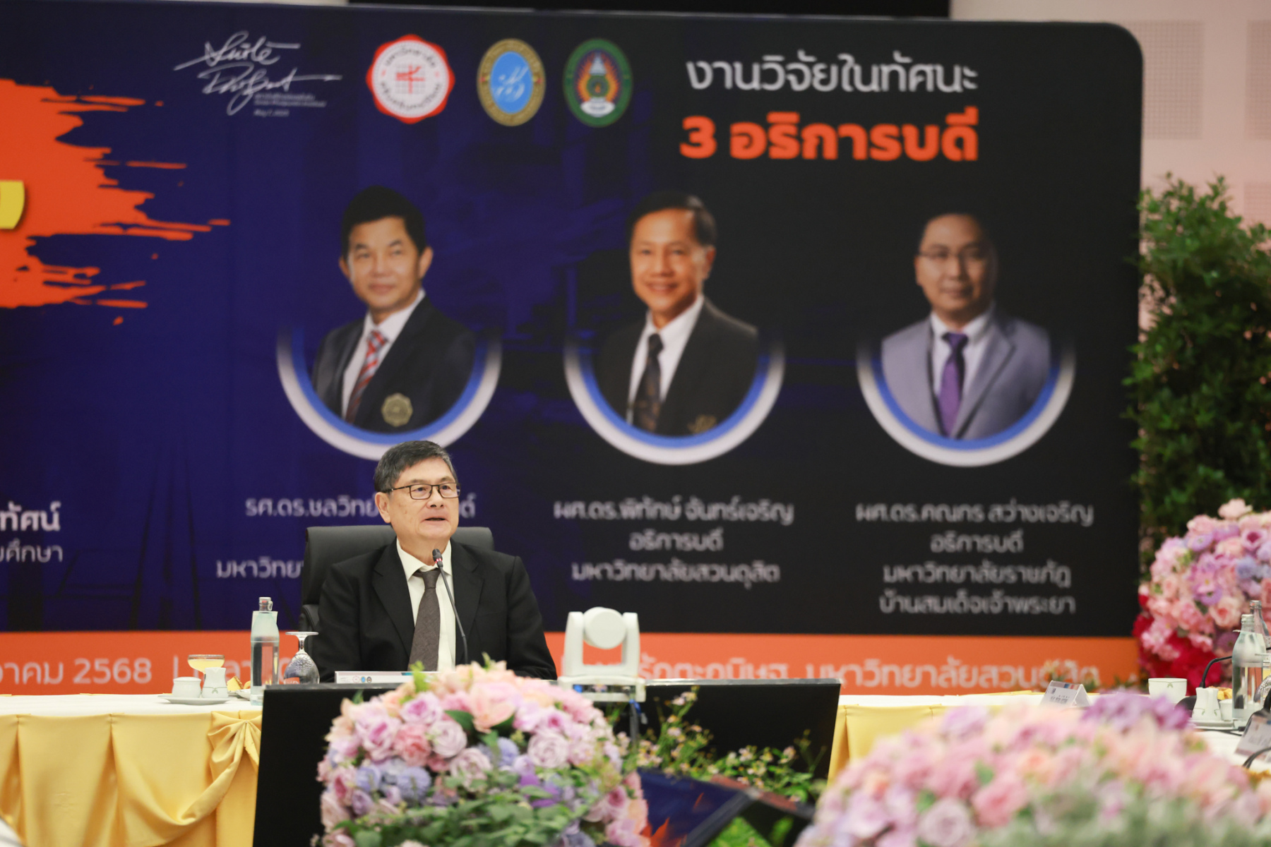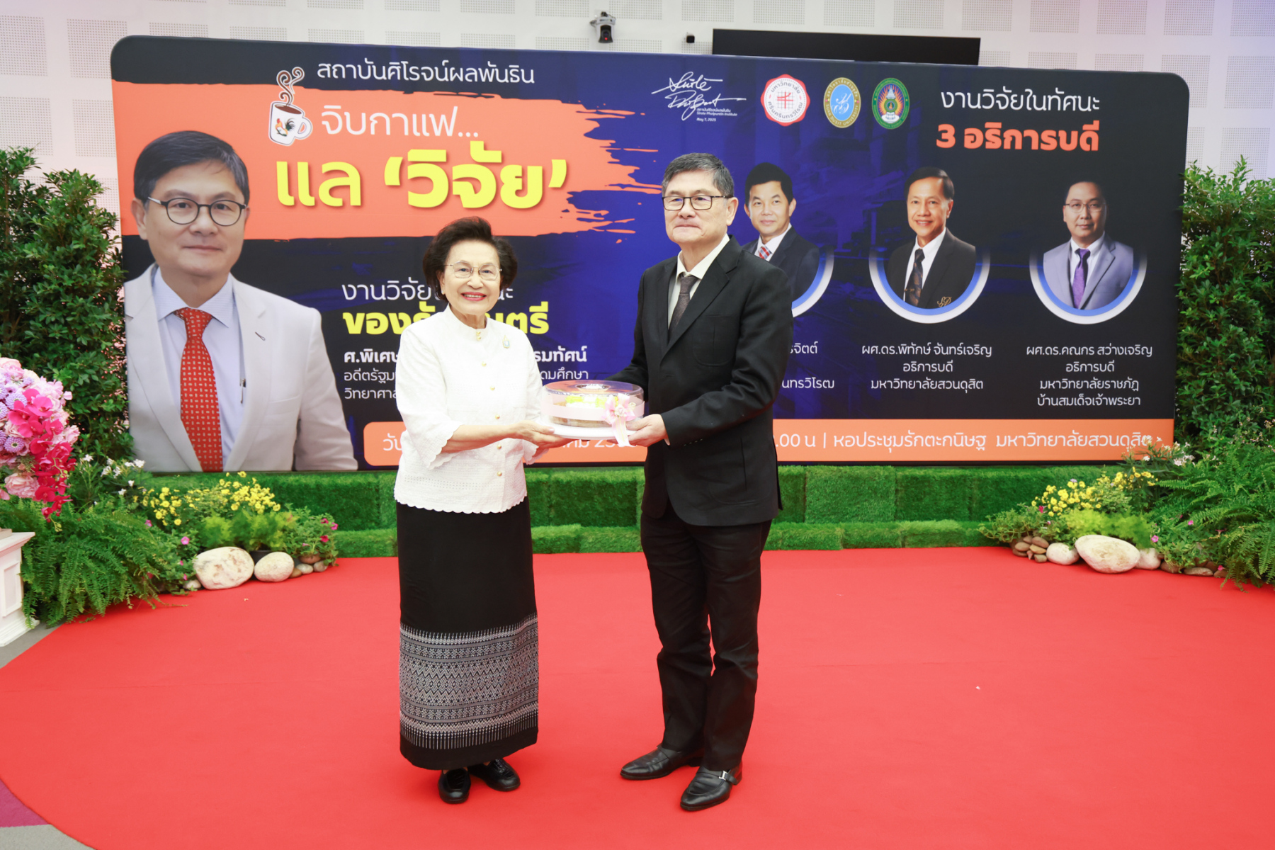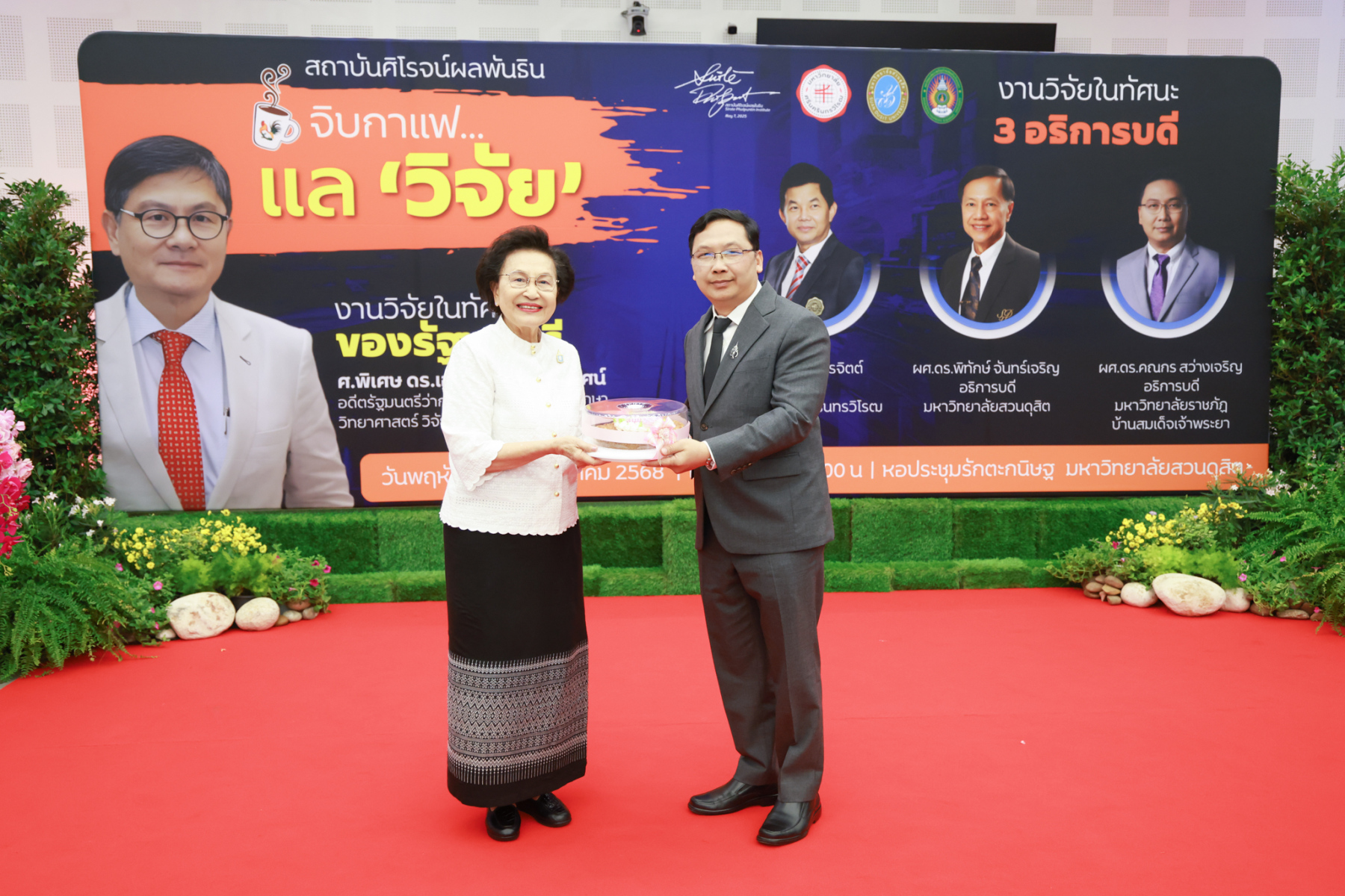 สถาบันศิโรจน์ผลพันธิน มหาวิทยาลัยสวนดุสิต จัดกิจกรรมส่งท้ายปี จิบกาแฟ… แล “วิจัย” กับ ศ.พิเศษ ดร.เอนก เหล่าธรรมทัศน์ และ 3 อธิการบดี The Researcher’s Identity “ตัวตนคนทำวิจัย” โดยได้รับเกียรติจาก ศ.พิเศษ ดร.เอนก เหล่าธรรมทัศน์ อดีตรัฐมนตรีว่าการกระทรวงการอุดมศึกษา วิทยาศาสตร์ วิจัยและนวัตกรรม บรรยายหัวข้อ : งานวิจัย หัวข้อ : ในทัศนะของรัฐมนตรี รศ.ดร.ชลวิทย์ เจียรจิตต์ อธิการบดีมหาวิทยาลัยศรีนครินทรวิโรฒ ผศ.ดร.พิทักษ์ จันทร์เจริญ อธิการบดีมหาวิทยาลัยสวนดุสิต ผศ.ดร.คณกร สว่างเจริญ อธิการบดีมหาวิทยาลัยราชภัฎบ้านสมเด็จเจ้าพระยา บรรยายในหัวข้อ งานวิจัยในทัศนะ 3 อธิการบดี โดยรายได้สมทบทุนการศึกษา เมื่อวันพฤหัสบดีที่ 25 ธันวาคม 2568 ณ หอประชุมรักตะกนิษฐ มหาวิทยาลัยสวนดุสิต