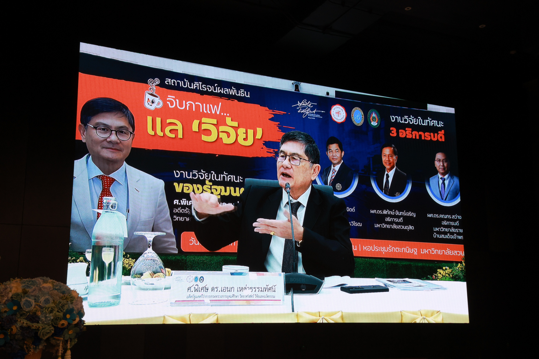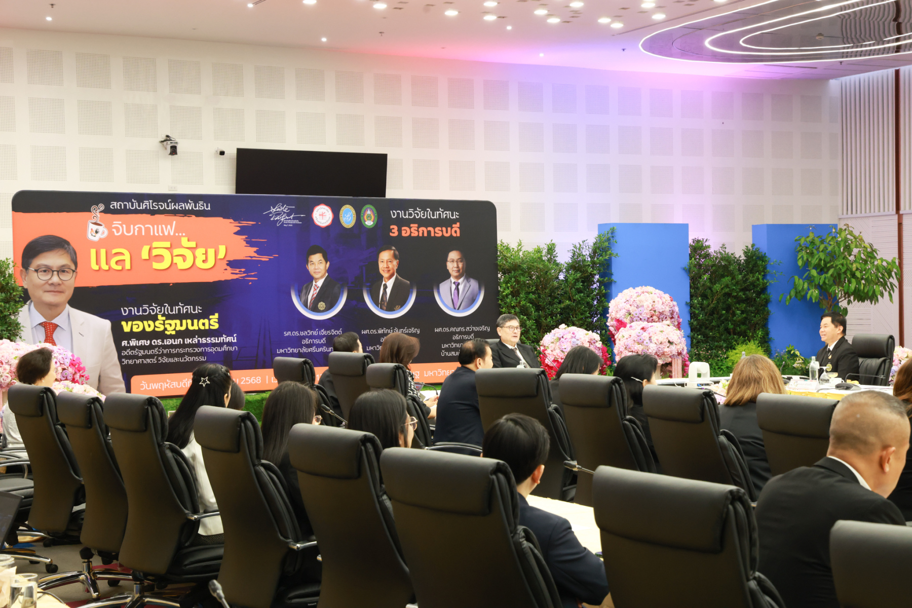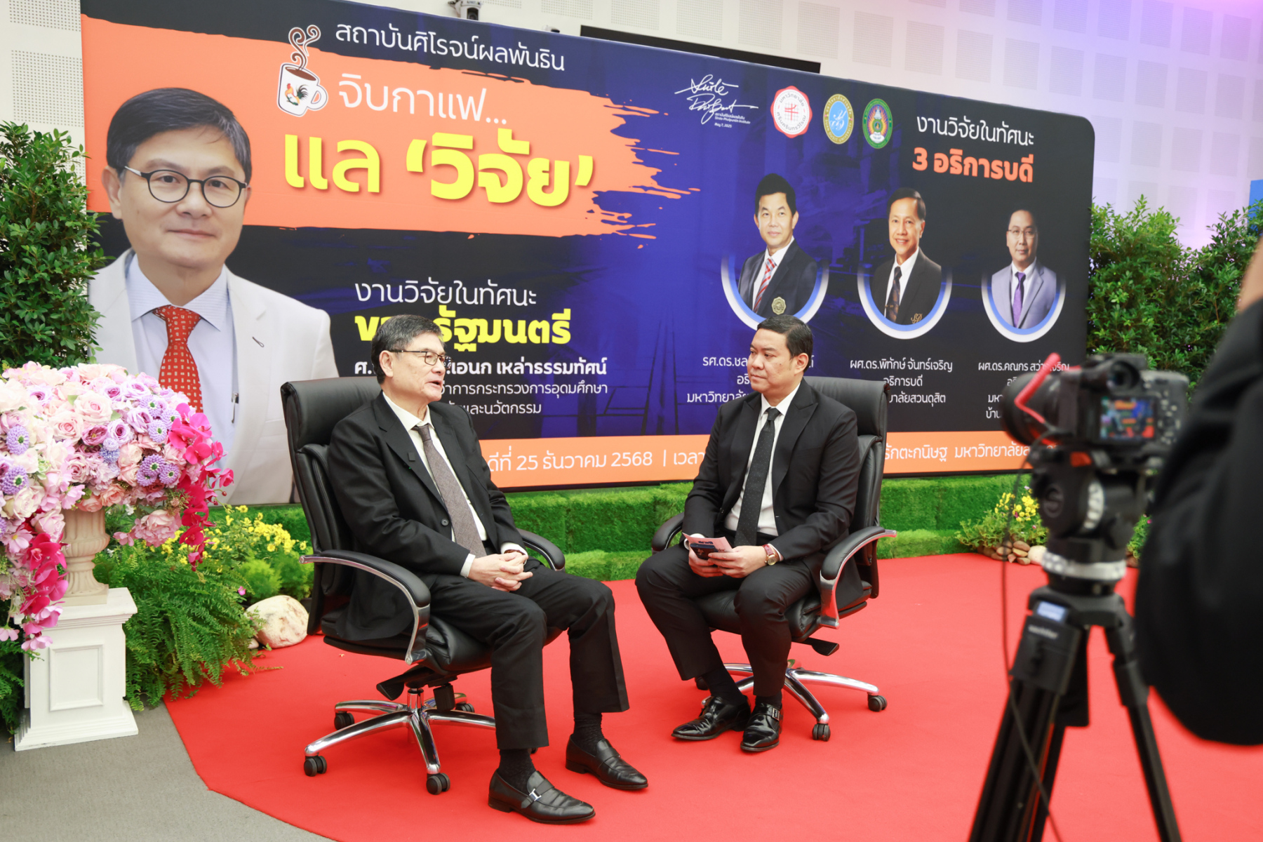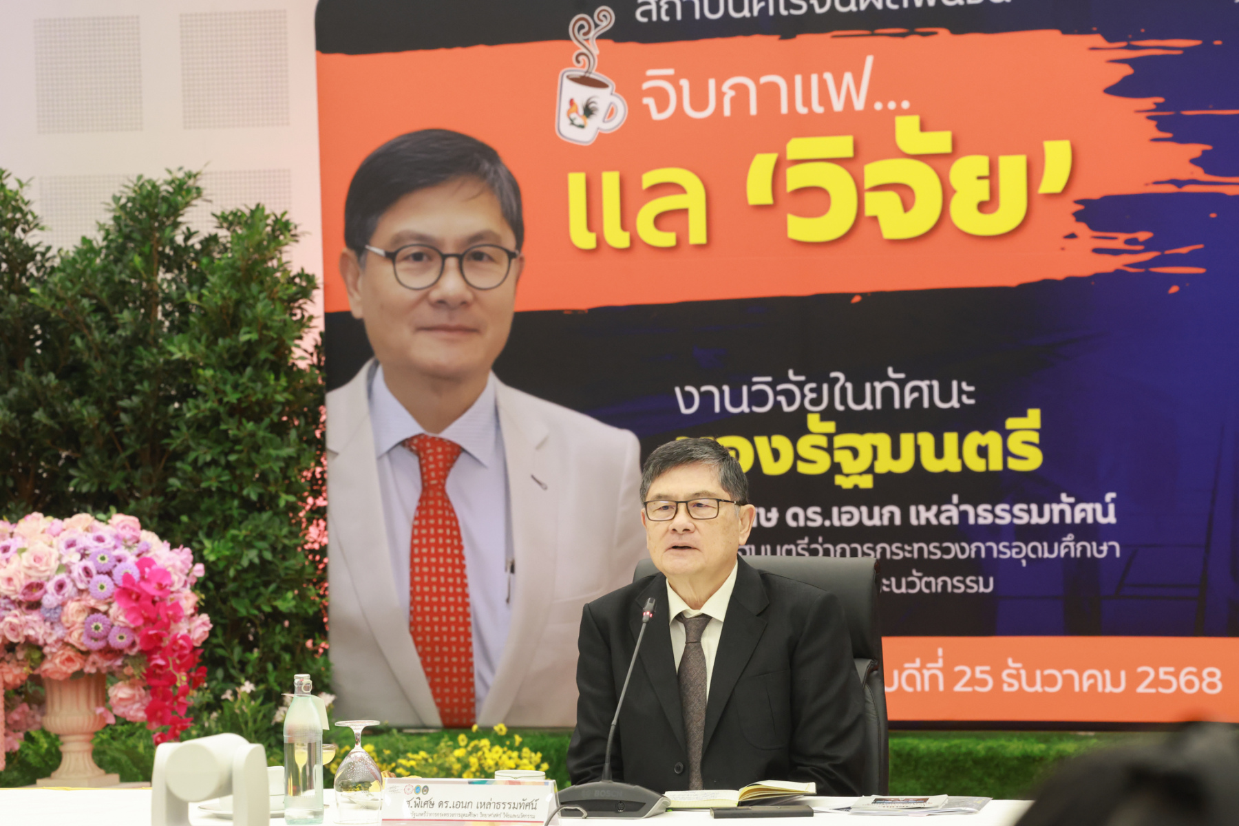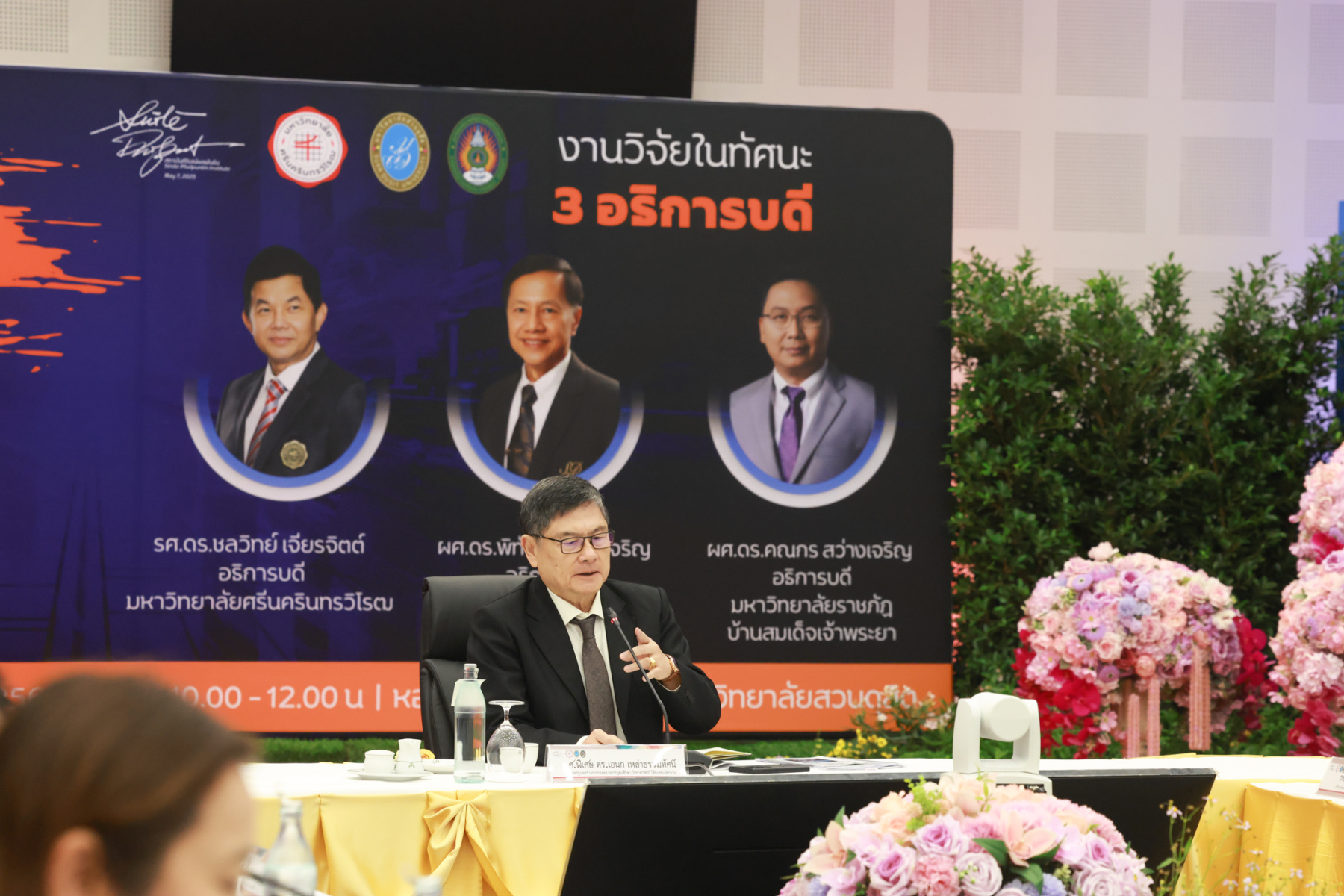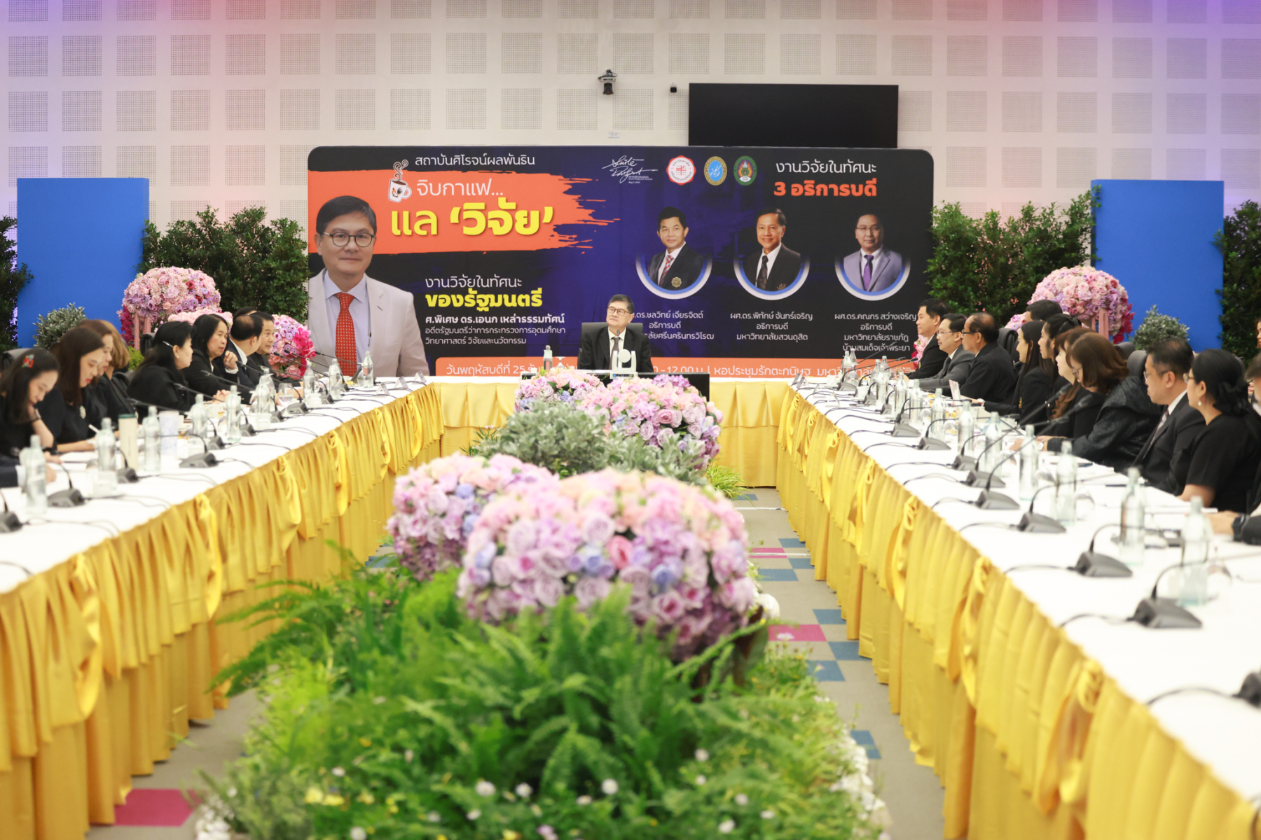 สถาบันศิโรจน์ผลพันธิน มหาวิทยาลัยสวนดุสิต จัดกิจกรรมส่งท้ายปี จิบกาแฟ… แล “วิจัย” กับ ศ.พิเศษ ดร.เอนก เหล่าธรรมทัศน์ และ 3 อธิการบดี The Researcher’s Identity “ตัวตนคนทำวิจัย” โดยได้รับเกียรติจาก ศ.พิเศษ ดร.เอนก เหล่าธรรมทัศน์ อดีตรัฐมนตรีว่าการกระทรวงการอุดมศึกษา วิทยาศาสตร์ วิจัยและนวัตกรรม บรรยายหัวข้อ : งานวิจัย หัวข้อ : ในทัศนะของรัฐมนตรี รศ.ดร.ชลวิทย์ เจียรจิตต์ อธิการบดีมหาวิทยาลัยศรีนครินทรวิโรฒ ผศ.ดร.พิทักษ์ จันทร์เจริญ อธิการบดีมหาวิทยาลัยสวนดุสิต ผศ.ดร.คณกร สว่างเจริญ อธิการบดีมหาวิทยาลัยราชภัฎบ้านสมเด็จเจ้าพระยา บรรยายในหัวข้อ งานวิจัยในทัศนะ 3 อธิการบดี โดยรายได้สมทบทุนการศึกษา เมื่อวันพฤหัสบดีที่ 25 ธันวาคม 2568 ณ หอประชุมรักตะกนิษฐ มหาวิทยาลัยสวนดุสิต