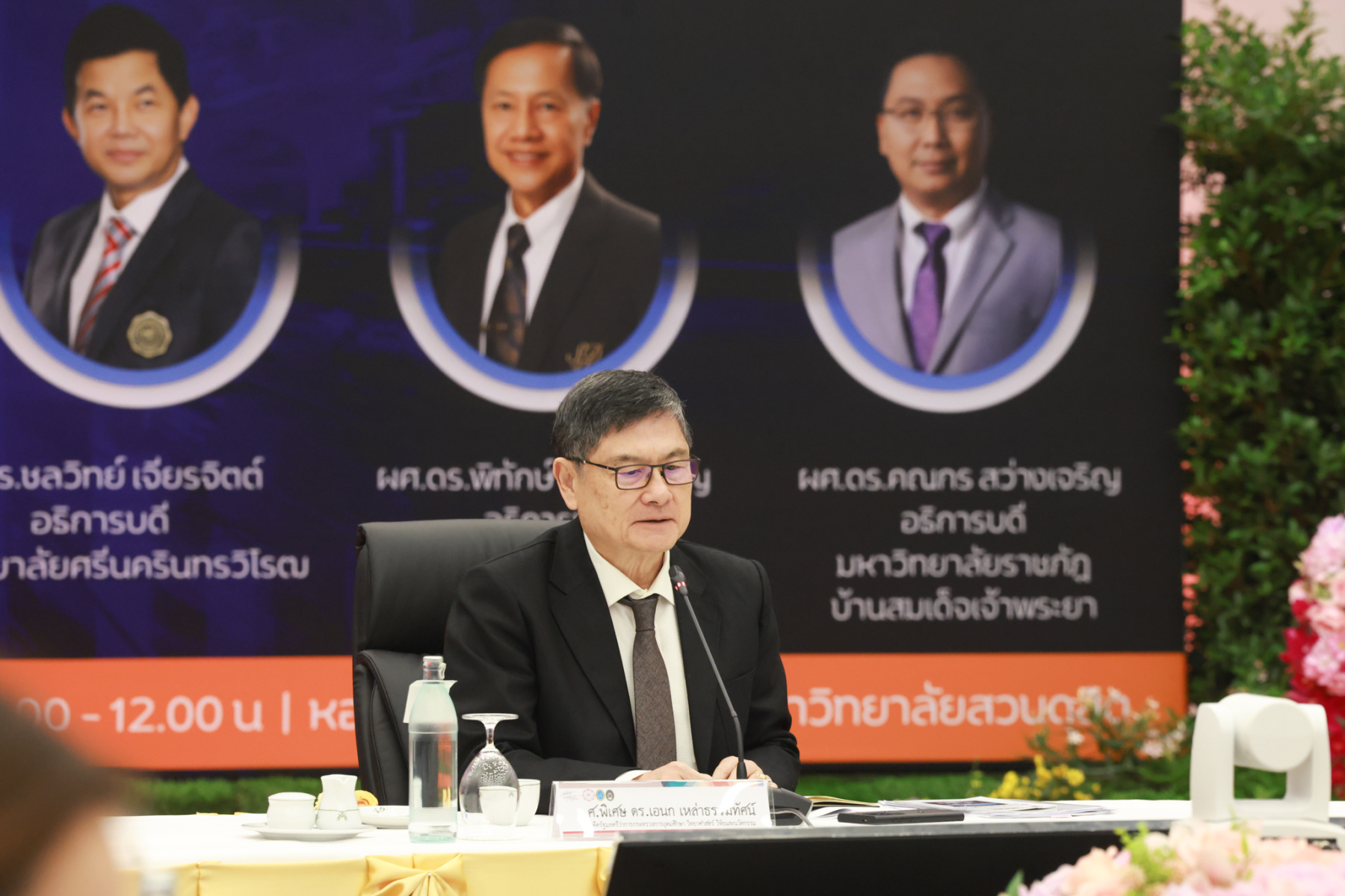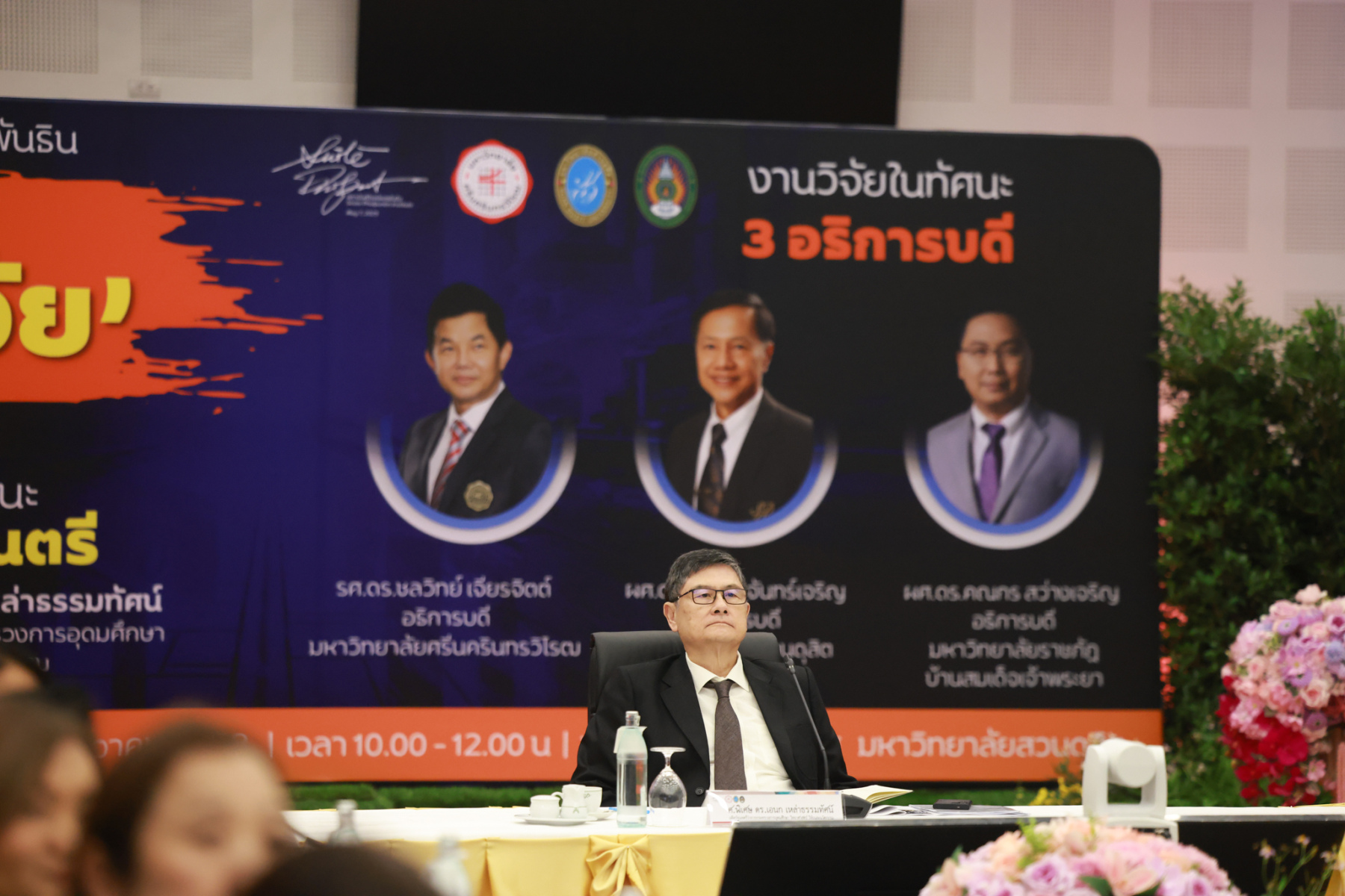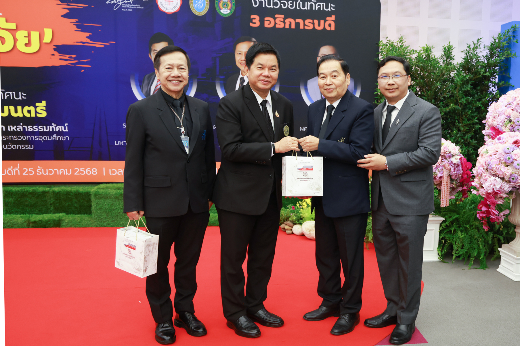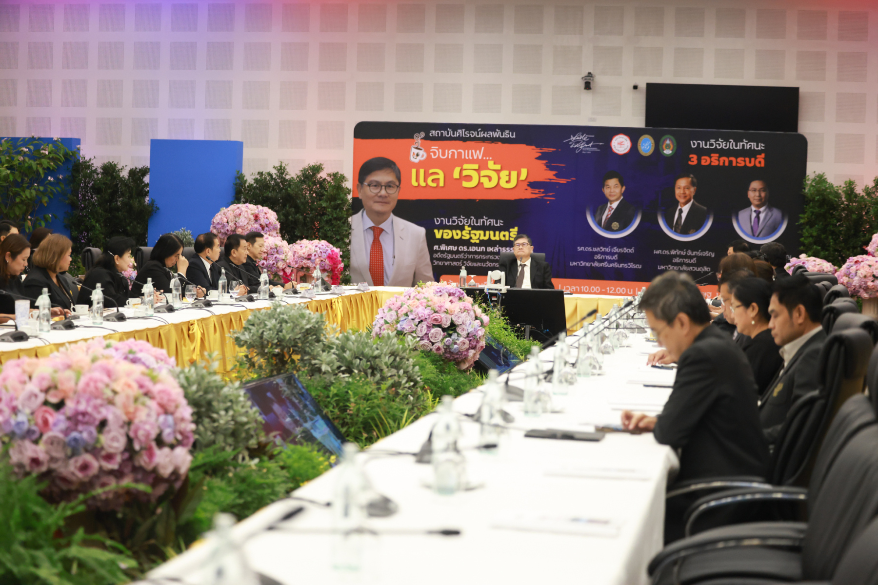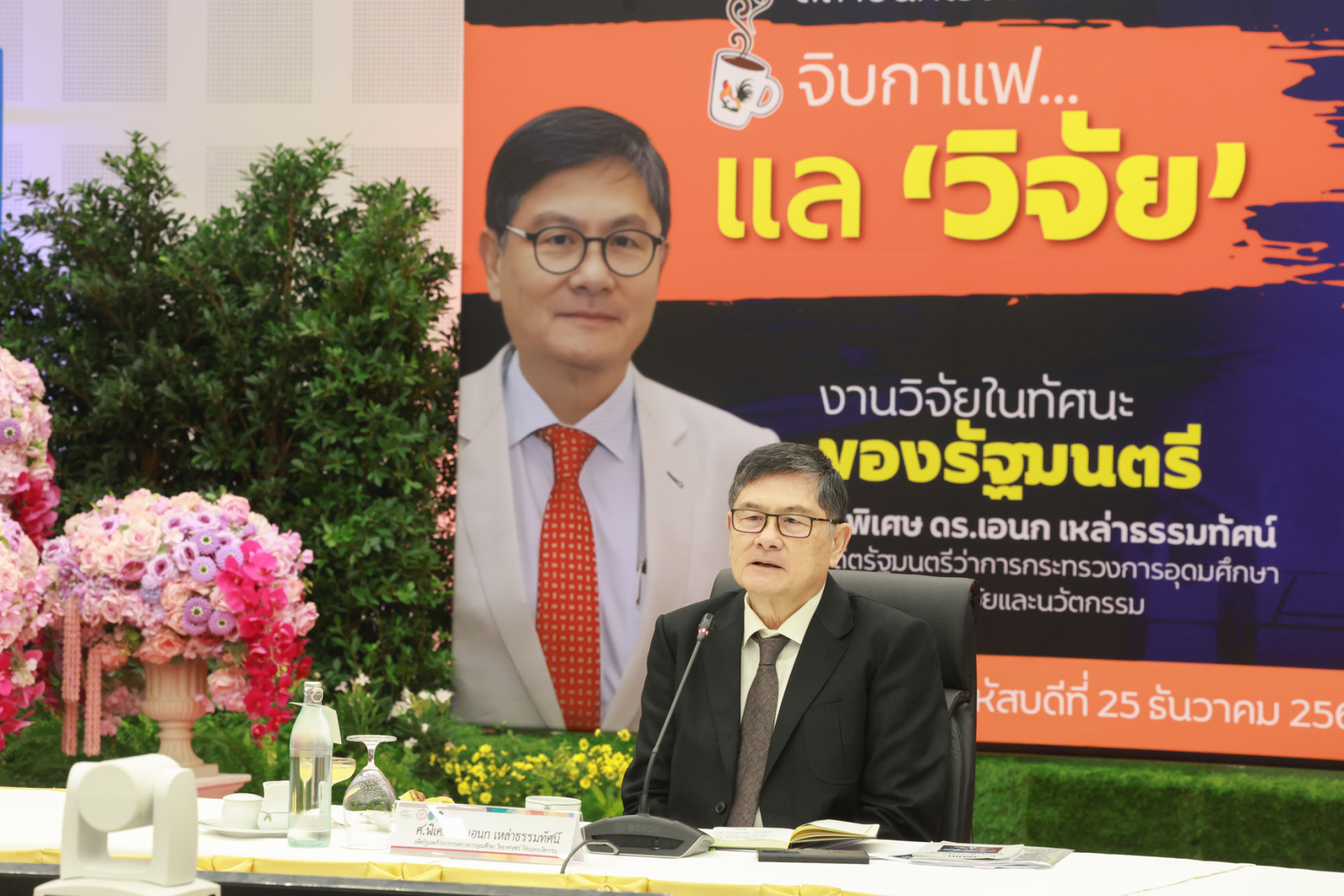 สถาบันศิโรจน์ผลพันธิน มหาวิทยาลัยสวนดุสิต จัดกิจกรรมส่งท้ายปี จิบกาแฟ… แล “วิจัย” กับ ศ.พิเศษ ดร.เอนก เหล่าธรรมทัศน์ และ 3 อธิการบดี The Researcher’s Identity “ตัวตนคนทำวิจัย” โดยได้รับเกียรติจาก ศ.พิเศษ ดร.เอนก เหล่าธรรมทัศน์ อดีตรัฐมนตรีว่าการกระทรวงการอุดมศึกษา วิทยาศาสตร์ วิจัยและนวัตกรรม บรรยายหัวข้อ : งานวิจัย หัวข้อ : ในทัศนะของรัฐมนตรี รศ.ดร.ชลวิทย์ เจียรจิตต์ อธิการบดีมหาวิทยาลัยศรีนครินทรวิโรฒ ผศ.ดร.พิทักษ์ จันทร์เจริญ อธิการบดีมหาวิทยาลัยสวนดุสิต ผศ.ดร.คณกร สว่างเจริญ อธิการบดีมหาวิทยาลัยราชภัฎบ้านสมเด็จเจ้าพระยา บรรยายในหัวข้อ งานวิจัยในทัศนะ 3 อธิการบดี โดยรายได้สมทบทุนการศึกษา เมื่อวันพฤหัสบดีที่ 25 ธันวาคม 2568 ณ หอประชุมรักตะกนิษฐ มหาวิทยาลัยสวนดุสิต