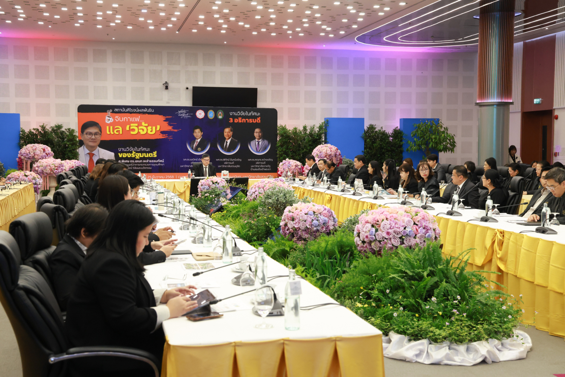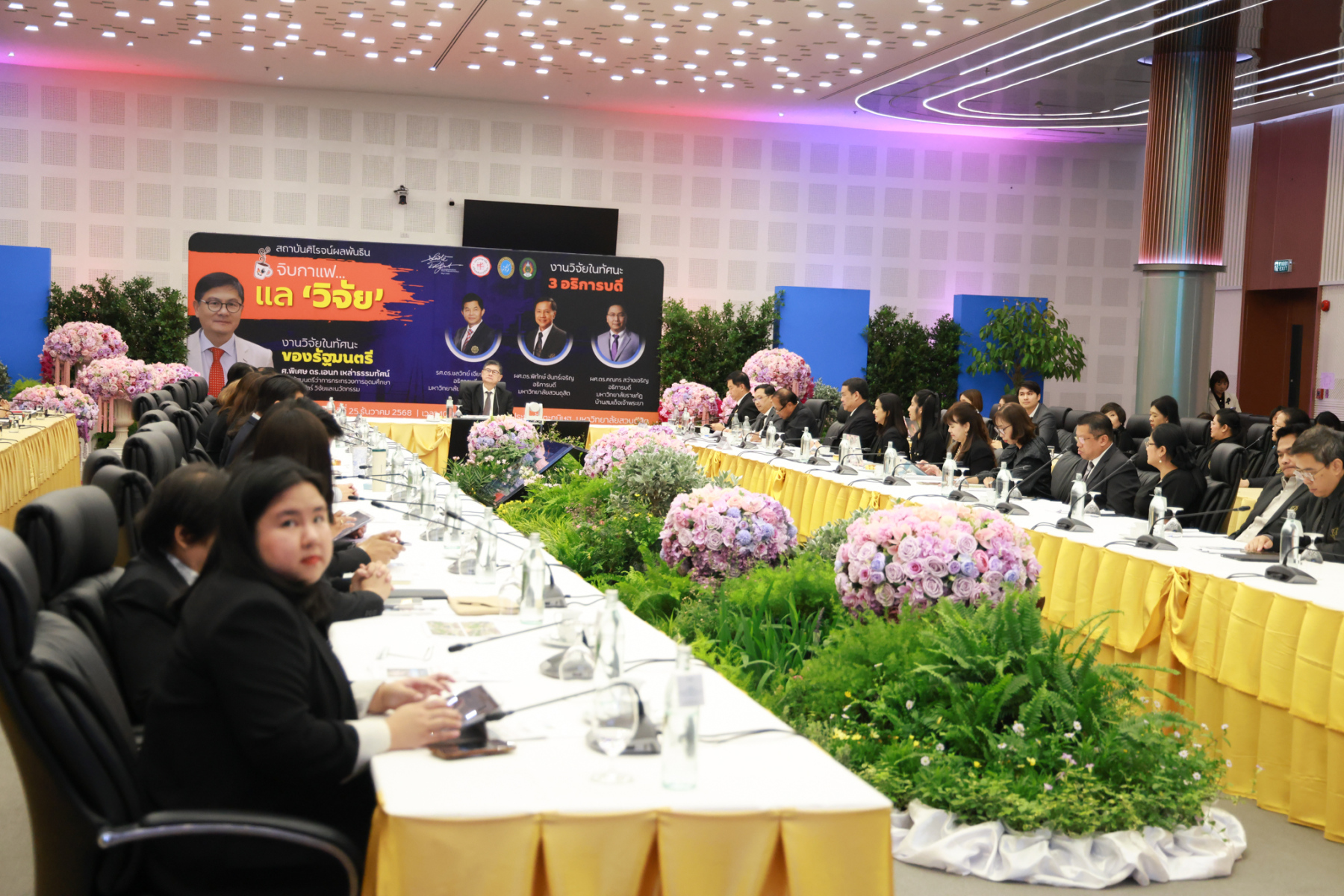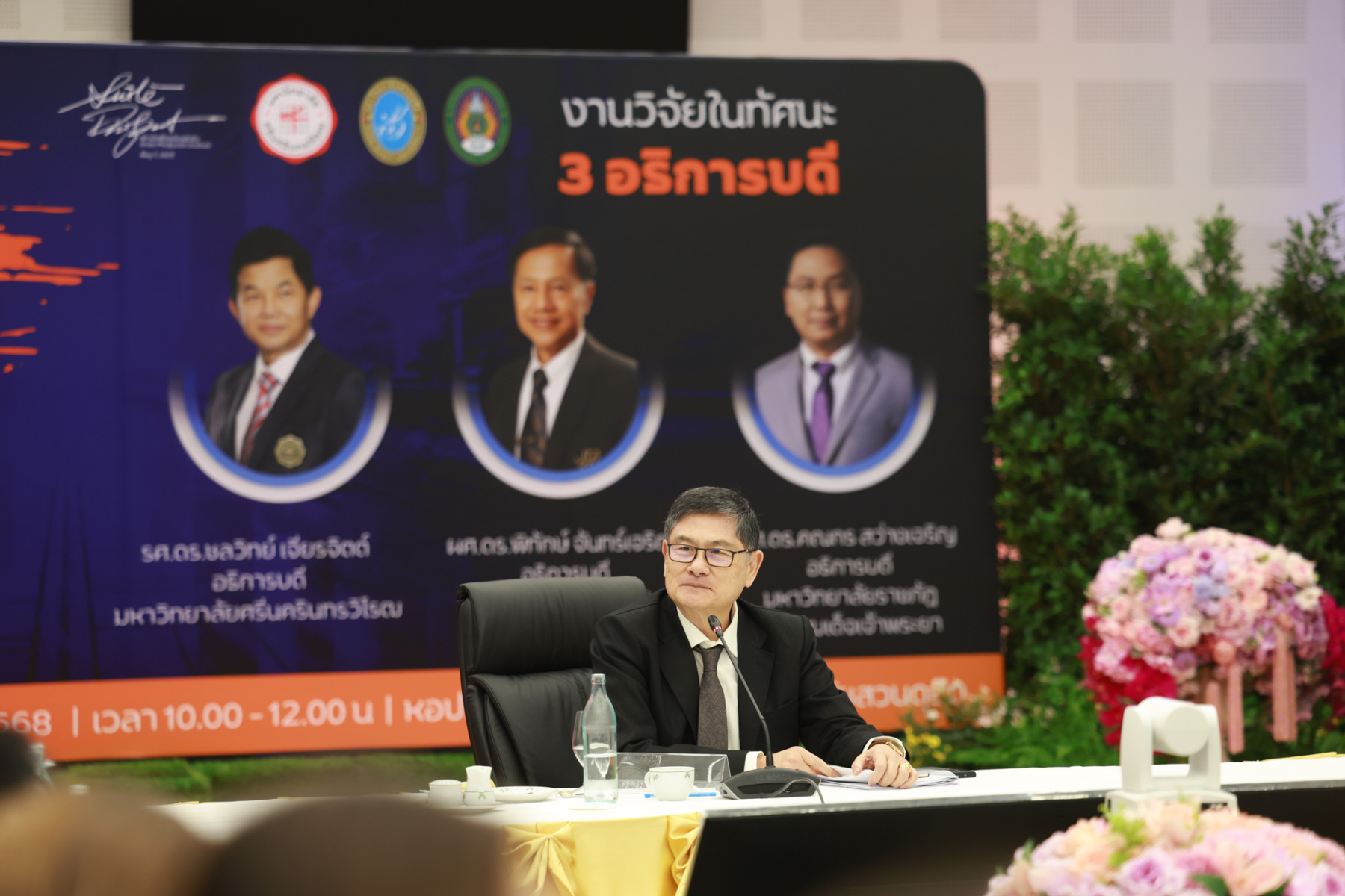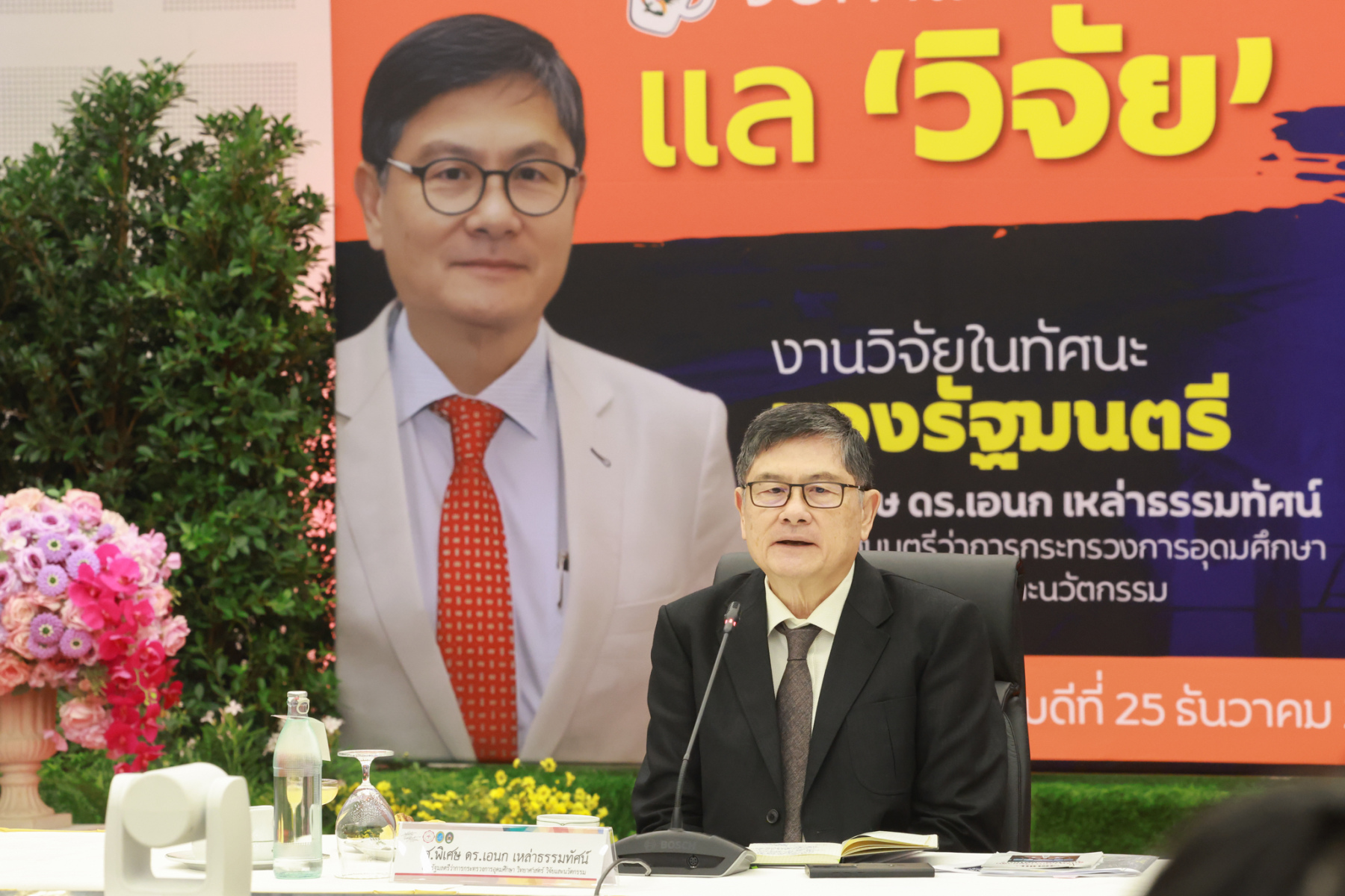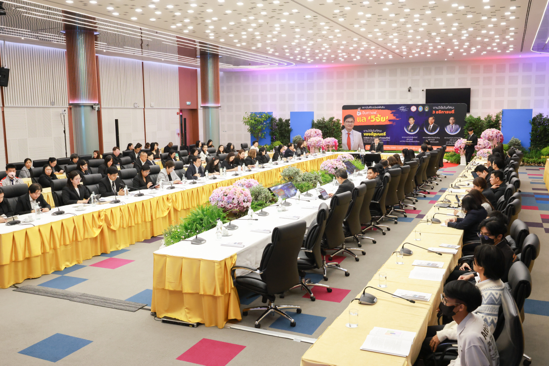 สถาบันศิโรจน์ผลพันธิน มหาวิทยาลัยสวนดุสิต จัดกิจกรรมส่งท้ายปี จิบกาแฟ… แล “วิจัย” กับ ศ.พิเศษ ดร.เอนก เหล่าธรรมทัศน์ และ 3 อธิการบดี The Researcher’s Identity “ตัวตนคนทำวิจัย” โดยได้รับเกียรติจาก ศ.พิเศษ ดร.เอนก เหล่าธรรมทัศน์ อดีตรัฐมนตรีว่าการกระทรวงการอุดมศึกษา วิทยาศาสตร์ วิจัยและนวัตกรรม บรรยายหัวข้อ : งานวิจัย หัวข้อ : ในทัศนะของรัฐมนตรี รศ.ดร.ชลวิทย์ เจียรจิตต์ อธิการบดีมหาวิทยาลัยศรีนครินทรวิโรฒ ผศ.ดร.พิทักษ์ จันทร์เจริญ อธิการบดีมหาวิทยาลัยสวนดุสิต ผศ.ดร.คณกร สว่างเจริญ อธิการบดีมหาวิทยาลัยราชภัฎบ้านสมเด็จเจ้าพระยา บรรยายในหัวข้อ งานวิจัยในทัศนะ 3 อธิการบดี โดยรายได้สมทบทุนการศึกษา เมื่อวันพฤหัสบดีที่ 25 ธันวาคม 2568 ณ หอประชุมรักตะกนิษฐ มหาวิทยาลัยสวนดุสิต