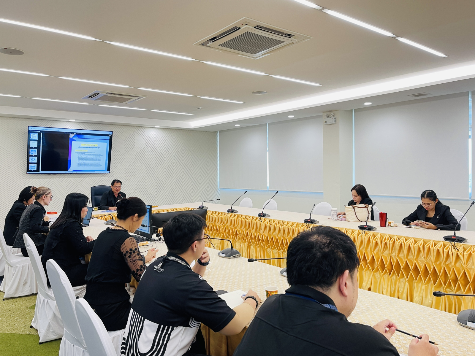 มหาวิทยาลัยสวนดุสิต ศูนย์การศึกษา นครนายก นำโดยผู้ช่วยศาสตราจารย์ ว่าที่ร้อยตรี ดร.มงคลชัย บุญแก้ว พร้อมด้วยผู้บริหารโรงเรียนสาธิตละอออุทิศ ศูนย์การศึกษา นครนายก คณะคณาจารย์หลักสูตรการศึกษาปฐมวัย และหลักสูตรการประถมศึกษา บุคลากรทุกฝ่ายร่วมประชุมบุคลากรประจำเดือนธันวาคม 2568 เพื่อติดตามผลการดำเนินงานของศูนย์ฯ ในวันที่ 26 ธันวาคม 2568 เวลา 10.00 – 12.00 น. ณ ห้องประชุมขจร มหาวิทยาลัยสวนดุสิต ศูนย์การศึกษา นครนายก