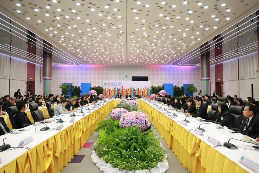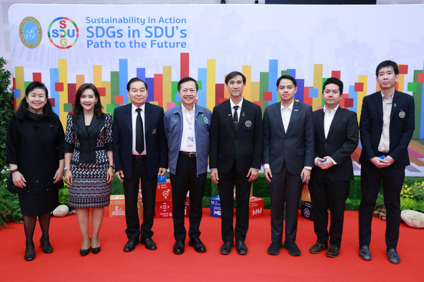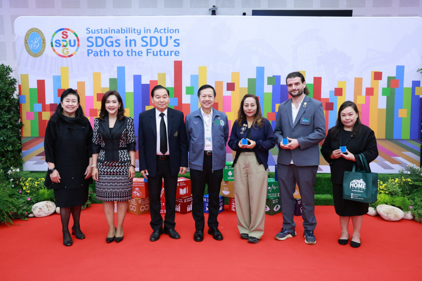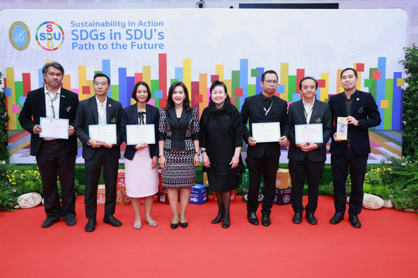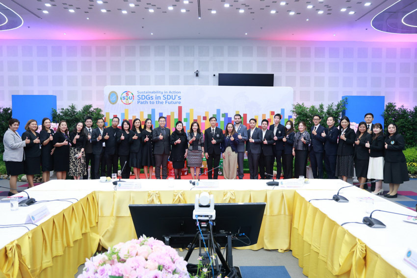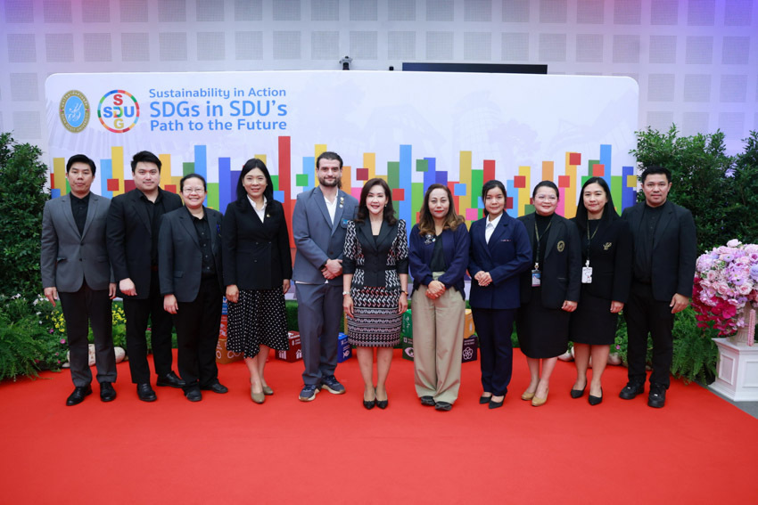 ดร.วรานี เวสสุนทรเทพ รองอธิการบดีฝ่ายวิทยาเขตสุพรรณบุรี พร้อมด้วย นางกัณณ์อลิน สุอังคะวาทิน ผู้อำนวยการสำนักงานวิทยาเขตสุพรรณบุรี และบุคลากร ร่วมงานเสวนาความยั่งยืนครั้งที่ 5 ภายใต้แนวคิด “Sustainability in Action: SDGs in SDU’s Path to the Future” ในหัวข้อ “SDGs Together : เผยเคล็ดลับ SDGs…ก้าวไปด้วยกัน” เพื่อเป็นเวทีแลกเปลี่ยนเรียนรู้การขับเคลื่อนเป้าหมายการพัฒนาที่ยั่งยืน (SDGs) ในระดับสถาบันอุดมศึกษา โดยความร่วมมือระหว่าง สถาบันศิโรจน์ผลพันธิน และ คณะทำงานขับเคลื่อนเป้าหมายการพัฒนาที่ยั่งยืน (SDGs) ได้รับเกียรติจาก ผู้ช่วยศาสตราจารย์ ดร.พิทักษ์ จันทร์เจริญ อธิการบดีมหาวิทยาลัยสวนดุสิต เป็นประธานเปิดงานและมอบของที่ระลึกแก่ผู้แทนจากมหาวิทยาลัยเครือข่ายที่เข้าร่วมเสวนา ได้แก่ มหาวิทยาลัยศรีนครินทรวิโรฒ มหาวิทยาลัยราชภัฏบ้านสมเด็จเจ้าพระยา จากนั้นเป็นการเสวนาแลกเปลี่ยนมุมมองการทำงานจริงจากผู้เชี่ยวชาญ โดยมี รองศาสตราจารย์ ดร.สุขุม เฉลยทรัพย์ ประธานที่ปรึกษาอธิการบดี มหาวิทยาลัยสวนดุสิต เป็นผู้ดำเนินรายการ เมื่อวันพฤหัสบดีที่ 25 ธันวาคม 2568 เวลา 13.00-15.30 น. ณ อาคารรักตะกนิษฐ ชั้น 1 มหาวิทยาลัยสวนดุสิต