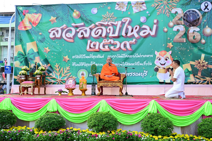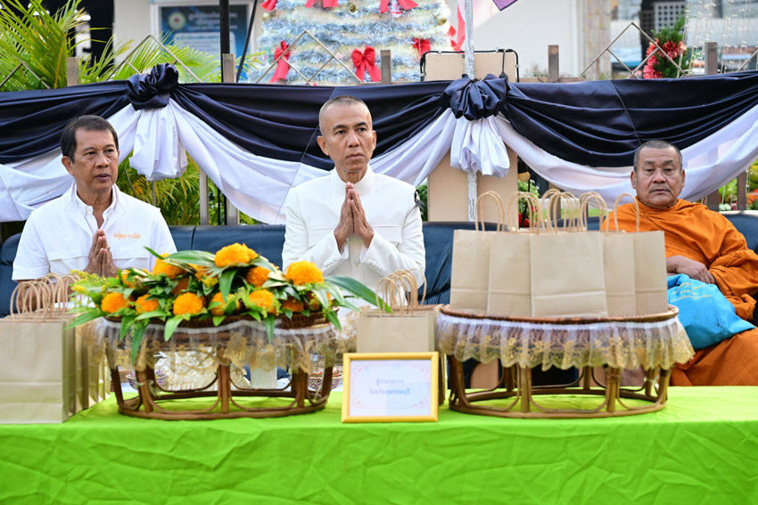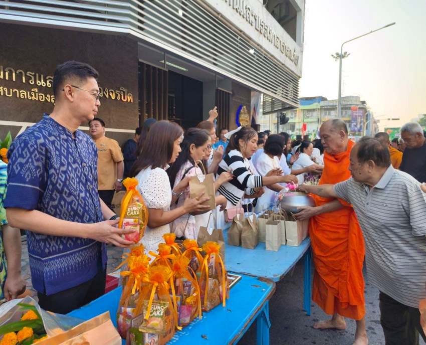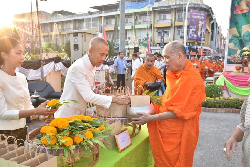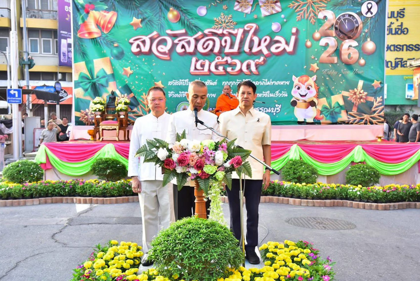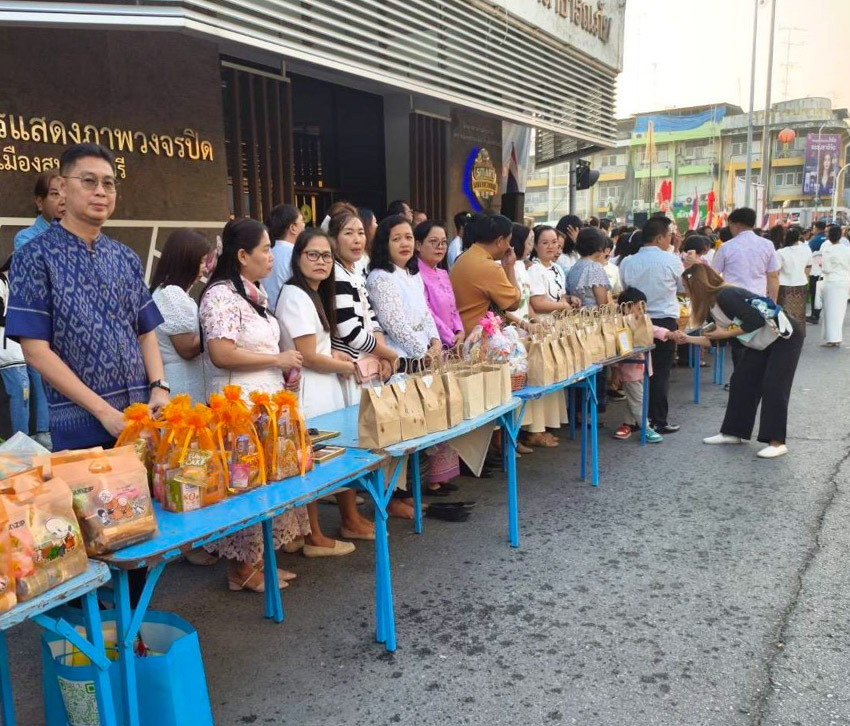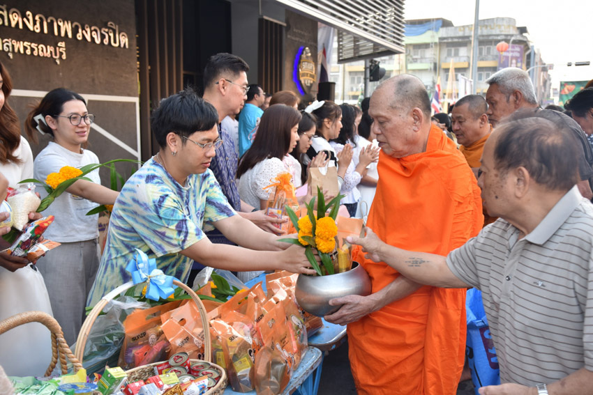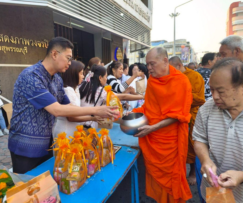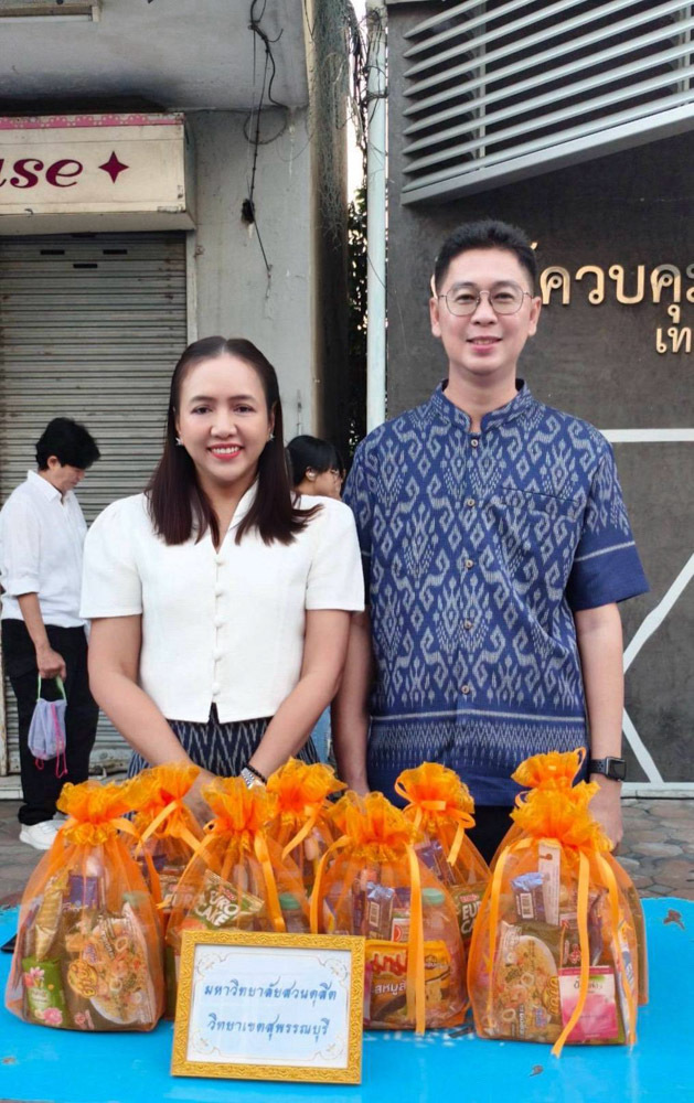 มหาวิทยาลัยสวนดุสิต วิทยาเขตสุพรรณบุรี นำโดย นายปริญญา หนูนุรัตน์ ผู้อำนวยการกองอาคารและสิ่งแวดล้อม พร้อมนางปาจรีย์ หนูนุรัตน์ เจ้าหน้าที่บริการการศึกษา กองบริการนักศึกษา เข้าร่วมงานพิธีทำบุญตักบาตรข้าวสารอาหารแห้ง เนื่องในโอกาสวันขึ้นปีใหม่ ประจำปีงบประมาณ พ.ศ.2569 จังหวัดสุพรรณบุรี โดยมีนายณัฐพงษ์ สงวนจิตร ผู้ว่าราชการจังหวัดสุพรรณบุรี เป็นประธานพิธีฯ เมื่อวันพฤหัสบดีที่ 1 มกราคม 2569 เวลา 06.30 น. ณ บริเวณถนนพระพันวษา หน้าสำนักงานเทศบาลเมืองสุพรรณบุรี อำเภอเมืองสุพรรณบุรี จังหวัดสุพรรณบุรี