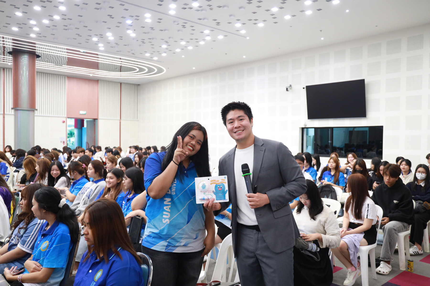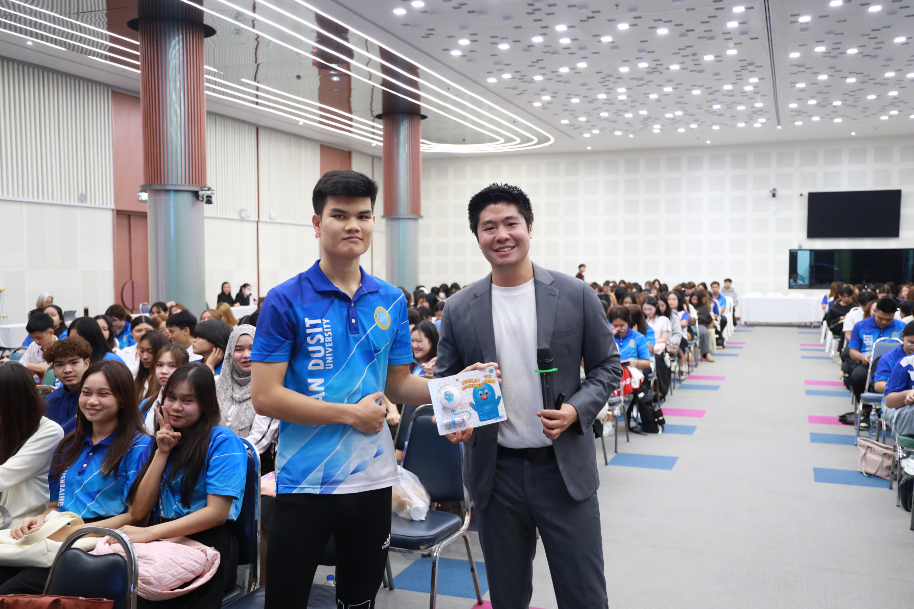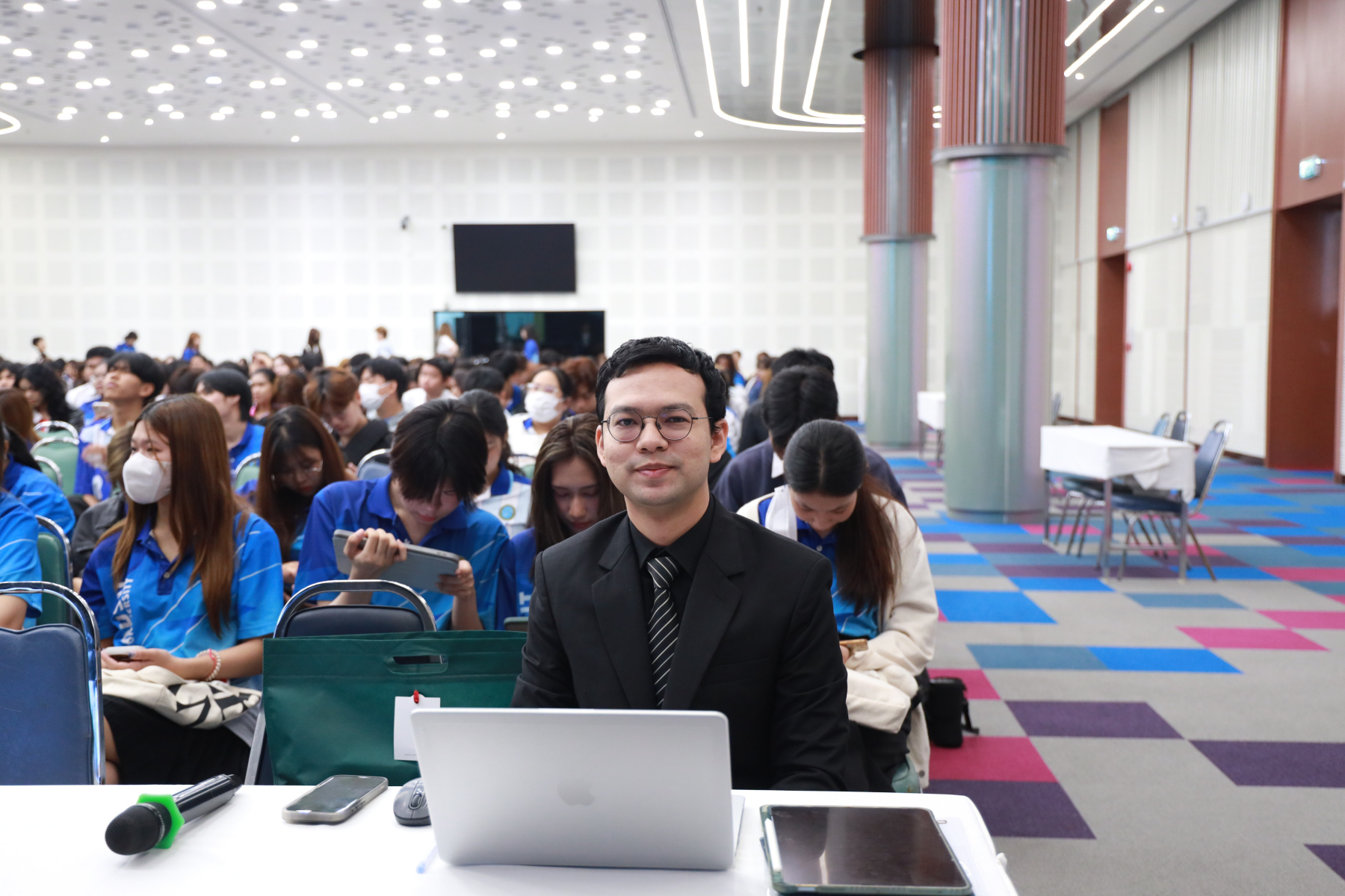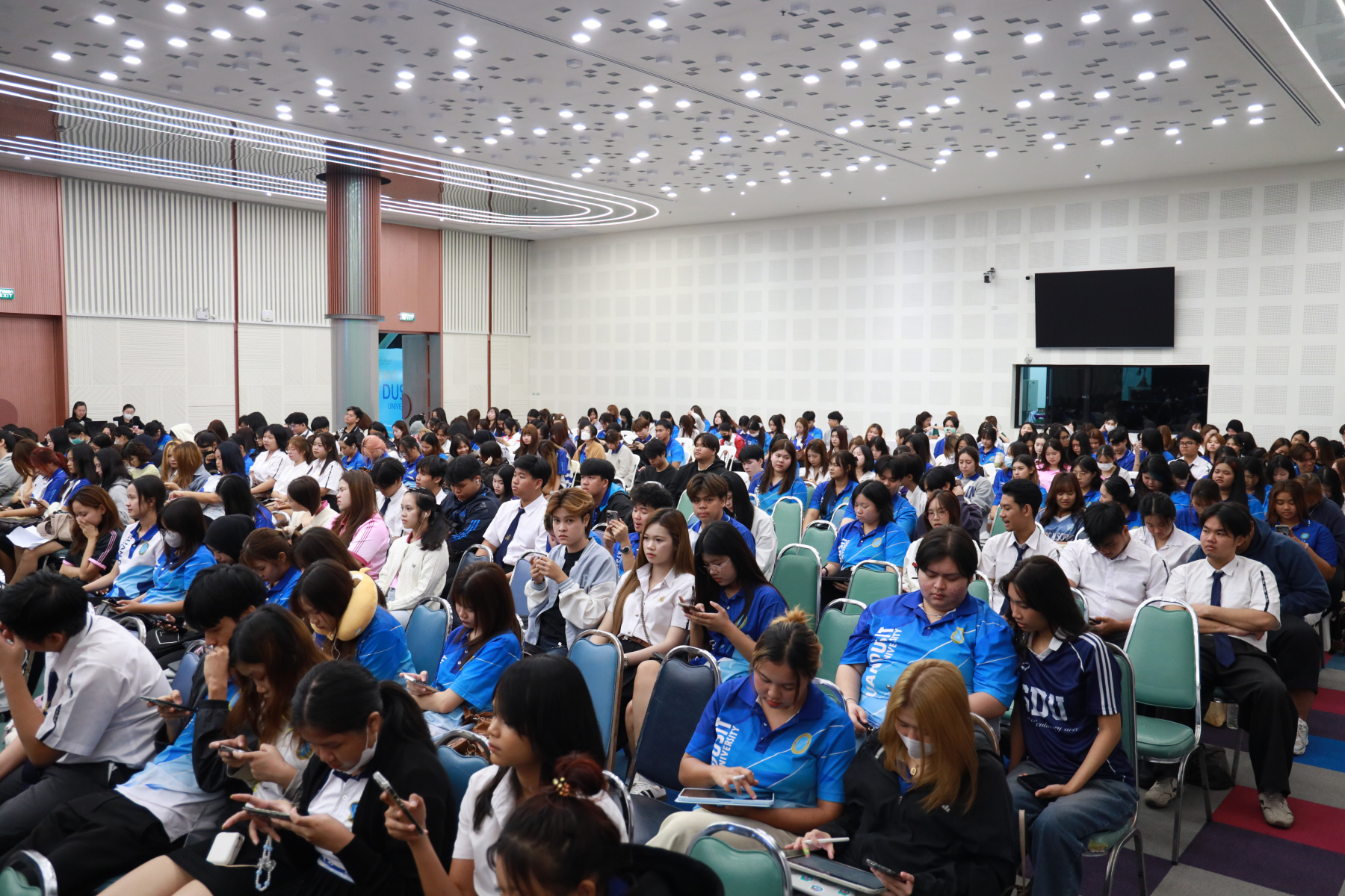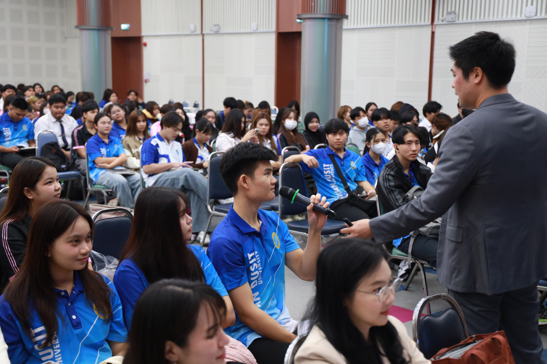 หลักสูตรศิลปศาสตรบัณฑิต สาขาวิชาภาษาและการสื่อสาร จัดโครงการ “พลังภาษาไทย” การพัฒนานักศึกษาเพื่อส่งเสริมทักษะการสื่อสารภาษาไทย ซึ่งเป็นส่วนหนึ่งของกิจกรรมการเรียนการสอนรายวิชาทักษะการสื่อสารภาษาไทย โดยได้รับเกียรติจาก ดร.ณัฐพงศ์ ลาภบุญทรัพย์ เป็นวิทยากรบรรยายในหัวข้อ “คนสร้างเรื่อง เรื่องสร้างคน” วันที่ 5 มกราคม 2569 ออนไซต์ ณ หอประชุมรักตะกนิษฐ ชั้น 1 และระบบออนไลน์ Zoom มหาวิทยาลัยสวนดุสิต