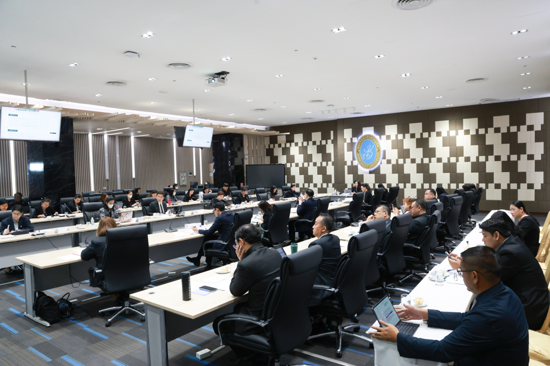 ผู้ช่วยศาสตราจารย์ ดร.พรชณิตว์ แก้วเนตร รองอธิการบดีฝ่ายวิชาการและกิจการต่างประเทศ มหาวิทยาลัยสวนดุสิต เป็นประธานการประชุมคณบดี ครั้งที่ 1(17)/2569 โดยมีวาระเรื่องเสนอเพื่อพิจารณา แผนการดำเนินงานต่อเนื่องจากการประชุม Retreat การประชุมเครือข่ายความร่วมมือทั้งในประเทศและต่างประเทศของมหาวิทยาลัยสวนดุสิต กฎหมาย ข้อบังคับ ระเบียบ ของมหาวิทยาสัยสวนดุสิต ที่เกี่ยวข้องกับการบริหารงานและกำกับดูแลของรองอธิการบดีฝ่ายวิชาการและกิจการต่างประเทศ การขับเคลื่อนหลักสูตรการศึกษาสู่การรับรองมาตรฐานหลักสูตร AUN QA ทุกหลักสูตร ฯลฯ เมื่อวันอังคารที่ 6 มกราคม 2569 ณ ห้องประชุมชั้น 5 อาคารสำนักงานมหาวิทยาลัย มหาวิทยาลัยสวนดุสิต