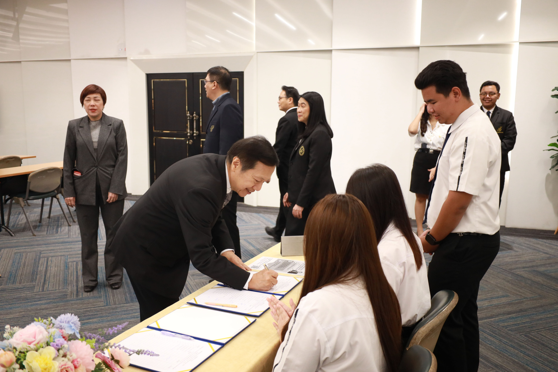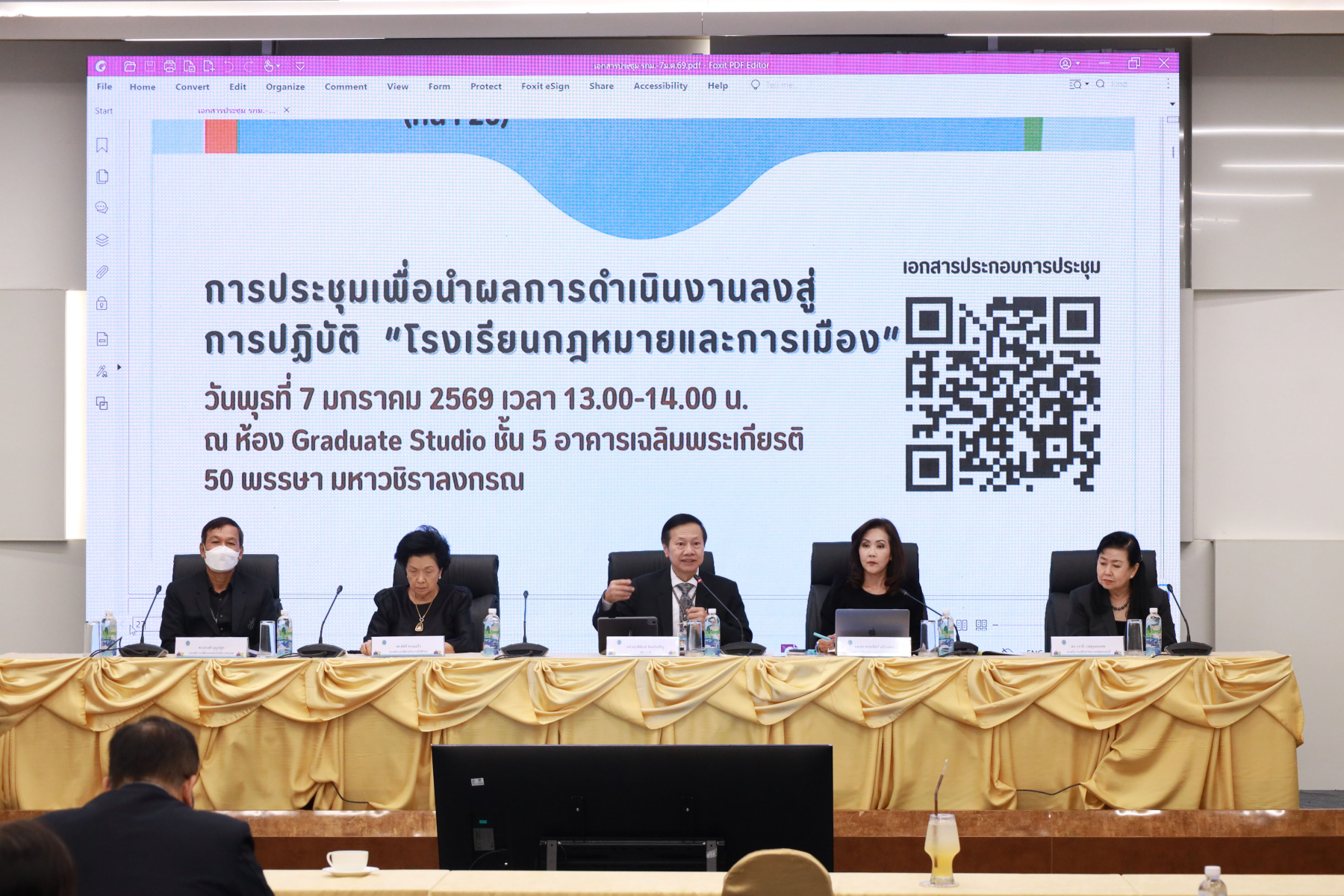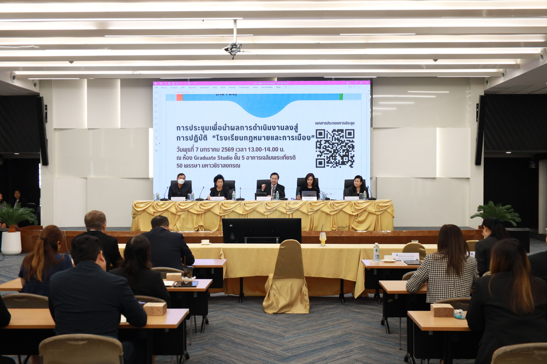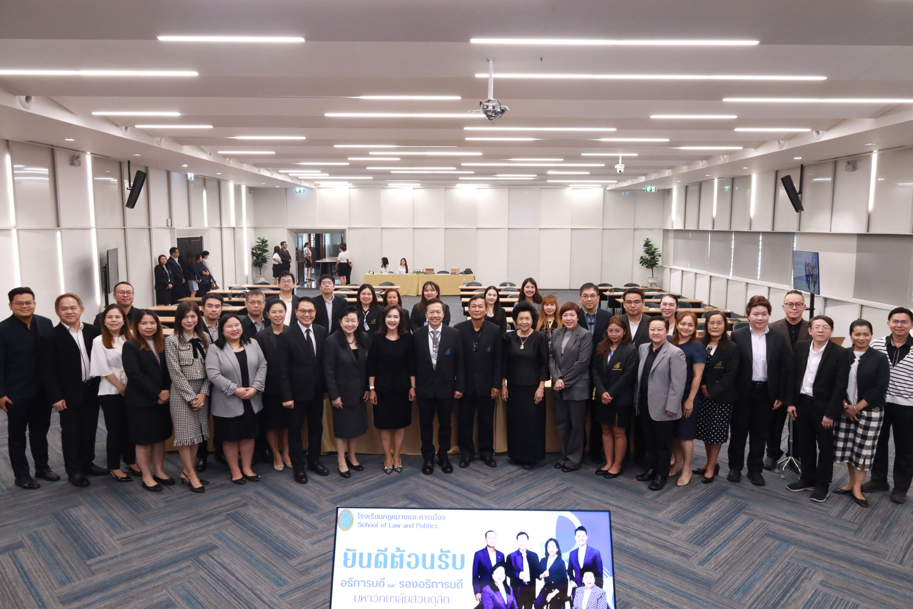 โรงเรียนกฎหมายและการเมือง มหาวิทยาลัยสวนดุสิต จัดการประชุมเพื่อรับฟังนโยบายการดำเนินงานของโรงเรียนกฎหมายและการเมืองโดยได้รับเกียรติจาก ผู้ช่วยศาสตราจารย์ ดร.พิทักษ์ จันทร์เจริญ อธิการบดีมหาวิทยาลัยสวนดุสิต เป็นประธานในการมอบนโยบาย โดยได้เน้นย้ำถึงทิศทางและบทบาทสำคัญของโรงเรียนกฎหมายและการเมือง ในฐานะที่เป็น “อัตลักษณ์ที่ 5” ของมหาวิทยาลัยสวนดุสิต ลำดับต่อมา ผู้ช่วยศาสตราจารย์ ดร.พรชณิตว์ แก้วเนตร รองอธิการบดีฝ่ายวิชาการและกิจการต่างประเทศ ได้มอบนโยบายในหัวข้อ “จากคุณภาพสู่มาตรฐานสากล” ซึ่งครอบคลุมด้านวิชาการและการสร้างความร่วมมือระหว่างประเทศ เพื่อยกระดับศักยภาพขององค์กร ทางด้าน ดร.งามประวัณ เอ้สมนึก คณบดีโรงเรียนกฎหมายและการเมือง ได้กล่าวแสดงวิสัยทัศน์ในหัวข้อ “จากความสำเร็จสู่บทต่อไปของโรงเรียนกฎหมายและการเมือง” พร้อมกันนี้ คณะผู้บริหารประกอบด้วย รองคณบดีฝ่ายวิชาการและนวัตกรรม, รองคณบดีฝ่ายกิจการนักศึกษาและบริการสังคม, ผู้ช่วยคณบดีฝ่ายวิเทศสัมพันธ์ และผู้ช่วยคณบดีฝ่ายวิจัยและประกันคุณภาพ ได้ร่วมนำเสนอแผนการดำเนินงานเพื่อขับเคลื่อนนโยบายดังกล่าวให้บรรลุวัตถุประสงค์ต่อไป ณ ห้องประชุม The Graduate Studio ชั้น 5 อาคารเฉลิมพระเกียรติ 50 พรรษา มหาวชิราลงกรณ