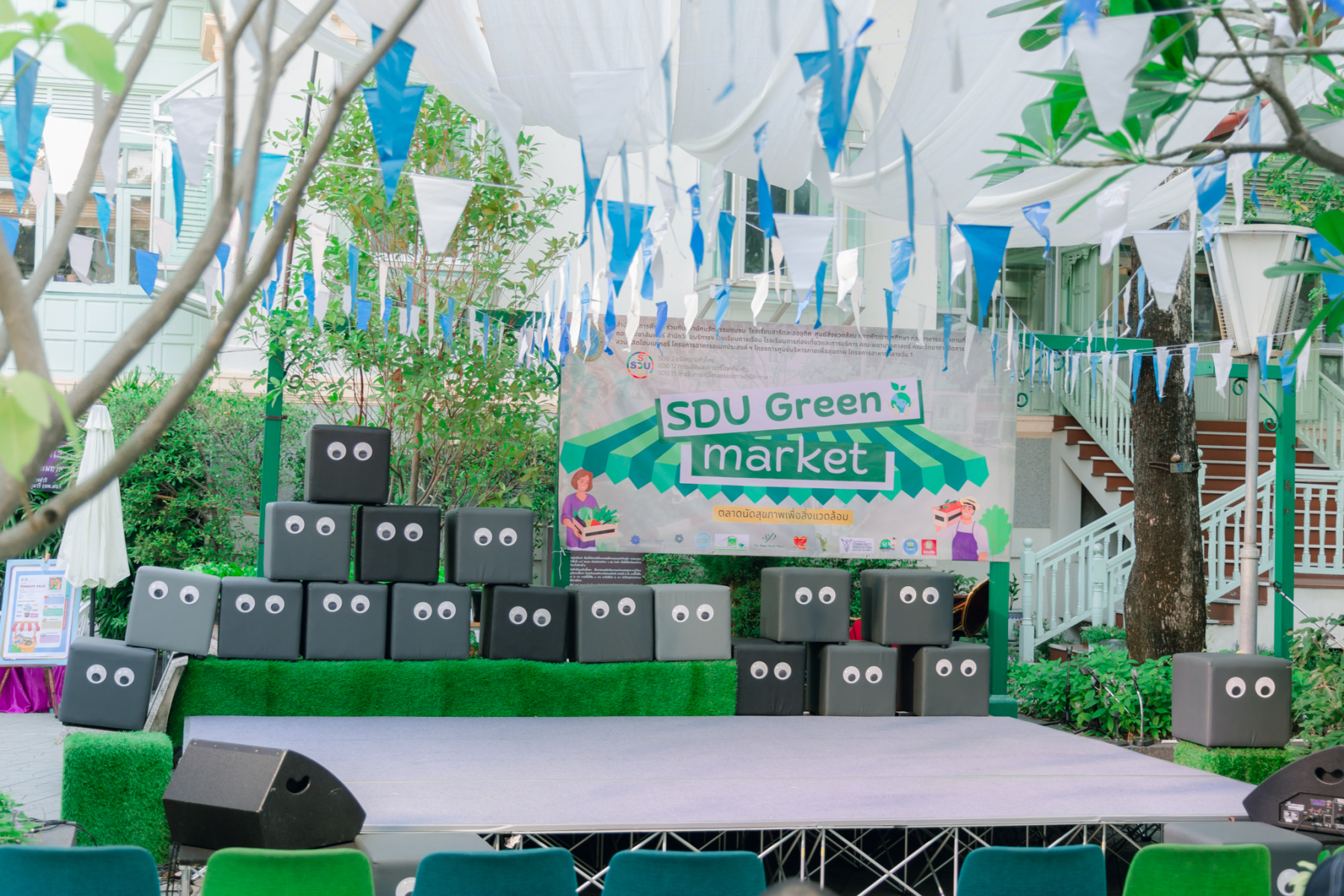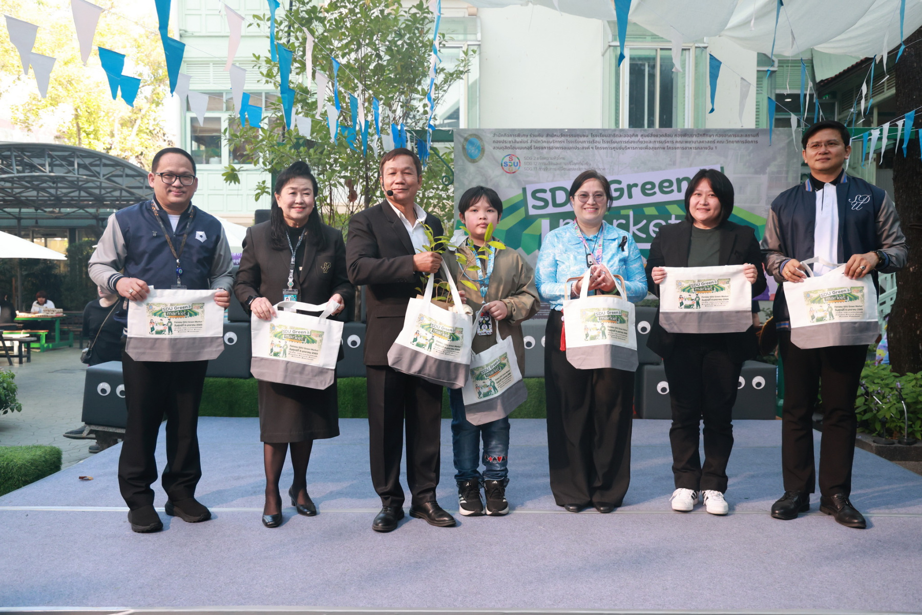 มหาวิทยาลัยสวนดุสิต โดยสำนักกิจการพิเศษ ร่วมกับสำนักนวัตกรรมชุมชน และโรงเรียนสาธิตละอออุทิศ ผนึกกำลังจัดโครงการ “SDU Green Market : ตลาดนัดสุขภาพเพื่อสิ่งแวดล้อมอย่างยั่งยืน” เมื่อวันศุกร์ที่ 9 มกราคม 2569 ณ ลานกิจกรรมสวนดุสิตโพล เพื่อสร้างต้นแบบตลาดนัดสุขภาพและส่งเสริมความร่วมมือระหว่างหน่วยงานภายในสู่เครือข่ายชุมชนอย่างเป็นรูปธรรม ภายในงานได้รับเกียรติจาก ดร.สวงค์ บุญปลูก รองอธิการบดีฝ่ายเทคโนโลยีและสารสนเทศ มหาวิทยาลัยสวนดุสิต เป็นประธานในพิธีเปิด ดร.สุทัน มุมแดง ผู้อำนวยการสำนักกิจการพิเศษ กล่าวรายงาน โดย ดร.วรานี เวสสุนทรเทพ รองอธิการบดีฝ่ายวิทยาเขตสุพรรณบุรี พร้อมด้วย ผู้อำนวยการสถาบัน สำนัก โรงเรียน คณบดี ร่วมเป็นเกียรติในพิธีเปิด โครงการ “SDU Green Market : ตลาดนัดสุขภาพเพื่อสิ่งแวดล้อมอย่างยั่งยืน” จำหน่ายสินค้าเพื่อสุขภาพและผลิตภัณฑ์ชุมชน ได้รับความสนใจจากอาจารย์ บุคลากร และนักศึกษาเข้าร่วมงาน นอกจากนี้ยังมีกิจกรรมต่าง ๆ ดังนี้การแสดงศิลปวัฒนธรรมและนวัตกรรมสร้างสรรค์ การแสดงจากนักเรียนโรงเรียนสาธิตละอออุทิศรวมกว่า 9 ชุดการแสดง อาทิ บัลเล่ต์เพลงพระราชนิพนธ์ เซิ้งส้มตำ และ Kids dance on stage รวมถึงการแสดงดนตรีจากนักศึกษา มหาวิทยาลัยสวนดุสิต เวทีเสวนาแลกเปลี่ยนเรียนรู้ การเสวนาในหัวข้อ “กินอย่างไรให้โลกไม่ร้อน” รวมถึงกิจกรรมเสวนา “เปลี่ยนขยะให้เป็นเงิน” โดยคณะวิทยาศาสตร์และเทคโนโลยี ร่วมกับสำนักงานเขตดุสิต