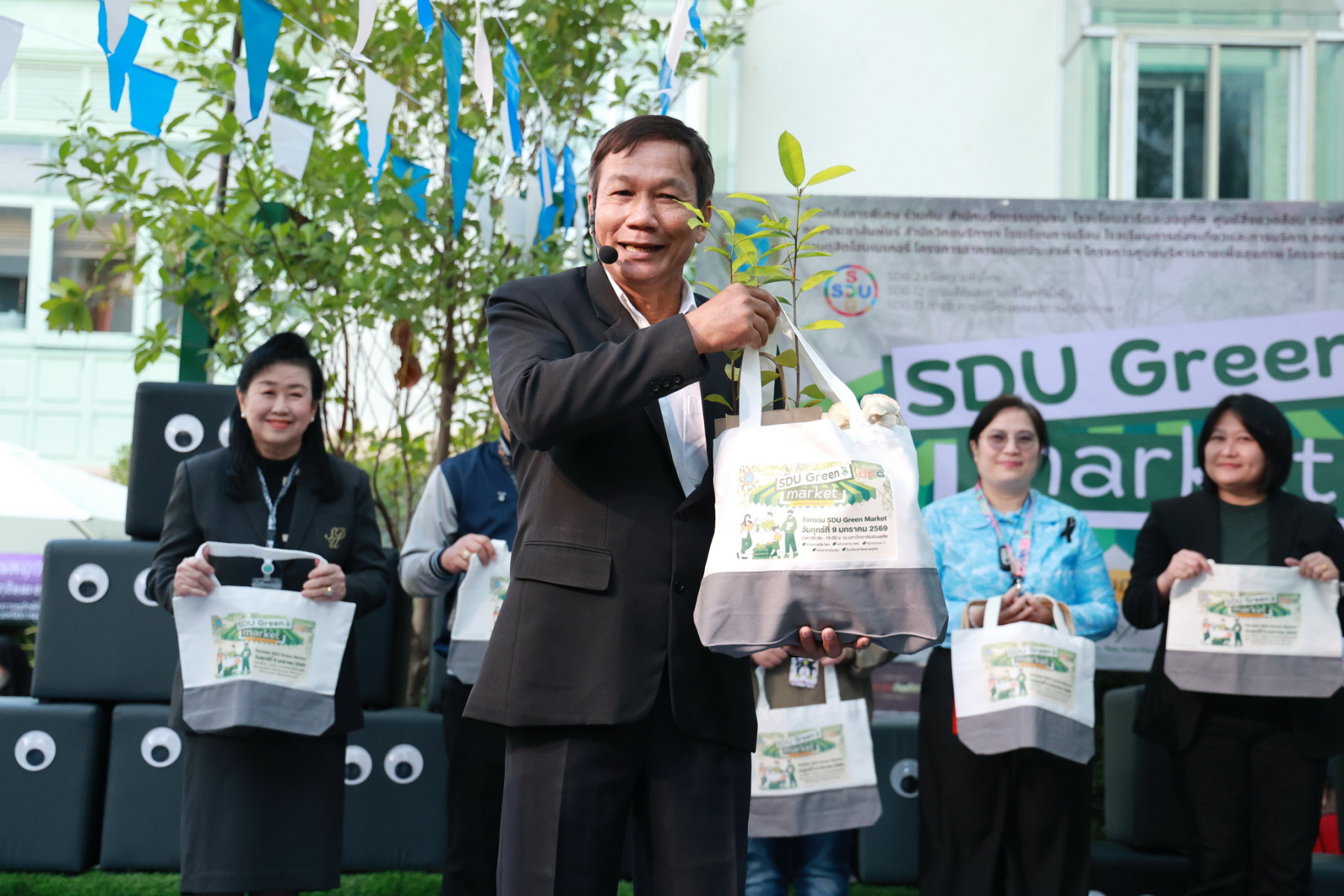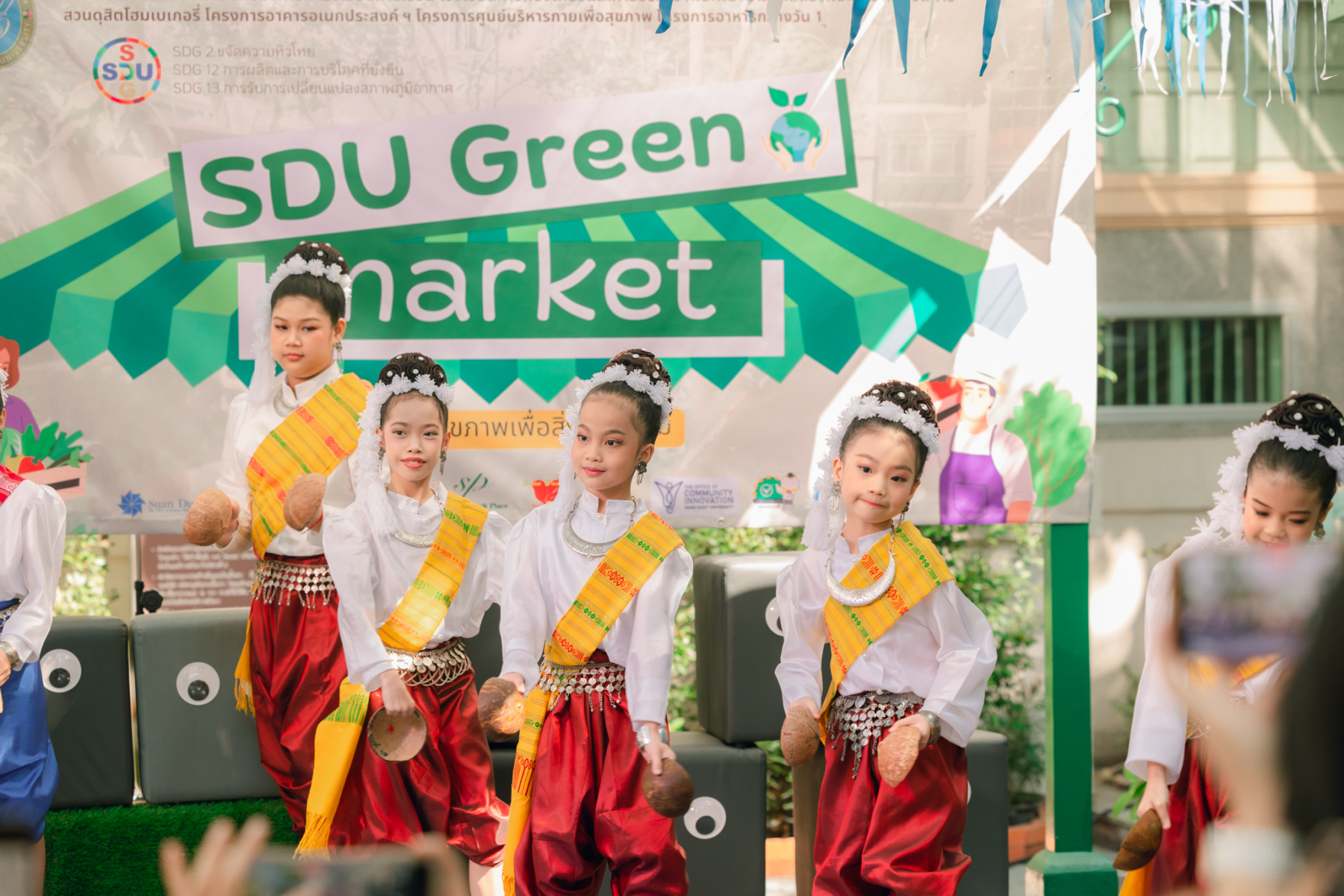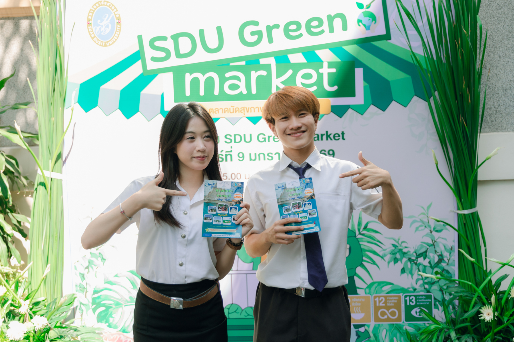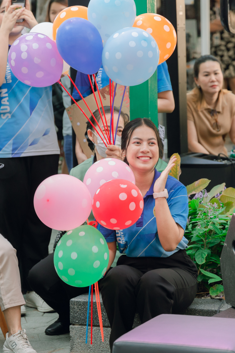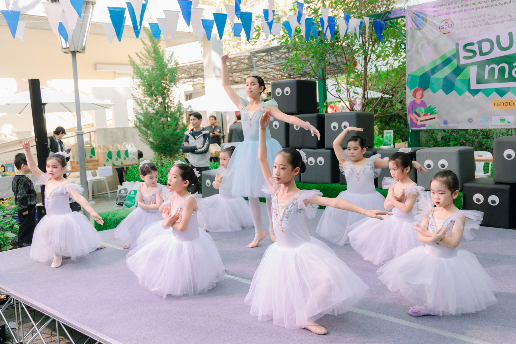 มหาวิทยาลัยสวนดุสิต โดยสำนักกิจการพิเศษ ร่วมกับสำนักนวัตกรรมชุมชน และโรงเรียนสาธิตละอออุทิศ ผนึกกำลังจัดโครงการ “SDU Green Market : ตลาดนัดสุขภาพเพื่อสิ่งแวดล้อมอย่างยั่งยืน” เมื่อวันศุกร์ที่ 9 มกราคม 2569 ณ ลานกิจกรรมสวนดุสิตโพล เพื่อสร้างต้นแบบตลาดนัดสุขภาพและส่งเสริมความร่วมมือระหว่างหน่วยงานภายในสู่เครือข่ายชุมชนอย่างเป็นรูปธรรม ภายในงานได้รับเกียรติจาก ดร.สวงค์ บุญปลูก รองอธิการบดีฝ่ายเทคโนโลยีและสารสนเทศ มหาวิทยาลัยสวนดุสิต เป็นประธานในพิธีเปิด ดร.สุทัน มุมแดง ผู้อำนวยการสำนักกิจการพิเศษ กล่าวรายงาน โดย ดร.วรานี เวสสุนทรเทพ รองอธิการบดีฝ่ายวิทยาเขตสุพรรณบุรี พร้อมด้วย ผู้อำนวยการสถาบัน สำนัก โรงเรียน คณบดี ร่วมเป็นเกียรติในพิธีเปิด โครงการ “SDU Green Market : ตลาดนัดสุขภาพเพื่อสิ่งแวดล้อมอย่างยั่งยืน” จำหน่ายสินค้าเพื่อสุขภาพและผลิตภัณฑ์ชุมชน ได้รับความสนใจจากอาจารย์ บุคลากร และนักศึกษาเข้าร่วมงาน นอกจากนี้ยังมีกิจกรรมต่าง ๆ ดังนี้การแสดงศิลปวัฒนธรรมและนวัตกรรมสร้างสรรค์ การแสดงจากนักเรียนโรงเรียนสาธิตละอออุทิศรวมกว่า 9 ชุดการแสดง อาทิ บัลเล่ต์เพลงพระราชนิพนธ์ เซิ้งส้มตำ และ Kids dance on stage รวมถึงการแสดงดนตรีจากนักศึกษา มหาวิทยาลัยสวนดุสิต เวทีเสวนาแลกเปลี่ยนเรียนรู้ การเสวนาในหัวข้อ “กินอย่างไรให้โลกไม่ร้อน” รวมถึงกิจกรรมเสวนา “เปลี่ยนขยะให้เป็นเงิน” โดยคณะวิทยาศาสตร์และเทคโนโลยี ร่วมกับสำนักงานเขตดุสิต