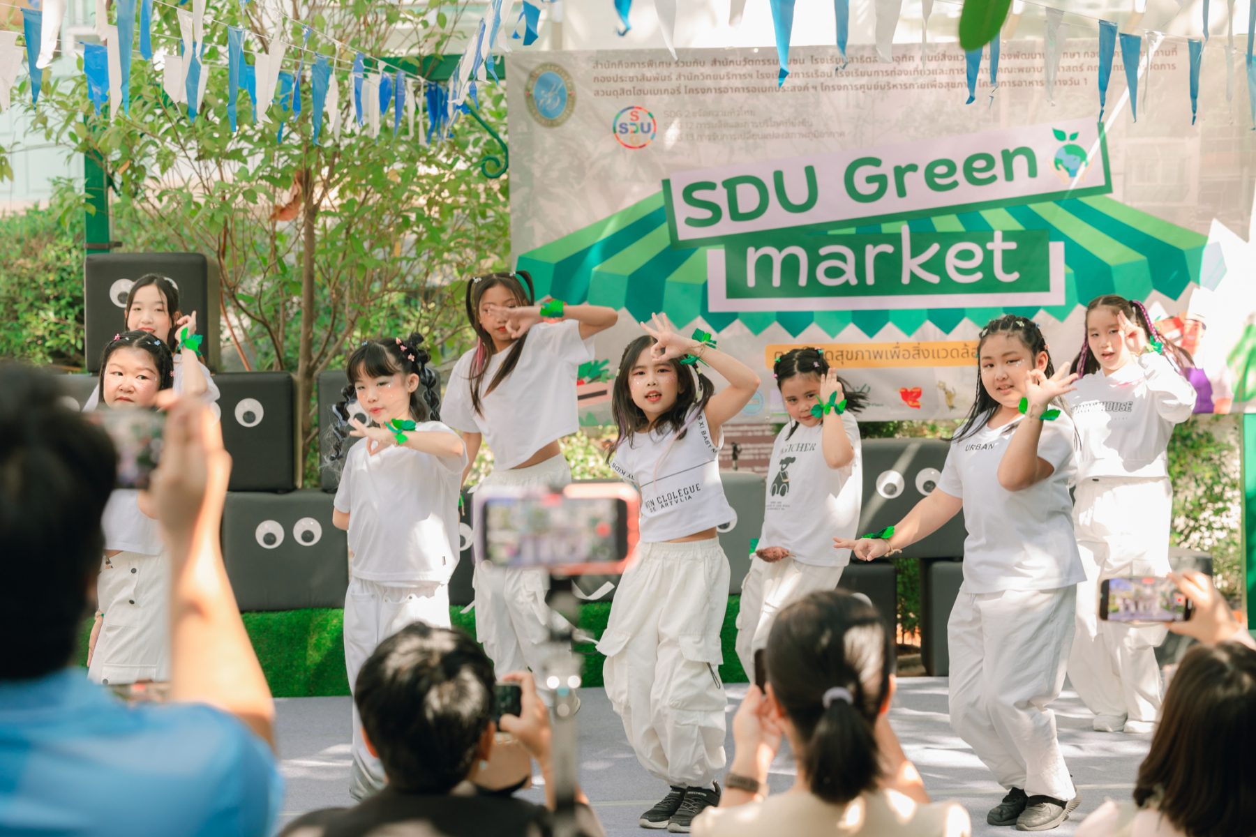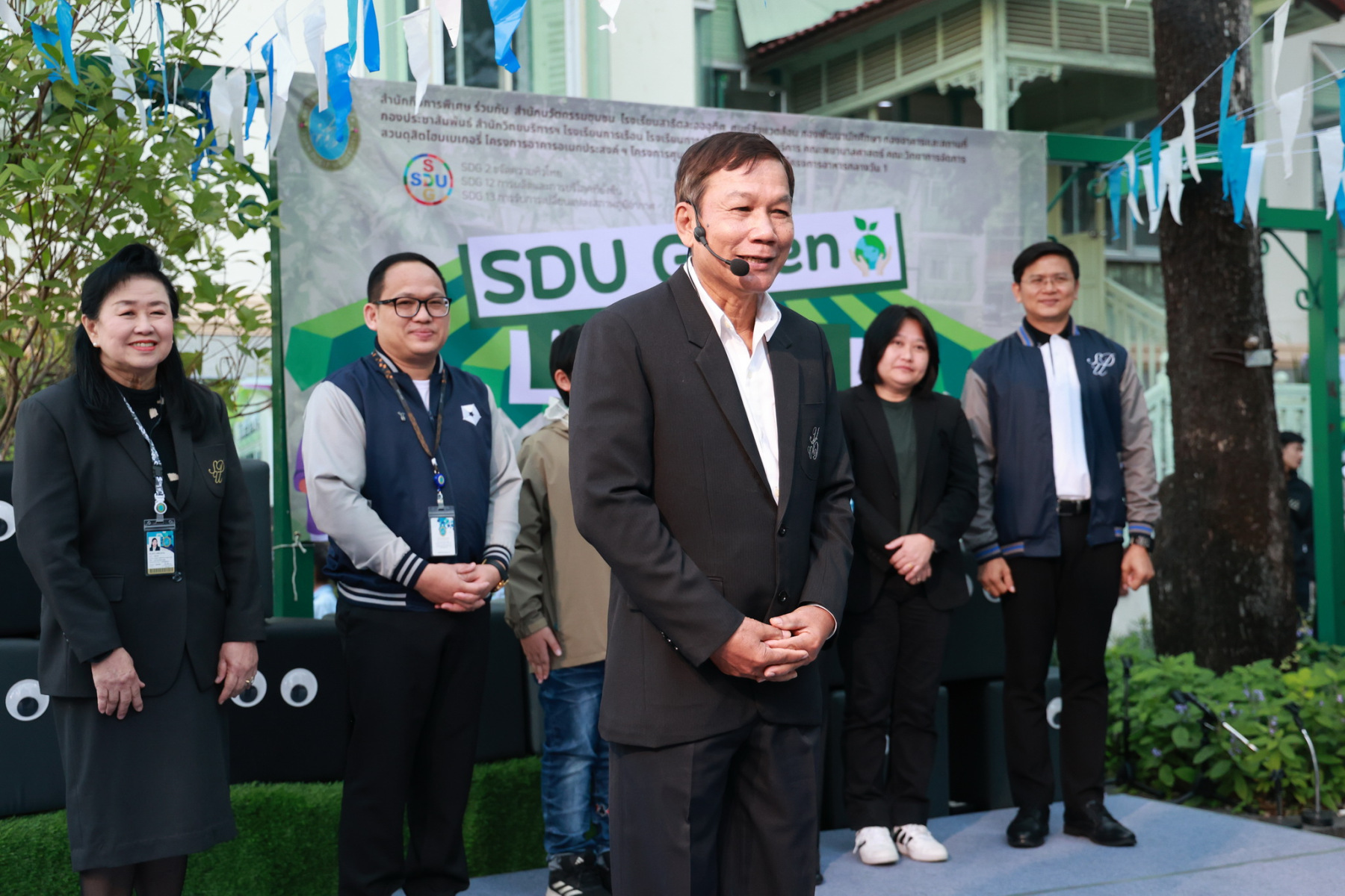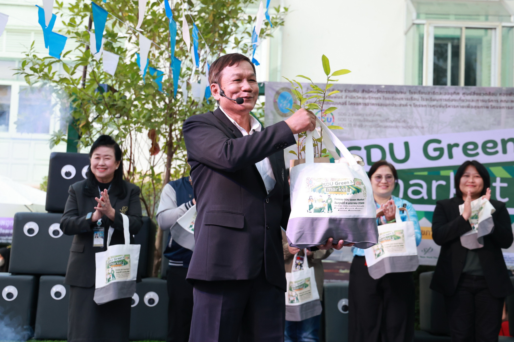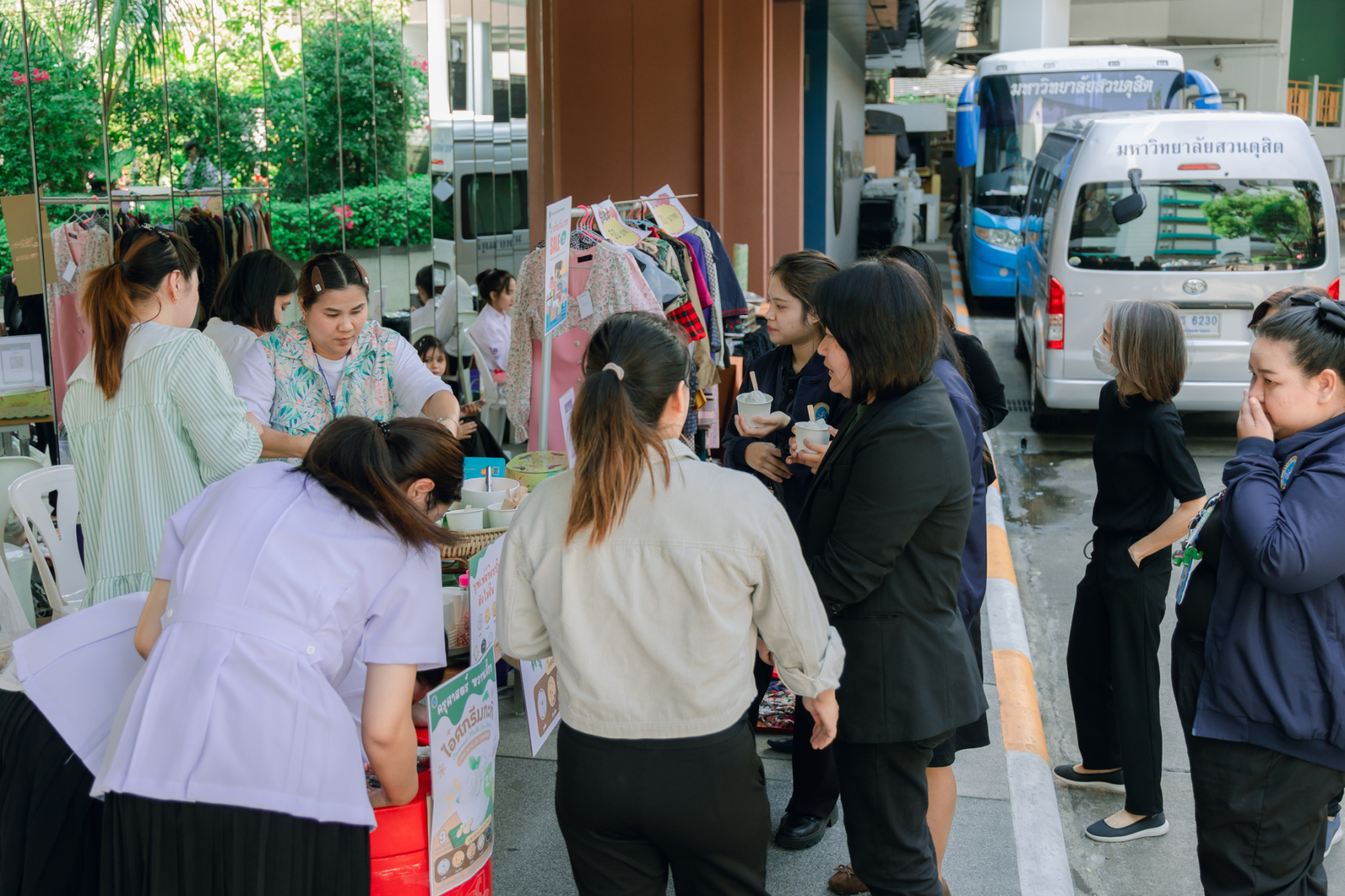 มหาวิทยาลัยสวนดุสิต โดยสำนักกิจการพิเศษ ร่วมกับสำนักนวัตกรรมชุมชน และโรงเรียนสาธิตละอออุทิศ ผนึกกำลังจัดโครงการ “SDU Green Market : ตลาดนัดสุขภาพเพื่อสิ่งแวดล้อมอย่างยั่งยืน” เมื่อวันศุกร์ที่ 9 มกราคม 2569 ณ ลานกิจกรรมสวนดุสิตโพล เพื่อสร้างต้นแบบตลาดนัดสุขภาพและส่งเสริมความร่วมมือระหว่างหน่วยงานภายในสู่เครือข่ายชุมชนอย่างเป็นรูปธรรม ภายในงานได้รับเกียรติจาก ดร.สวงค์ บุญปลูก รองอธิการบดีฝ่ายเทคโนโลยีและสารสนเทศ มหาวิทยาลัยสวนดุสิต เป็นประธานในพิธีเปิด ดร.สุทัน มุมแดง ผู้อำนวยการสำนักกิจการพิเศษ กล่าวรายงาน โดย ดร.วรานี เวสสุนทรเทพ รองอธิการบดีฝ่ายวิทยาเขตสุพรรณบุรี พร้อมด้วย ผู้อำนวยการสถาบัน สำนัก โรงเรียน คณบดี ร่วมเป็นเกียรติในพิธีเปิด โครงการ “SDU Green Market : ตลาดนัดสุขภาพเพื่อสิ่งแวดล้อมอย่างยั่งยืน” จำหน่ายสินค้าเพื่อสุขภาพและผลิตภัณฑ์ชุมชน ได้รับความสนใจจากอาจารย์ บุคลากร และนักศึกษาเข้าร่วมงาน นอกจากนี้ยังมีกิจกรรมต่าง ๆ ดังนี้การแสดงศิลปวัฒนธรรมและนวัตกรรมสร้างสรรค์ การแสดงจากนักเรียนโรงเรียนสาธิตละอออุทิศรวมกว่า 9 ชุดการแสดง อาทิ บัลเล่ต์เพลงพระราชนิพนธ์ เซิ้งส้มตำ และ Kids dance on stage รวมถึงการแสดงดนตรีจากนักศึกษา มหาวิทยาลัยสวนดุสิต เวทีเสวนาแลกเปลี่ยนเรียนรู้ การเสวนาในหัวข้อ “กินอย่างไรให้โลกไม่ร้อน” รวมถึงกิจกรรมเสวนา “เปลี่ยนขยะให้เป็นเงิน” โดยคณะวิทยาศาสตร์และเทคโนโลยี ร่วมกับสำนักงานเขตดุสิต