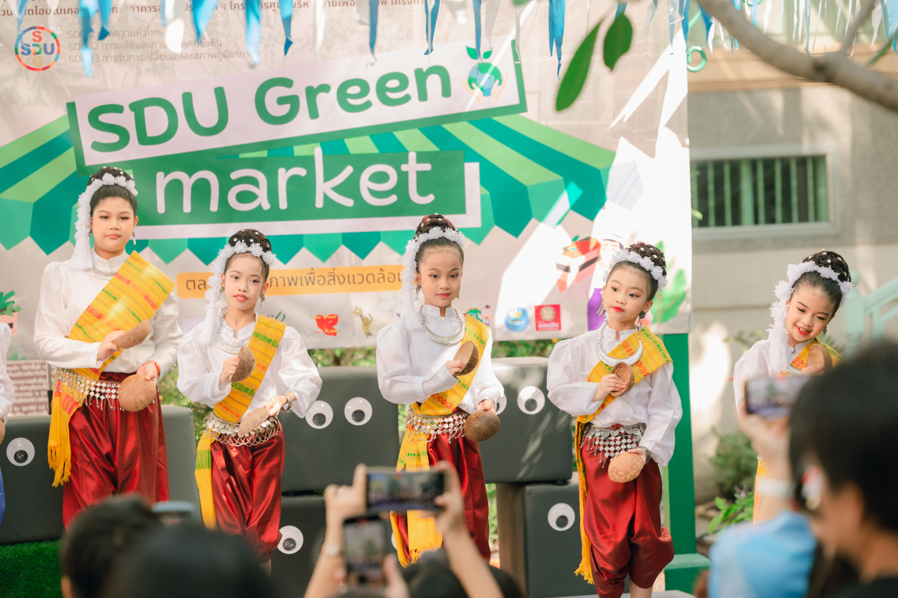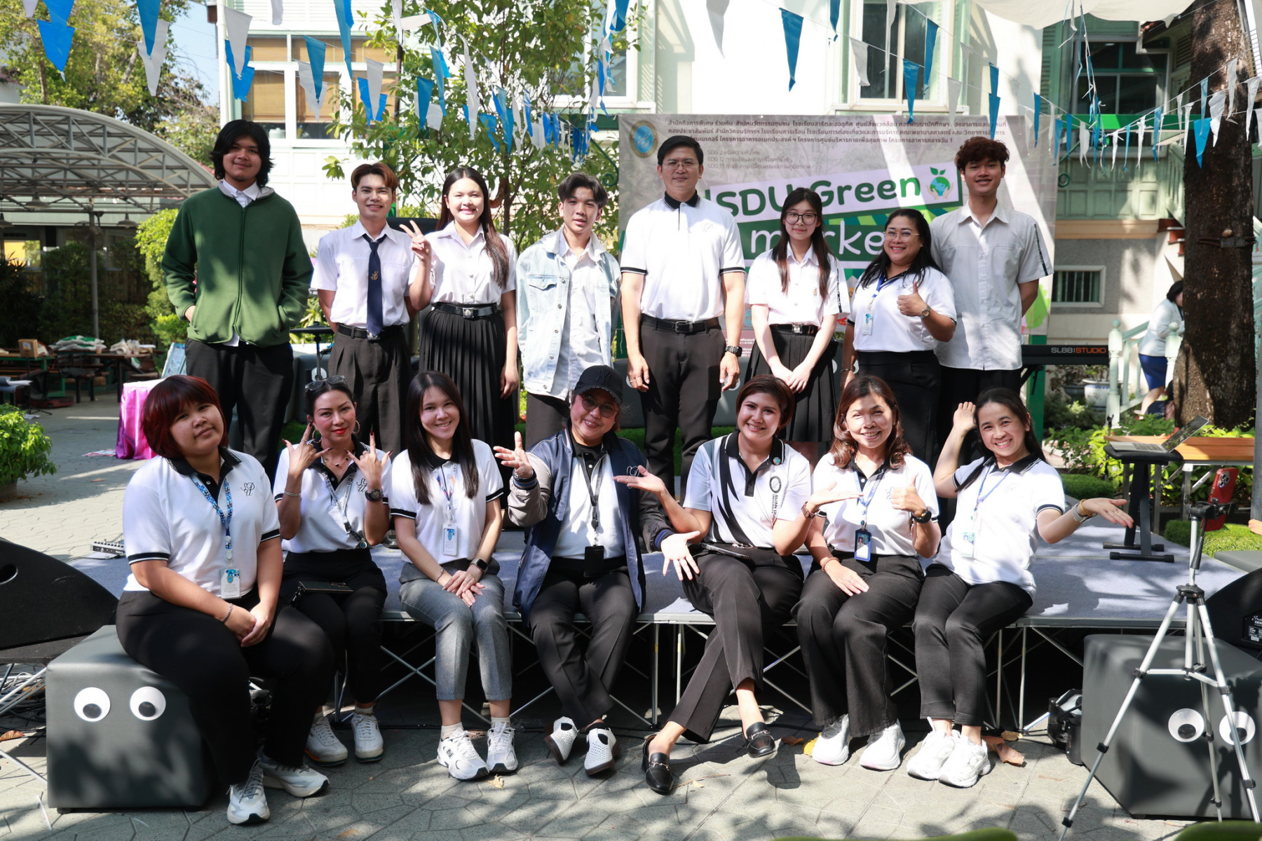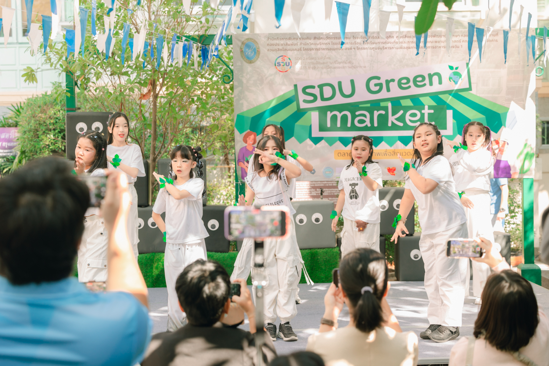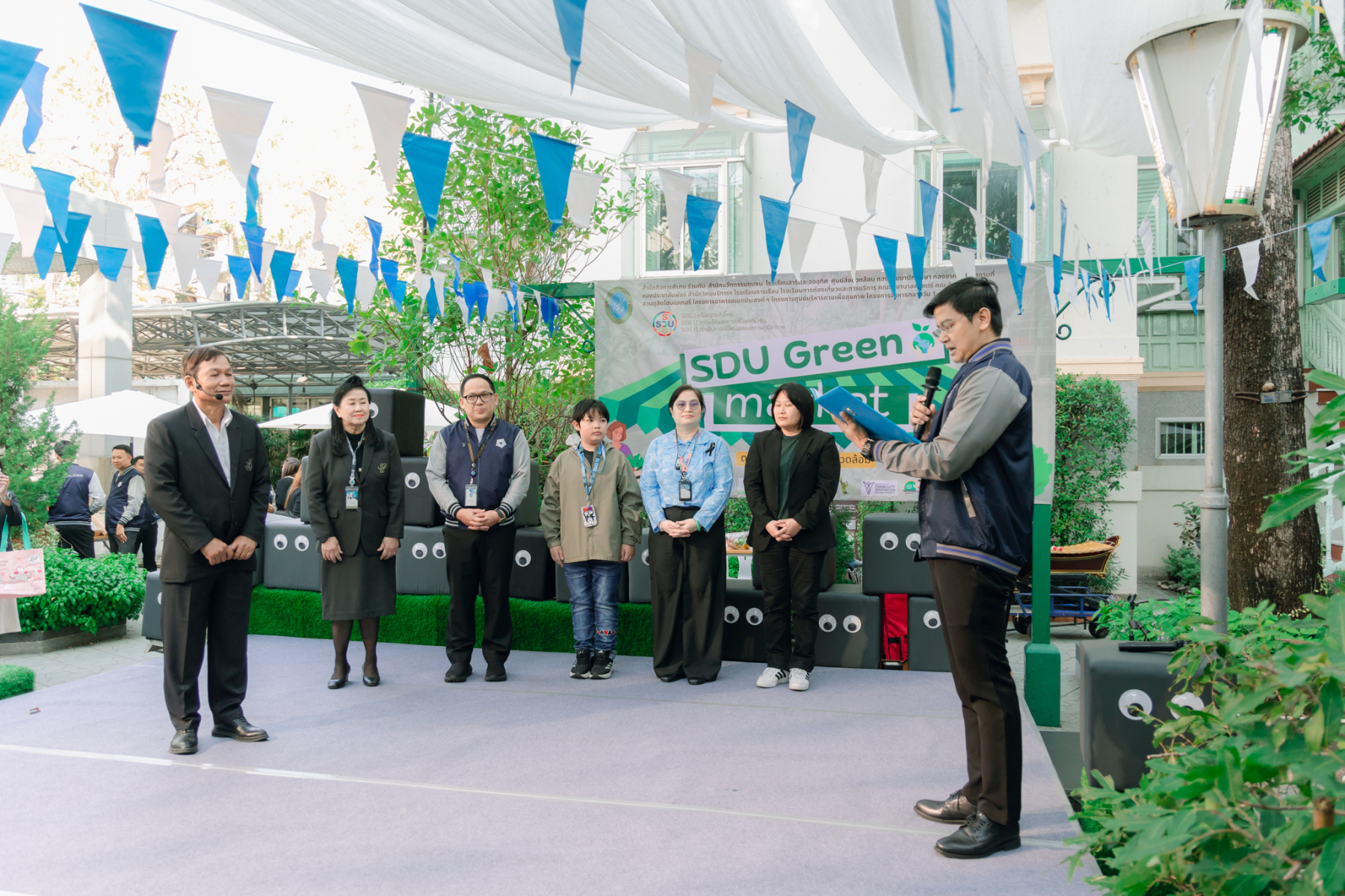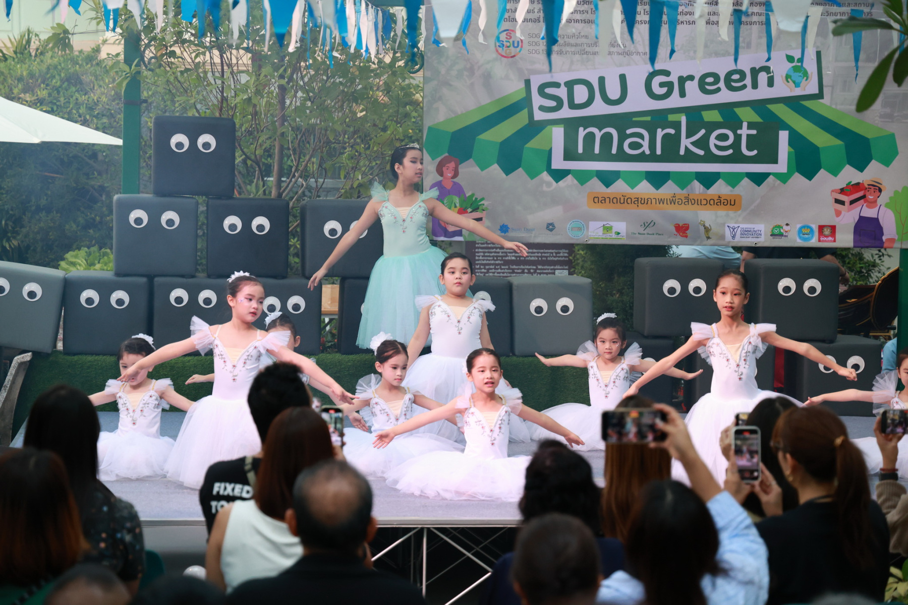 มหาวิทยาลัยสวนดุสิต โดยสำนักกิจการพิเศษ ร่วมกับสำนักนวัตกรรมชุมชน และโรงเรียนสาธิตละอออุทิศ ผนึกกำลังจัดโครงการ “SDU Green Market : ตลาดนัดสุขภาพเพื่อสิ่งแวดล้อมอย่างยั่งยืน” เมื่อวันศุกร์ที่ 9 มกราคม 2569 ณ ลานกิจกรรมสวนดุสิตโพล เพื่อสร้างต้นแบบตลาดนัดสุขภาพและส่งเสริมความร่วมมือระหว่างหน่วยงานภายในสู่เครือข่ายชุมชนอย่างเป็นรูปธรรม ภายในงานได้รับเกียรติจาก ดร.สวงค์ บุญปลูก รองอธิการบดีฝ่ายเทคโนโลยีและสารสนเทศ มหาวิทยาลัยสวนดุสิต เป็นประธานในพิธีเปิด ดร.สุทัน มุมแดง ผู้อำนวยการสำนักกิจการพิเศษ กล่าวรายงาน โดย ดร.วรานี เวสสุนทรเทพ รองอธิการบดีฝ่ายวิทยาเขตสุพรรณบุรี พร้อมด้วย ผู้อำนวยการสถาบัน สำนัก โรงเรียน คณบดี ร่วมเป็นเกียรติในพิธีเปิด โครงการ “SDU Green Market : ตลาดนัดสุขภาพเพื่อสิ่งแวดล้อมอย่างยั่งยืน” จำหน่ายสินค้าเพื่อสุขภาพและผลิตภัณฑ์ชุมชน ได้รับความสนใจจากอาจารย์ บุคลากร และนักศึกษาเข้าร่วมงาน นอกจากนี้ยังมีกิจกรรมต่าง ๆ ดังนี้การแสดงศิลปวัฒนธรรมและนวัตกรรมสร้างสรรค์ การแสดงจากนักเรียนโรงเรียนสาธิตละอออุทิศรวมกว่า 9 ชุดการแสดง อาทิ บัลเล่ต์เพลงพระราชนิพนธ์ เซิ้งส้มตำ และ Kids dance on stage รวมถึงการแสดงดนตรีจากนักศึกษา มหาวิทยาลัยสวนดุสิต เวทีเสวนาแลกเปลี่ยนเรียนรู้ การเสวนาในหัวข้อ “กินอย่างไรให้โลกไม่ร้อน” รวมถึงกิจกรรมเสวนา “เปลี่ยนขยะให้เป็นเงิน” โดยคณะวิทยาศาสตร์และเทคโนโลยี ร่วมกับสำนักงานเขตดุสิต