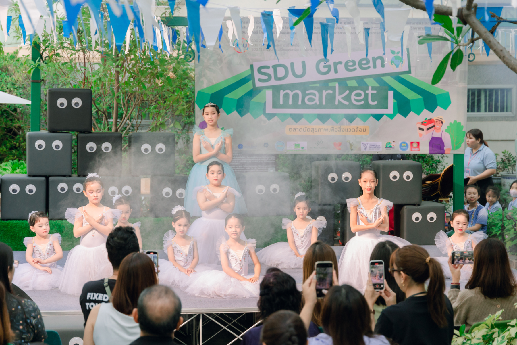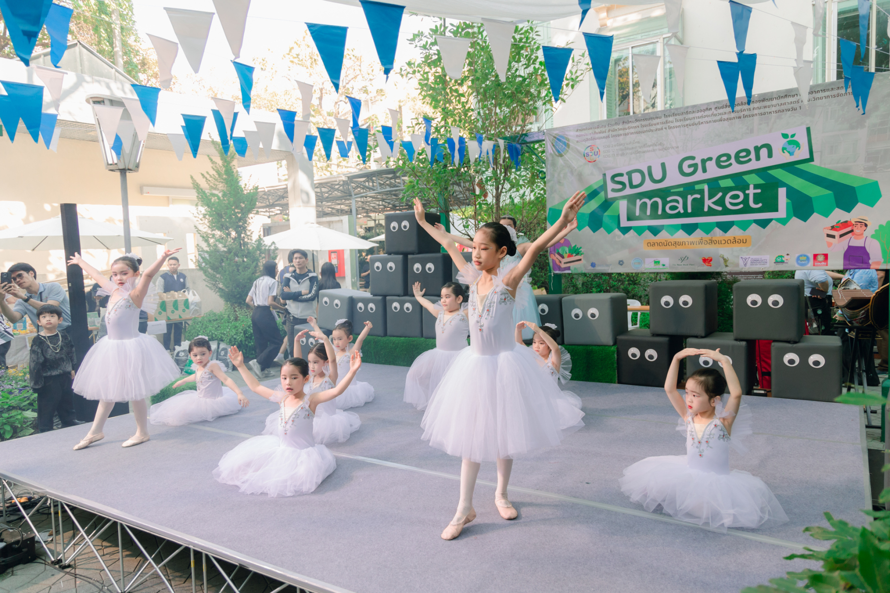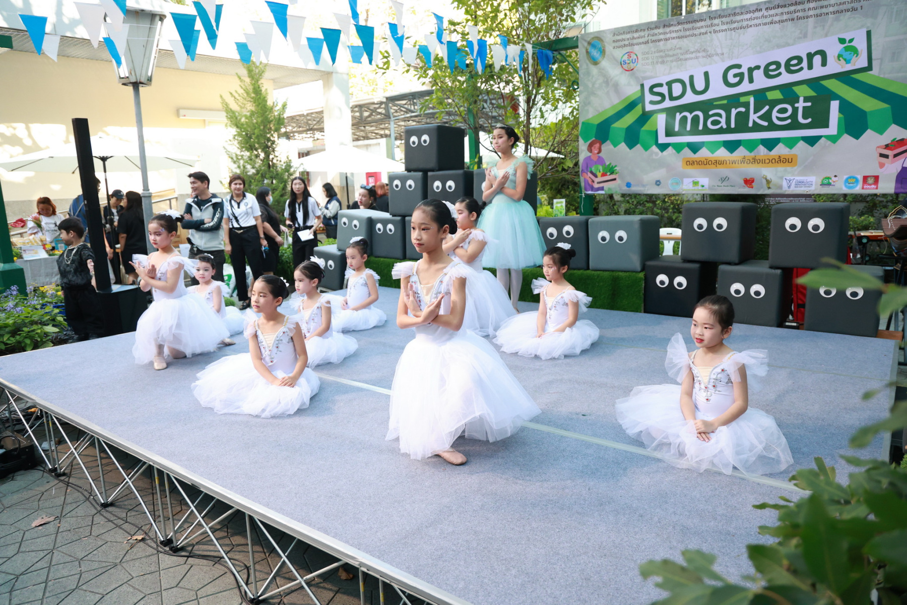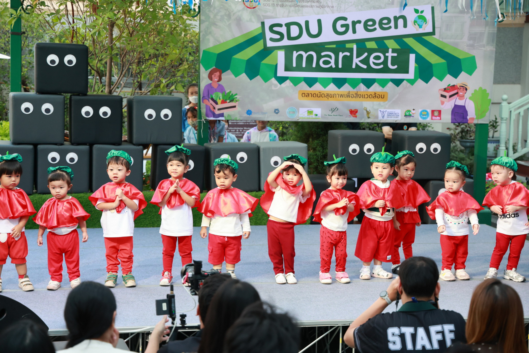 มหาวิทยาลัยสวนดุสิต โดยสำนักกิจการพิเศษ ร่วมกับสำนักนวัตกรรมชุมชน และโรงเรียนสาธิตละอออุทิศ ผนึกกำลังจัดโครงการ “SDU Green Market : ตลาดนัดสุขภาพเพื่อสิ่งแวดล้อมอย่างยั่งยืน” เมื่อวันศุกร์ที่ 9 มกราคม 2569 ณ ลานกิจกรรมสวนดุสิตโพล เพื่อสร้างต้นแบบตลาดนัดสุขภาพและส่งเสริมความร่วมมือระหว่างหน่วยงานภายในสู่เครือข่ายชุมชนอย่างเป็นรูปธรรม ภายในงานได้รับเกียรติจาก ดร.สวงค์ บุญปลูก รองอธิการบดีฝ่ายเทคโนโลยีและสารสนเทศ มหาวิทยาลัยสวนดุสิต เป็นประธานในพิธีเปิด ดร.สุทัน มุมแดง ผู้อำนวยการสำนักกิจการพิเศษ กล่าวรายงาน โดย ดร.วรานี เวสสุนทรเทพ รองอธิการบดีฝ่ายวิทยาเขตสุพรรณบุรี พร้อมด้วย ผู้อำนวยการสถาบัน สำนัก โรงเรียน คณบดี ร่วมเป็นเกียรติในพิธีเปิด โครงการ “SDU Green Market : ตลาดนัดสุขภาพเพื่อสิ่งแวดล้อมอย่างยั่งยืน” จำหน่ายสินค้าเพื่อสุขภาพและผลิตภัณฑ์ชุมชน ได้รับความสนใจจากอาจารย์ บุคลากร และนักศึกษาเข้าร่วมงาน นอกจากนี้ยังมีกิจกรรมต่าง ๆ ดังนี้การแสดงศิลปวัฒนธรรมและนวัตกรรมสร้างสรรค์ การแสดงจากนักเรียนโรงเรียนสาธิตละอออุทิศรวมกว่า 9 ชุดการแสดง อาทิ บัลเล่ต์เพลงพระราชนิพนธ์ เซิ้งส้มตำ และ Kids dance on stage รวมถึงการแสดงดนตรีจากนักศึกษา มหาวิทยาลัยสวนดุสิต เวทีเสวนาแลกเปลี่ยนเรียนรู้ การเสวนาในหัวข้อ “กินอย่างไรให้โลกไม่ร้อน” รวมถึงกิจกรรมเสวนา “เปลี่ยนขยะให้เป็นเงิน” โดยคณะวิทยาศาสตร์และเทคโนโลยี ร่วมกับสำนักงานเขตดุสิต