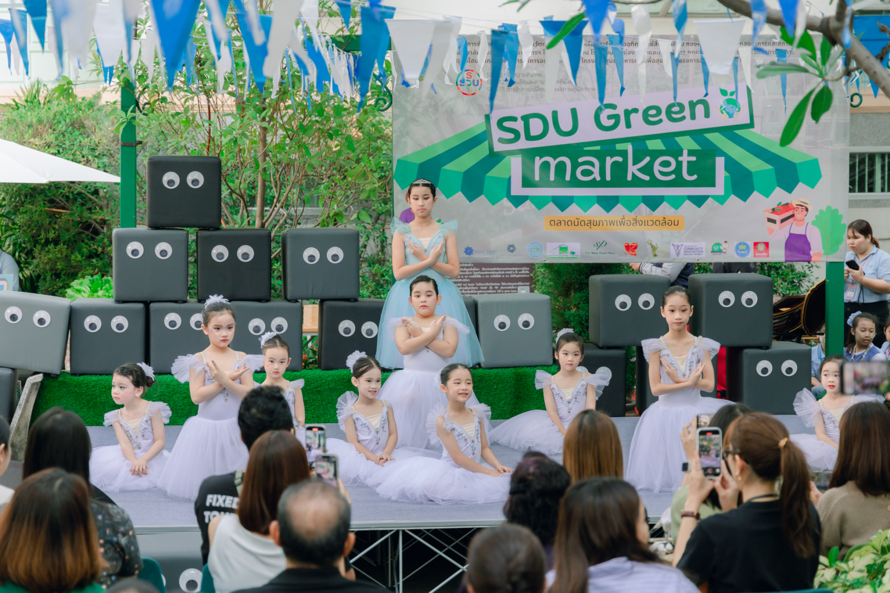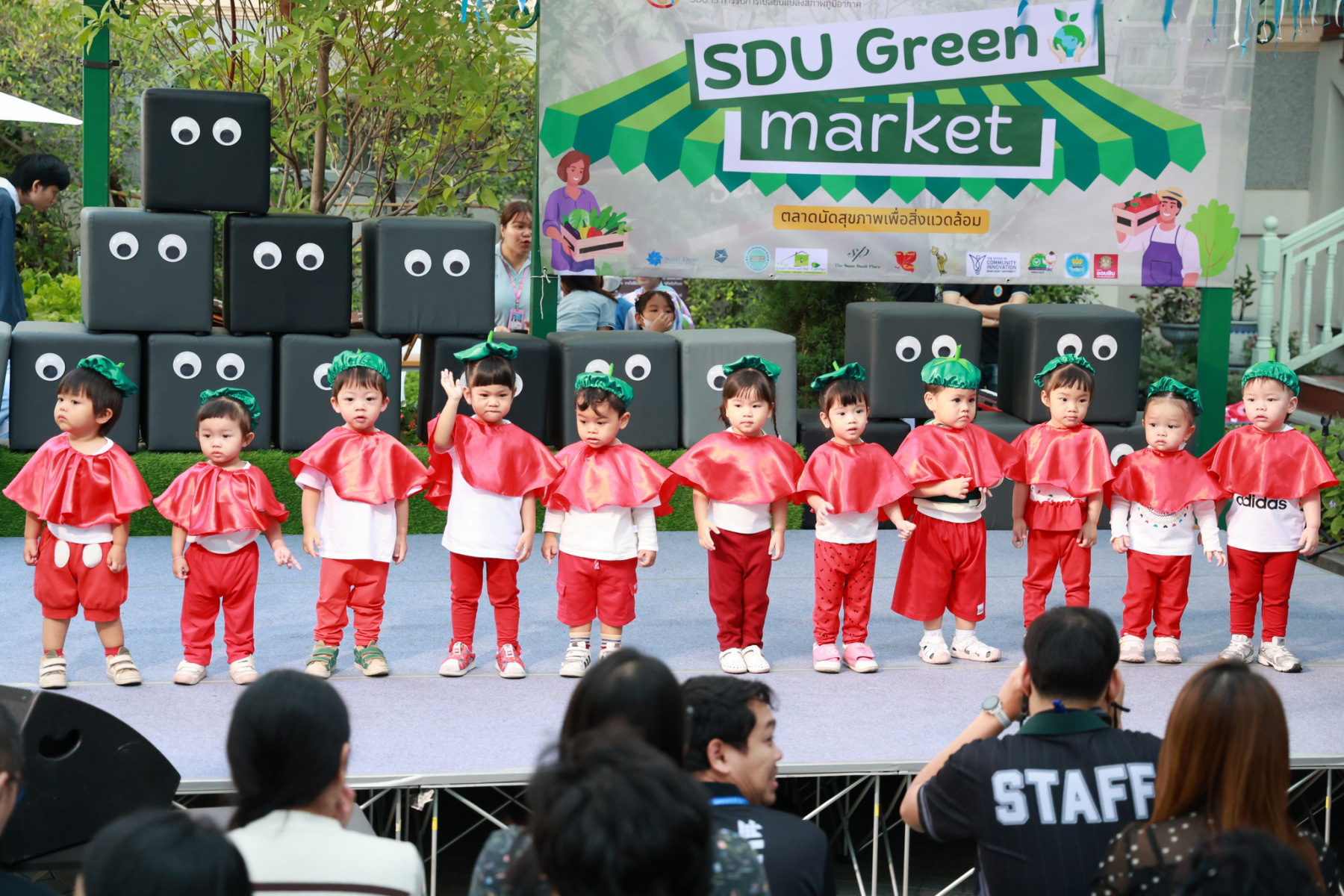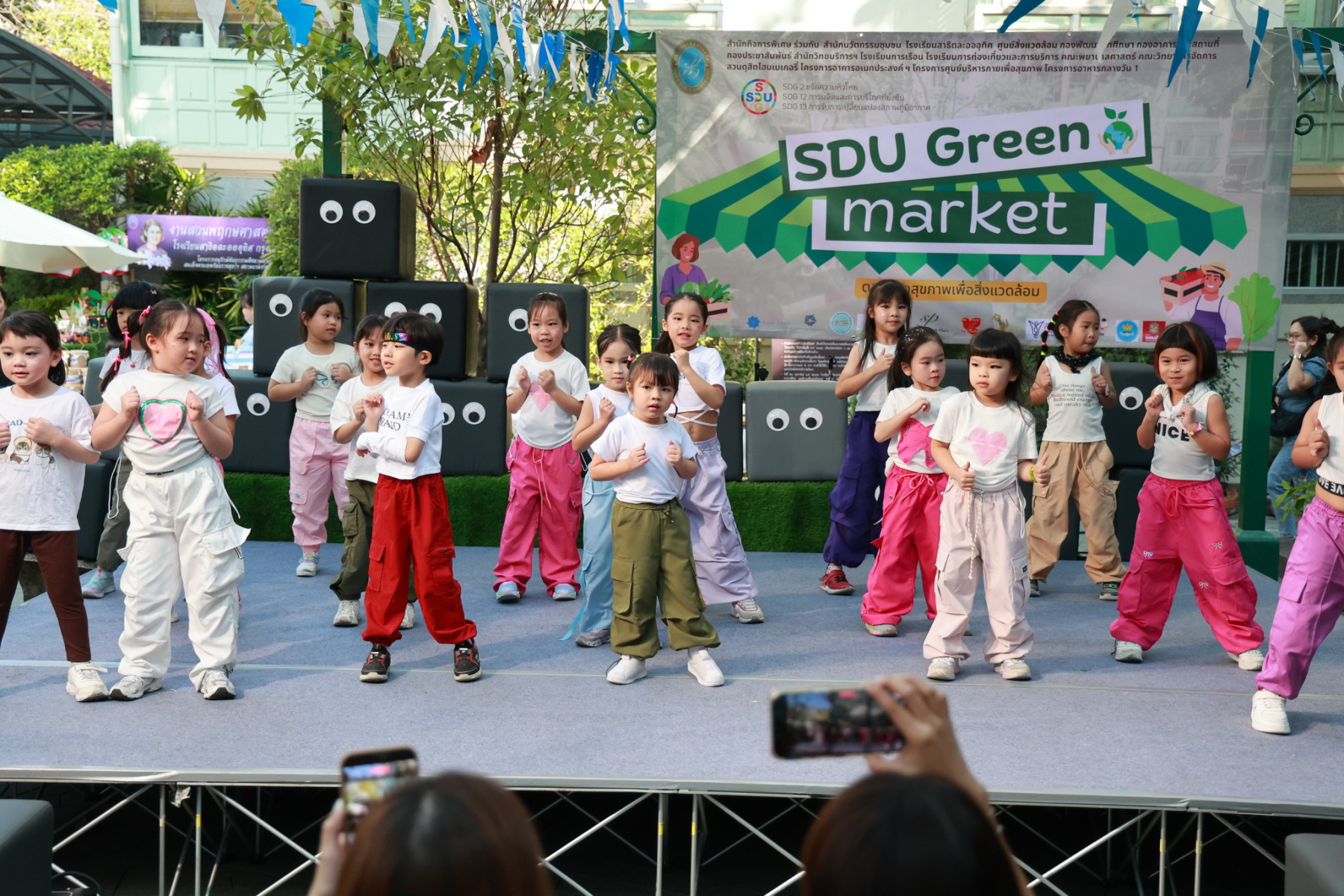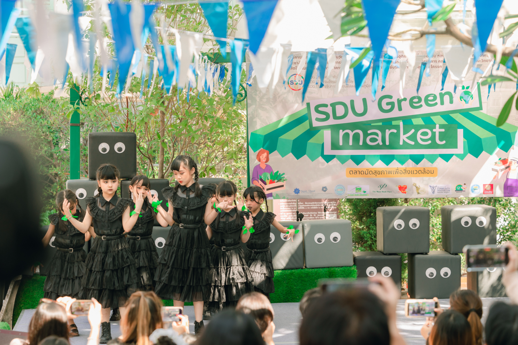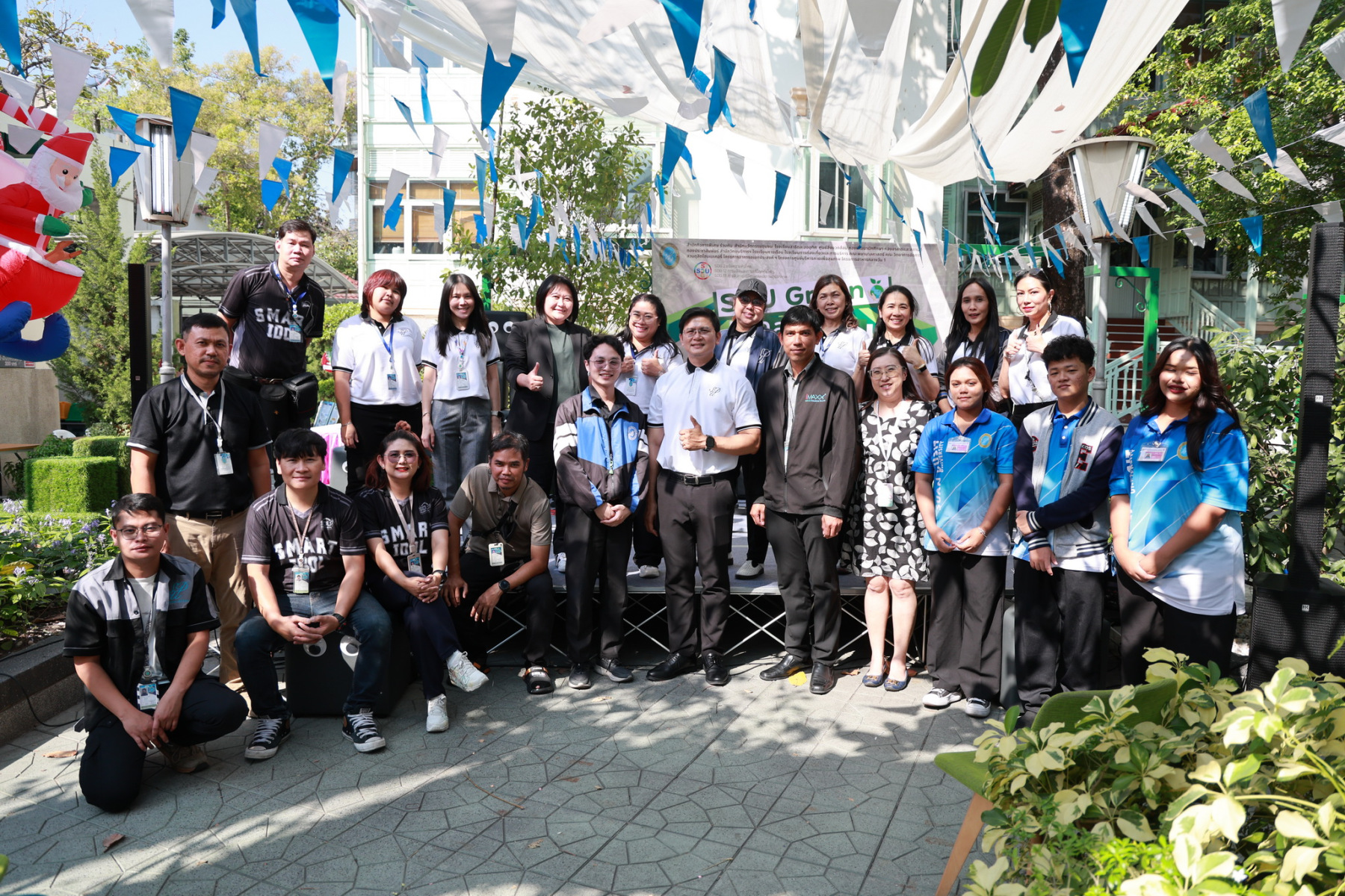 มหาวิทยาลัยสวนดุสิต โดยสำนักกิจการพิเศษ ร่วมกับสำนักนวัตกรรมชุมชน และโรงเรียนสาธิตละอออุทิศ ผนึกกำลังจัดโครงการ “SDU Green Market : ตลาดนัดสุขภาพเพื่อสิ่งแวดล้อมอย่างยั่งยืน” เมื่อวันศุกร์ที่ 9 มกราคม 2569 ณ ลานกิจกรรมสวนดุสิตโพล เพื่อสร้างต้นแบบตลาดนัดสุขภาพและส่งเสริมความร่วมมือระหว่างหน่วยงานภายในสู่เครือข่ายชุมชนอย่างเป็นรูปธรรม ภายในงานได้รับเกียรติจาก ดร.สวงค์ บุญปลูก รองอธิการบดีฝ่ายเทคโนโลยีและสารสนเทศ มหาวิทยาลัยสวนดุสิต เป็นประธานในพิธีเปิด ดร.สุทัน มุมแดง ผู้อำนวยการสำนักกิจการพิเศษ กล่าวรายงาน โดย ดร.วรานี เวสสุนทรเทพ รองอธิการบดีฝ่ายวิทยาเขตสุพรรณบุรี พร้อมด้วย ผู้อำนวยการสถาบัน สำนัก โรงเรียน คณบดี ร่วมเป็นเกียรติในพิธีเปิด โครงการ “SDU Green Market : ตลาดนัดสุขภาพเพื่อสิ่งแวดล้อมอย่างยั่งยืน” จำหน่ายสินค้าเพื่อสุขภาพและผลิตภัณฑ์ชุมชน ได้รับความสนใจจากอาจารย์ บุคลากร และนักศึกษาเข้าร่วมงาน นอกจากนี้ยังมีกิจกรรมต่าง ๆ ดังนี้การแสดงศิลปวัฒนธรรมและนวัตกรรมสร้างสรรค์ การแสดงจากนักเรียนโรงเรียนสาธิตละอออุทิศรวมกว่า 9 ชุดการแสดง อาทิ บัลเล่ต์เพลงพระราชนิพนธ์ เซิ้งส้มตำ และ Kids dance on stage รวมถึงการแสดงดนตรีจากนักศึกษา มหาวิทยาลัยสวนดุสิต เวทีเสวนาแลกเปลี่ยนเรียนรู้ การเสวนาในหัวข้อ “กินอย่างไรให้โลกไม่ร้อน” รวมถึงกิจกรรมเสวนา “เปลี่ยนขยะให้เป็นเงิน” โดยคณะวิทยาศาสตร์และเทคโนโลยี ร่วมกับสำนักงานเขตดุสิต