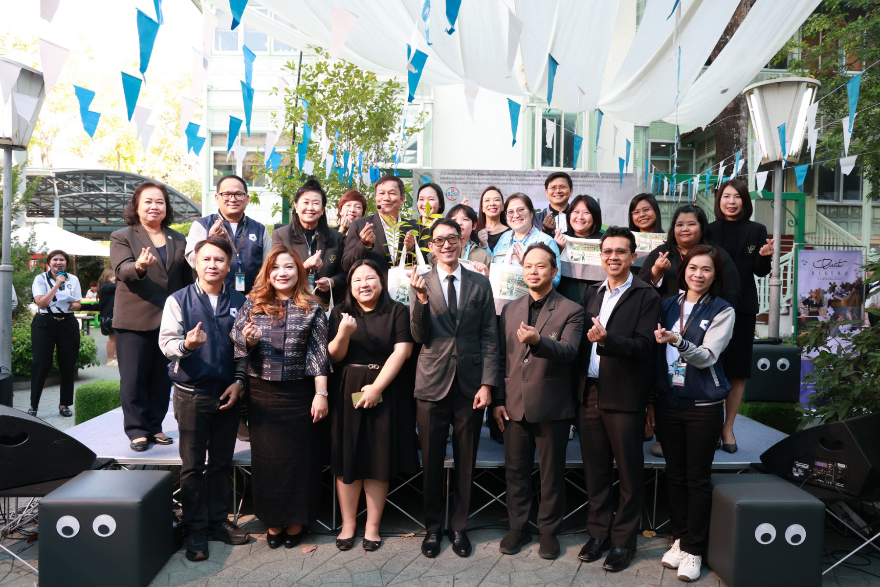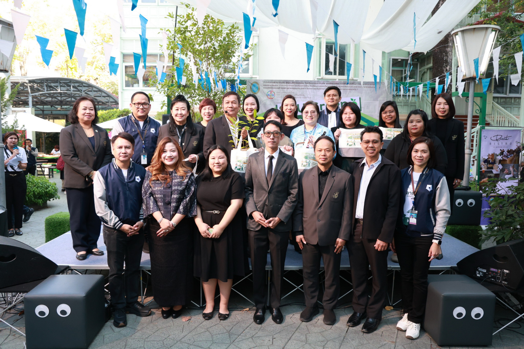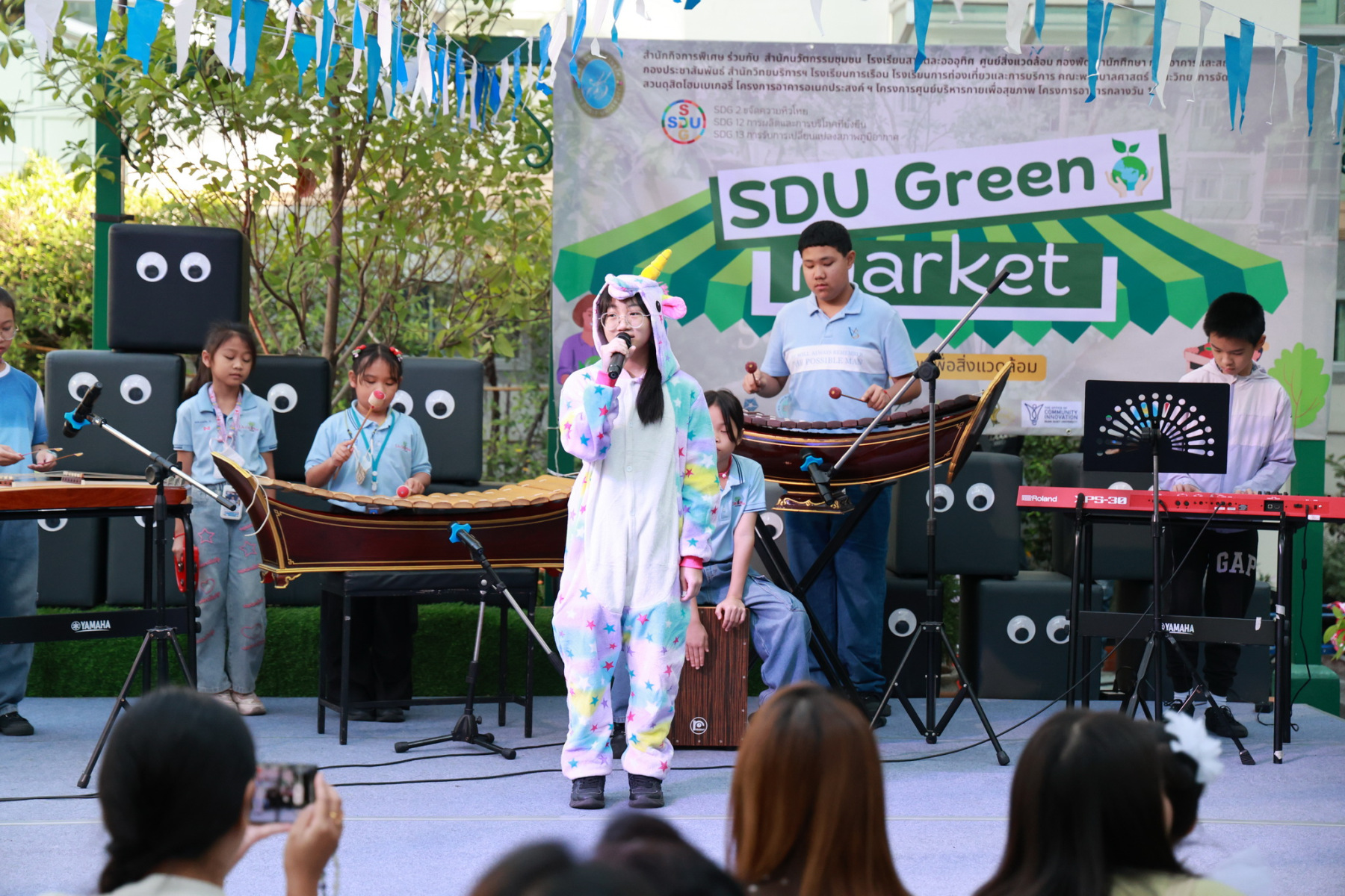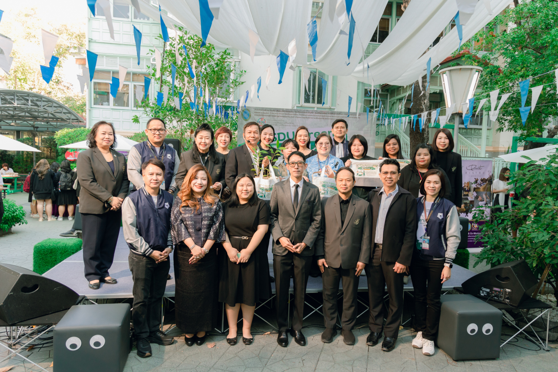 มหาวิทยาลัยสวนดุสิต โดยสำนักกิจการพิเศษ ร่วมกับสำนักนวัตกรรมชุมชน และโรงเรียนสาธิตละอออุทิศ ผนึกกำลังจัดโครงการ “SDU Green Market : ตลาดนัดสุขภาพเพื่อสิ่งแวดล้อมอย่างยั่งยืน” เมื่อวันศุกร์ที่ 9 มกราคม 2569 ณ ลานกิจกรรมสวนดุสิตโพล เพื่อสร้างต้นแบบตลาดนัดสุขภาพและส่งเสริมความร่วมมือระหว่างหน่วยงานภายในสู่เครือข่ายชุมชนอย่างเป็นรูปธรรม ภายในงานได้รับเกียรติจาก ดร.สวงค์ บุญปลูก รองอธิการบดีฝ่ายเทคโนโลยีและสารสนเทศ มหาวิทยาลัยสวนดุสิต เป็นประธานในพิธีเปิด ดร.สุทัน มุมแดง ผู้อำนวยการสำนักกิจการพิเศษ กล่าวรายงาน โดย ดร.วรานี เวสสุนทรเทพ รองอธิการบดีฝ่ายวิทยาเขตสุพรรณบุรี พร้อมด้วย ผู้อำนวยการสถาบัน สำนัก โรงเรียน คณบดี ร่วมเป็นเกียรติในพิธีเปิด โครงการ “SDU Green Market : ตลาดนัดสุขภาพเพื่อสิ่งแวดล้อมอย่างยั่งยืน” จำหน่ายสินค้าเพื่อสุขภาพและผลิตภัณฑ์ชุมชน ได้รับความสนใจจากอาจารย์ บุคลากร และนักศึกษาเข้าร่วมงาน นอกจากนี้ยังมีกิจกรรมต่าง ๆ ดังนี้การแสดงศิลปวัฒนธรรมและนวัตกรรมสร้างสรรค์ การแสดงจากนักเรียนโรงเรียนสาธิตละอออุทิศรวมกว่า 9 ชุดการแสดง อาทิ บัลเล่ต์เพลงพระราชนิพนธ์ เซิ้งส้มตำ และ Kids dance on stage รวมถึงการแสดงดนตรีจากนักศึกษา มหาวิทยาลัยสวนดุสิต เวทีเสวนาแลกเปลี่ยนเรียนรู้ การเสวนาในหัวข้อ “กินอย่างไรให้โลกไม่ร้อน” รวมถึงกิจกรรมเสวนา “เปลี่ยนขยะให้เป็นเงิน” โดยคณะวิทยาศาสตร์และเทคโนโลยี ร่วมกับสำนักงานเขตดุสิต