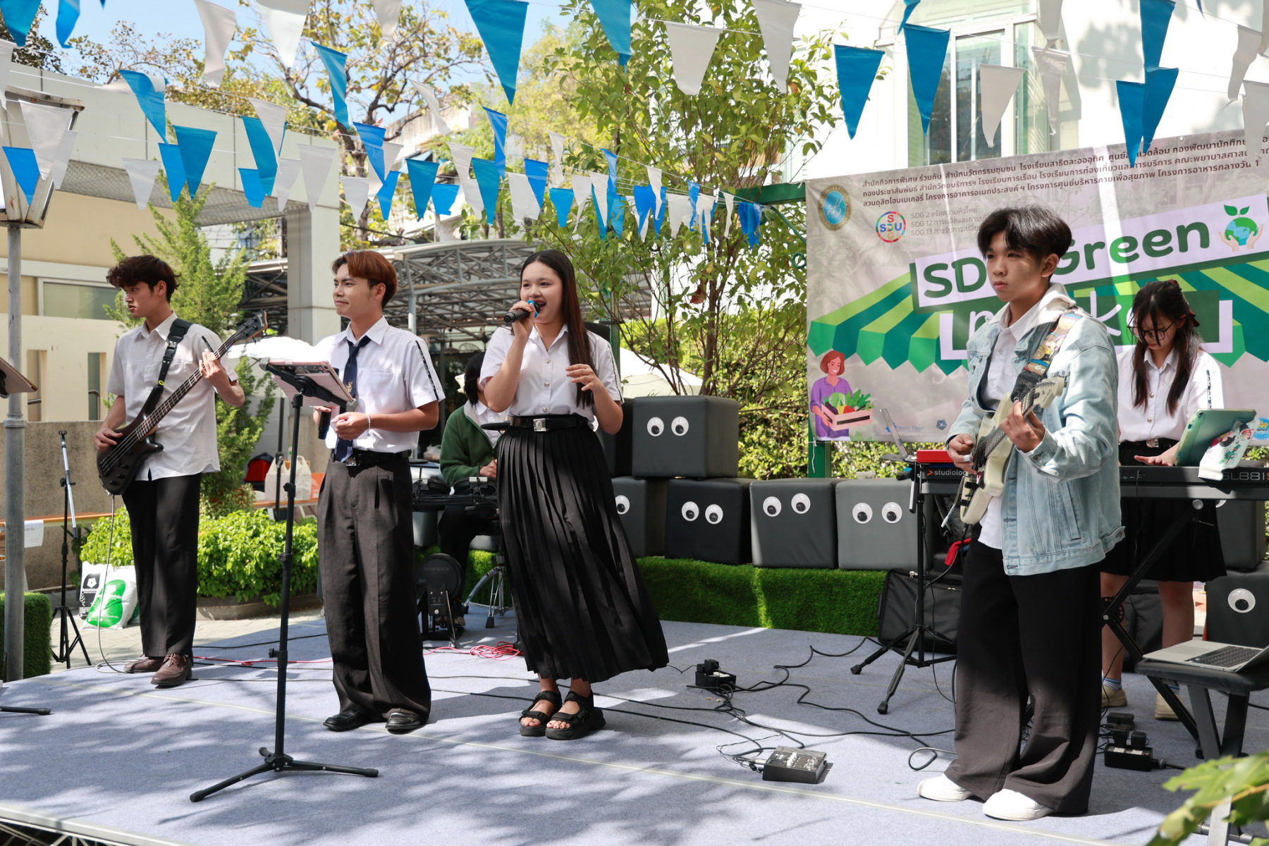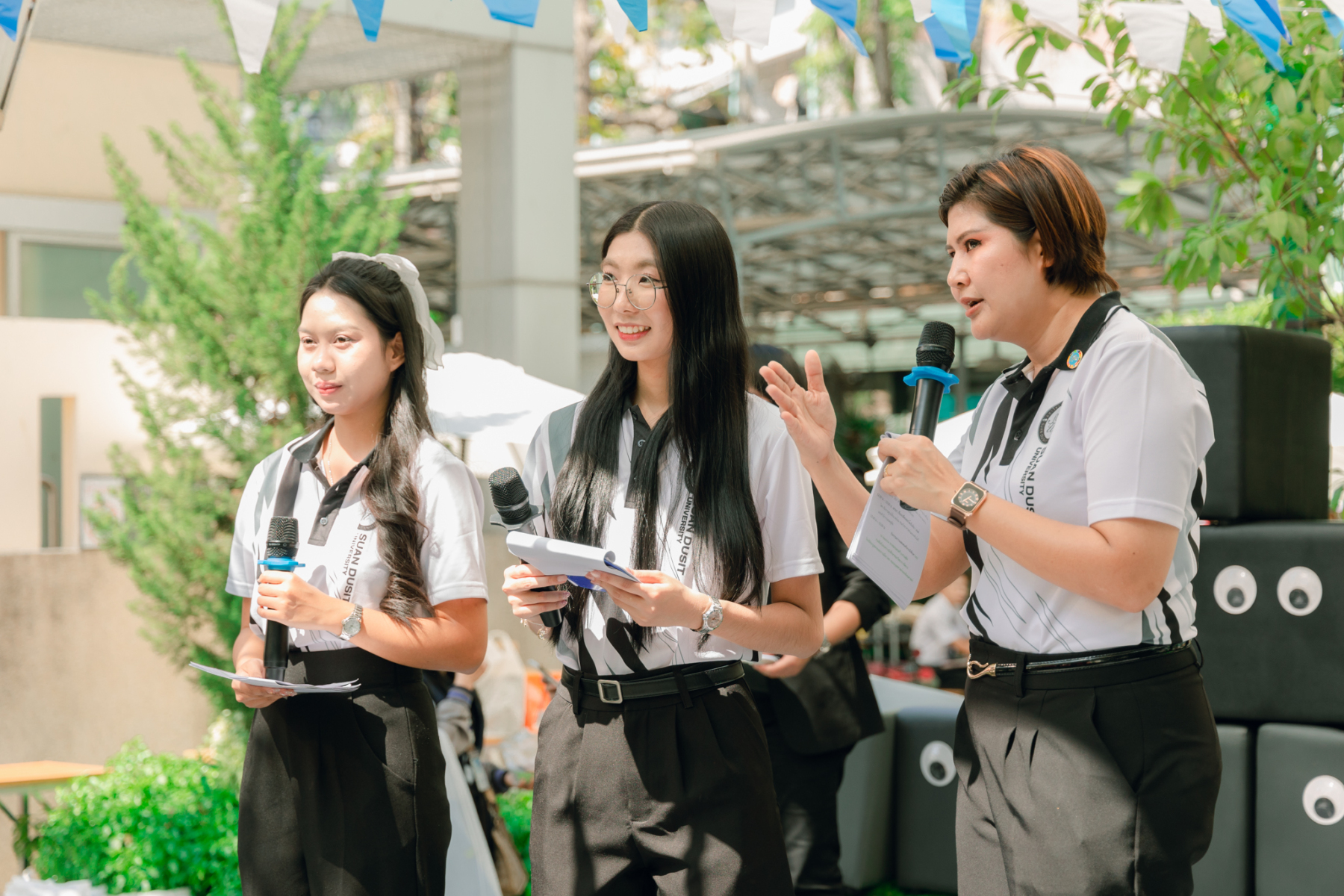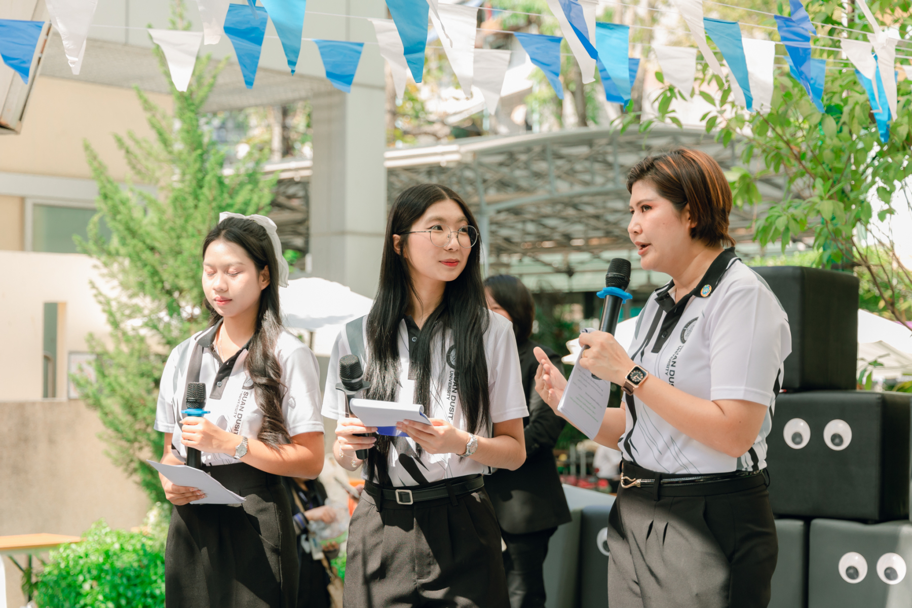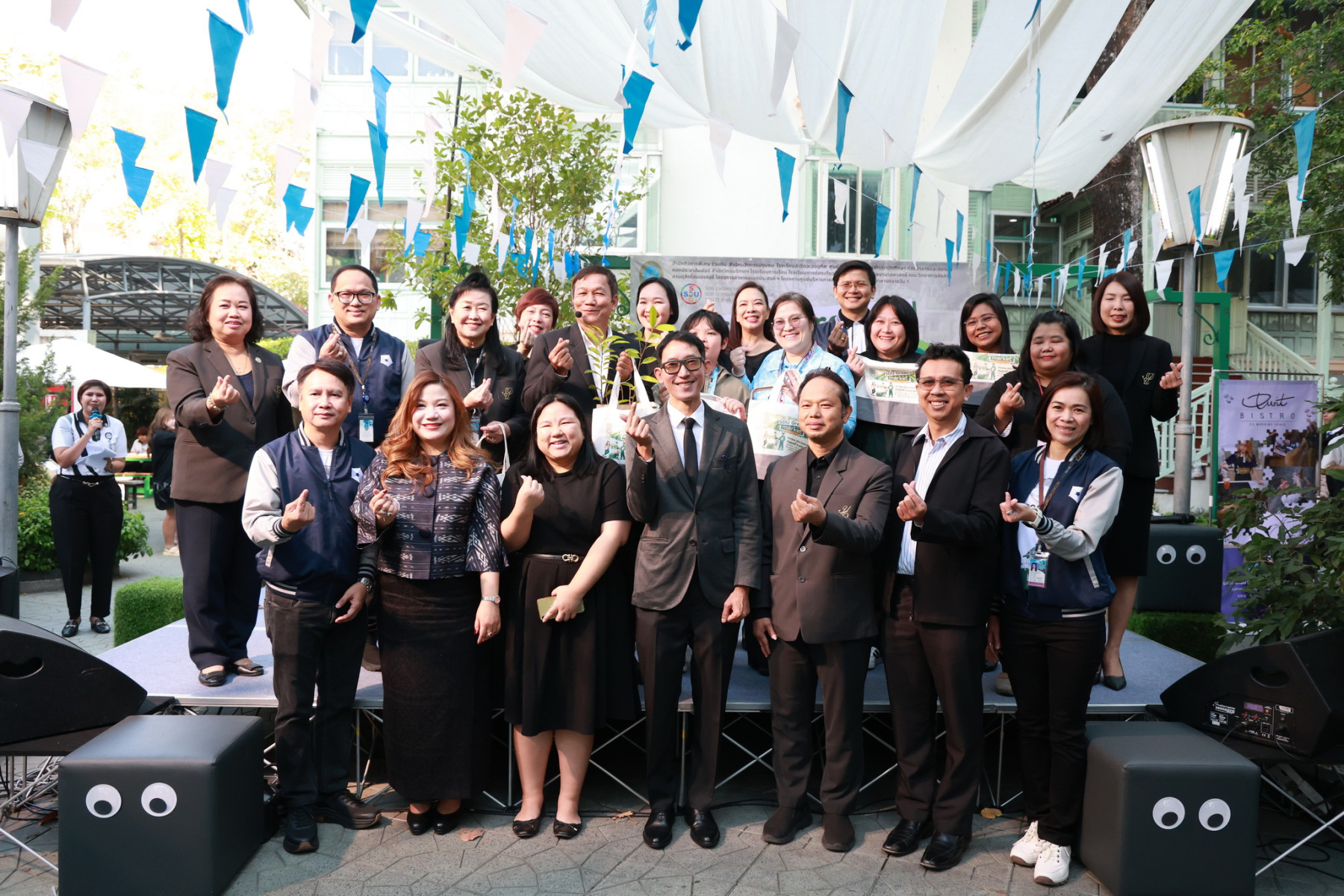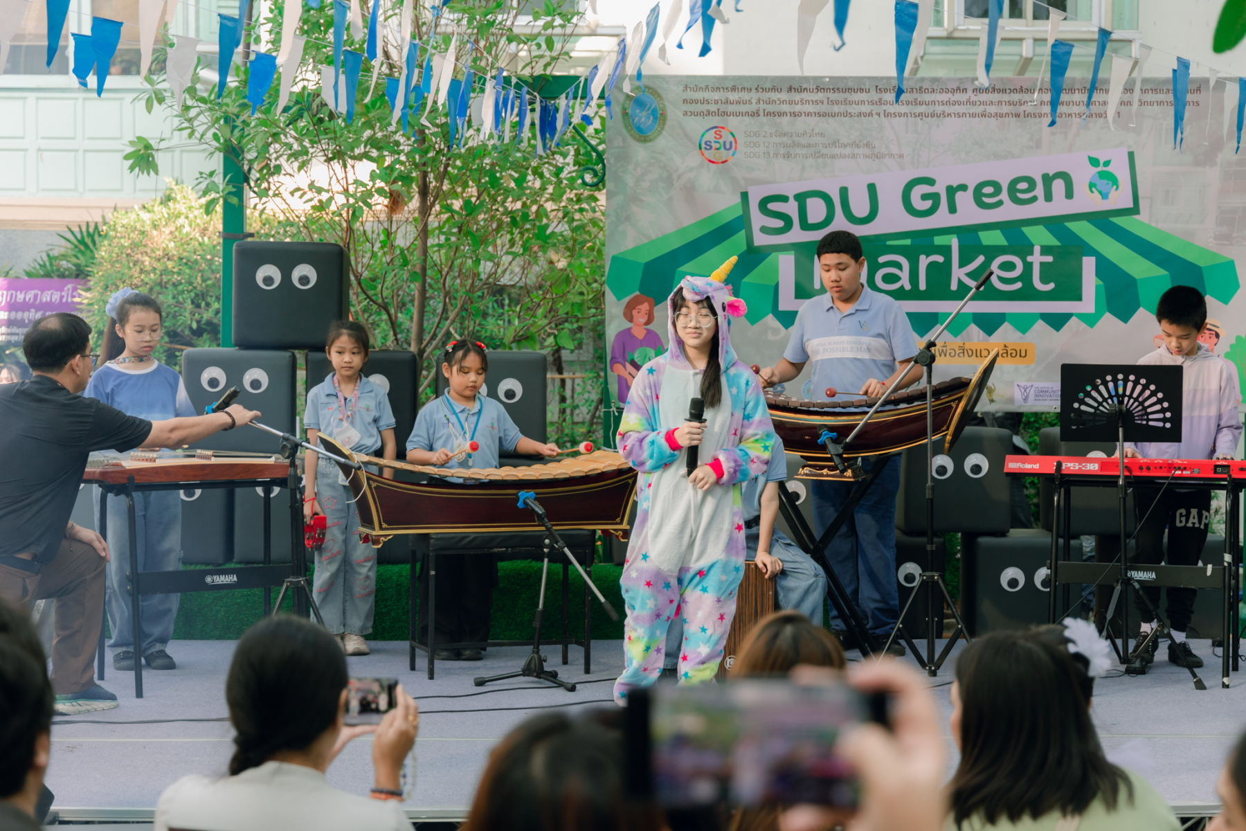 มหาวิทยาลัยสวนดุสิต โดยสำนักกิจการพิเศษ ร่วมกับสำนักนวัตกรรมชุมชน และโรงเรียนสาธิตละอออุทิศ ผนึกกำลังจัดโครงการ “SDU Green Market : ตลาดนัดสุขภาพเพื่อสิ่งแวดล้อมอย่างยั่งยืน” เมื่อวันศุกร์ที่ 9 มกราคม 2569 ณ ลานกิจกรรมสวนดุสิตโพล เพื่อสร้างต้นแบบตลาดนัดสุขภาพและส่งเสริมความร่วมมือระหว่างหน่วยงานภายในสู่เครือข่ายชุมชนอย่างเป็นรูปธรรม ภายในงานได้รับเกียรติจาก ดร.สวงค์ บุญปลูก รองอธิการบดีฝ่ายเทคโนโลยีและสารสนเทศ มหาวิทยาลัยสวนดุสิต เป็นประธานในพิธีเปิด ดร.สุทัน มุมแดง ผู้อำนวยการสำนักกิจการพิเศษ กล่าวรายงาน โดย ดร.วรานี เวสสุนทรเทพ รองอธิการบดีฝ่ายวิทยาเขตสุพรรณบุรี พร้อมด้วย ผู้อำนวยการสถาบัน สำนัก โรงเรียน คณบดี ร่วมเป็นเกียรติในพิธีเปิด โครงการ “SDU Green Market : ตลาดนัดสุขภาพเพื่อสิ่งแวดล้อมอย่างยั่งยืน” จำหน่ายสินค้าเพื่อสุขภาพและผลิตภัณฑ์ชุมชน ได้รับความสนใจจากอาจารย์ บุคลากร และนักศึกษาเข้าร่วมงาน นอกจากนี้ยังมีกิจกรรมต่าง ๆ ดังนี้การแสดงศิลปวัฒนธรรมและนวัตกรรมสร้างสรรค์ การแสดงจากนักเรียนโรงเรียนสาธิตละอออุทิศรวมกว่า 9 ชุดการแสดง อาทิ บัลเล่ต์เพลงพระราชนิพนธ์ เซิ้งส้มตำ และ Kids dance on stage รวมถึงการแสดงดนตรีจากนักศึกษา มหาวิทยาลัยสวนดุสิต เวทีเสวนาแลกเปลี่ยนเรียนรู้ การเสวนาในหัวข้อ “กินอย่างไรให้โลกไม่ร้อน” รวมถึงกิจกรรมเสวนา “เปลี่ยนขยะให้เป็นเงิน” โดยคณะวิทยาศาสตร์และเทคโนโลยี ร่วมกับสำนักงานเขตดุสิต