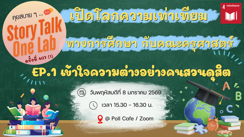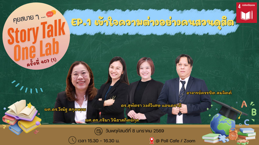มหาวิทยาลัยสวนดุสิต วิทยาเขตสุพรรณบุรี เข้าร่วมกิจกรรม คุยสบายๆ … Life สาระ ครั้งที่ 407(1) ประจำเดือนมกราคม Concept: “เปิดโลกความเท่าเทียมทางการศึกษา” กับคณะครุศาสตร์ มหาวิทยาลัยสวนดุสิต EP.1 “เข้าใจความต่างอย่างคนสวนดุสิต” พบกับ ผู้ช่วยศาสตราจารย์ ดร.วีณัฐ สกุลหอม : คณบดีคณะครุศาสตร์, ผู้ช่วยศาสตราจารย์ ดร.ภริมา วินิธาสถิตย์กุล : หัวหน้าศูนย์การศึกษาพิเศษ, ดร.สุพัตรา วงศ์วิเศษ แอนดราดี : รองหัวหน้าศูนย์การศึกษาพิเศษ, อาจารย์ครรชิต สมจิตต์ : อาจารย์ศูนย์การศึกษาพิเศษ โดยวิทยาเขตสุพรรณบุรี เข้าร่วมกิจกรรมผ่านระบบ Online โปรแกรม Zoom Meeting ในวันพฤหัสบดีที่ 8 มกราคม 2569 เวลา 15.30-16.30 น. ณ อาคารศูนย์การเรียนรู้ระบบใหม่โดยใช้เทคโนโลยีเป็นสื่อ (SDU Library) ชั้น 1 โซนกลาง มหาวิทยาลัยสวนดุสิต วิทยาเขตสุพรรณบุรี