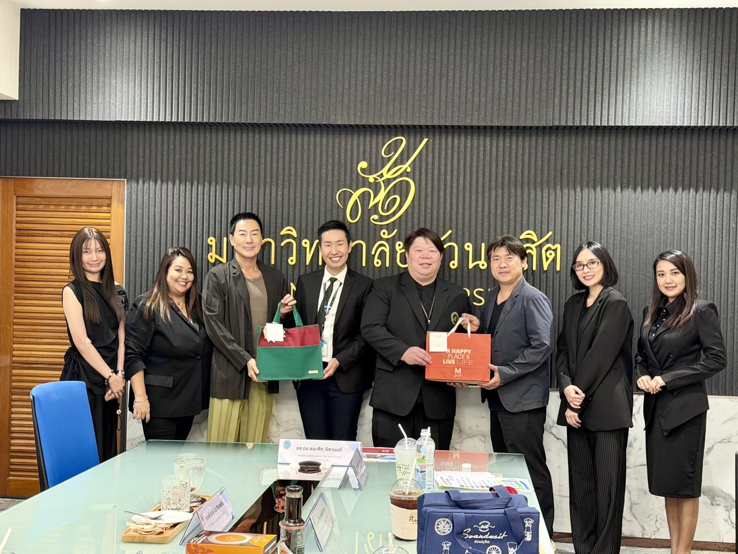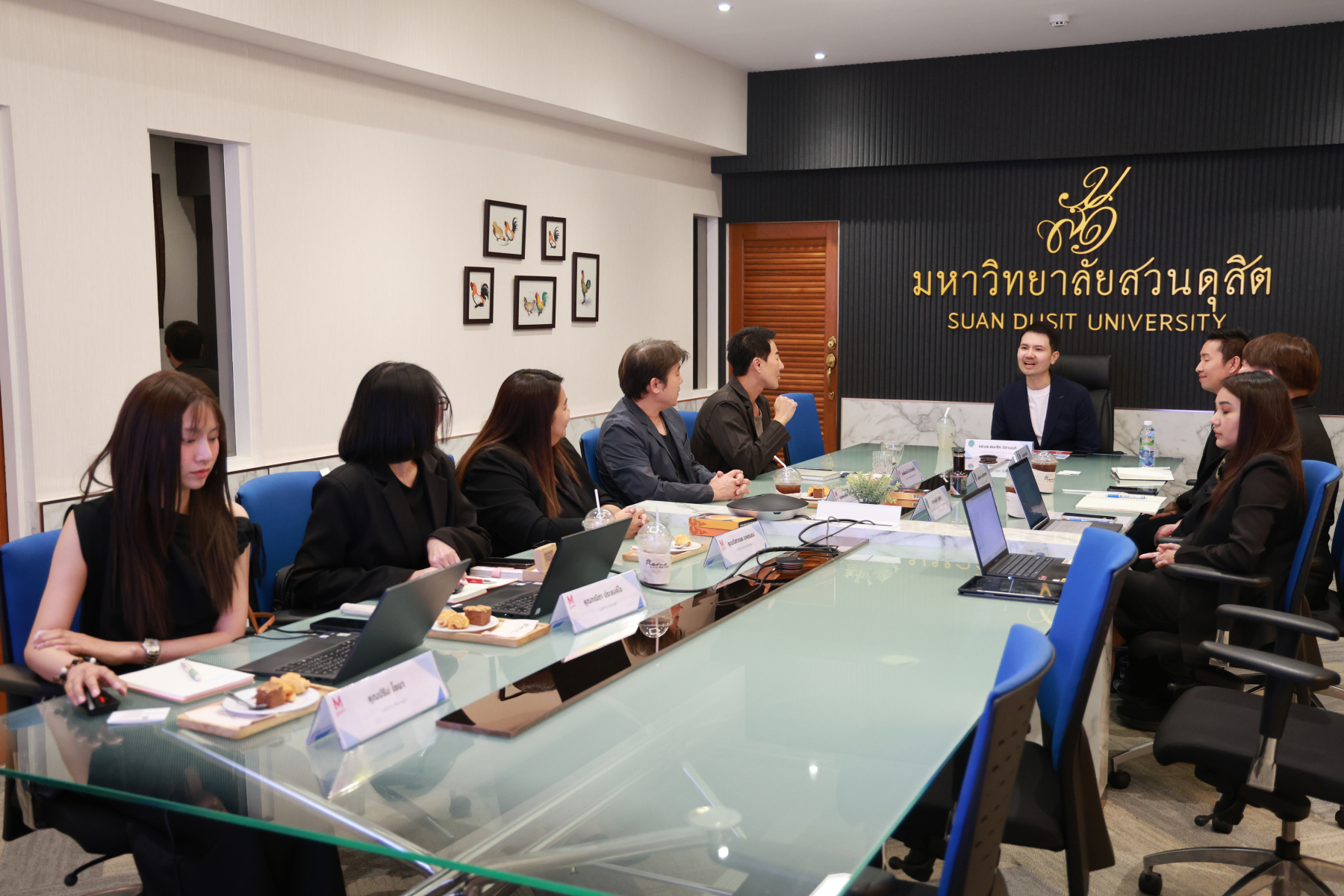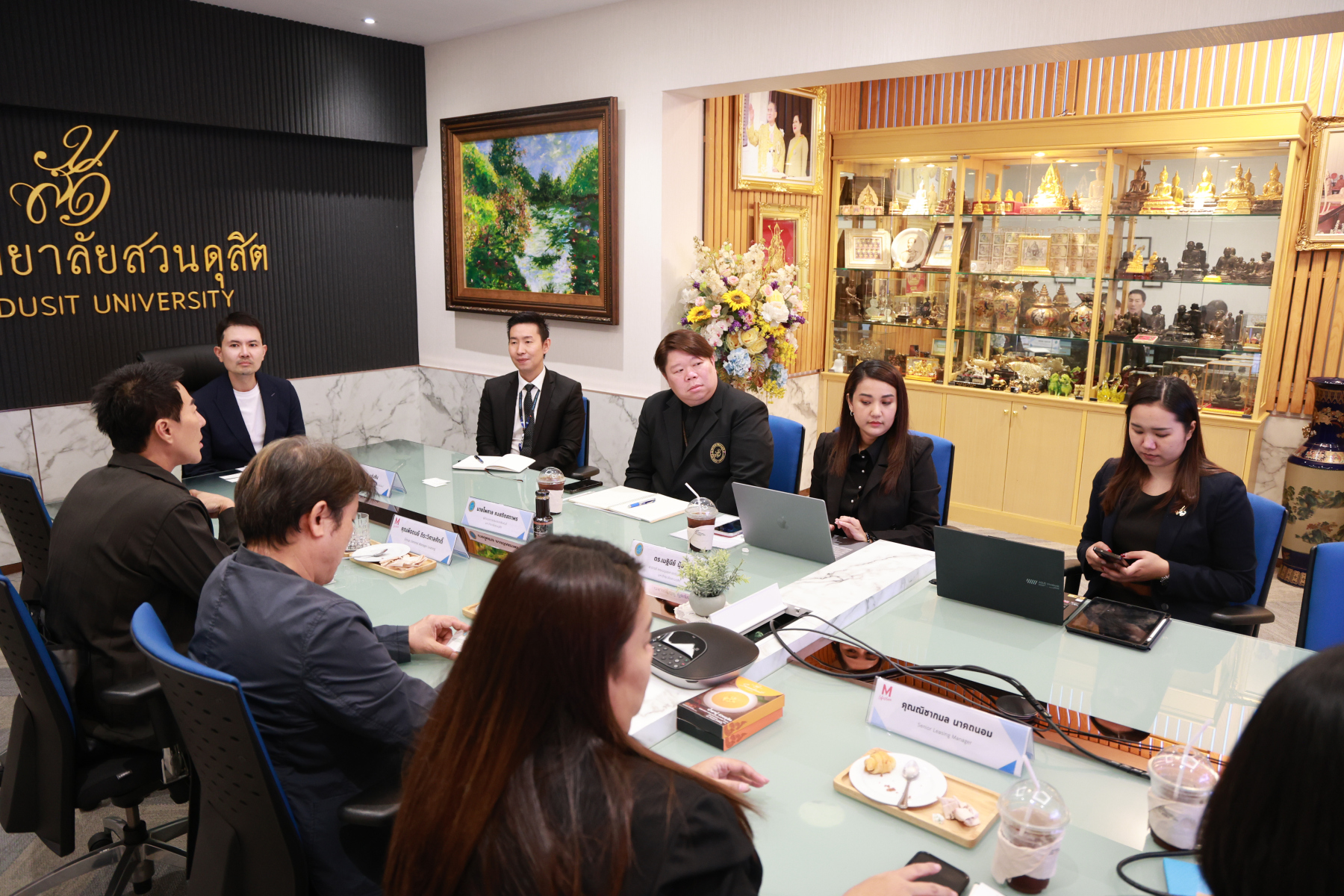 รศ.ดร.ชนะศึก นิชานนท์ รองอธิการบดีฝ่ายบริหาร วิจัยและนวัตกรรม มหาวิทยาลัยสวนดุสิต พร้อมด้วย อาจารย์ ดร.อนุชา แข่งขัน ผู้ช่วยอธิการบดีฝ่ายการพัฒนาองค์กรและพันธกิจสัมพันธ์ ประชุมหารือเพื่อสร้างเครือข่ายความร่วมมือกับผู้บริหารเดอะมอลล์ กรุ๊ป นำโดยคุณพีรดนย์ ถิระวิศาลศักดิ์ และคุณพงษ์ศักดิ์ โอฬารสุวรรณชัย Group General Manager Leasing & Property Management THE MALL GROUP CO., LTD. ณ ห้องประชุมคาเฟ่บายโฮม มหาวิทยาลัยสวนดุสิต วันจันทร์ที่ 12 มกราคม 2569