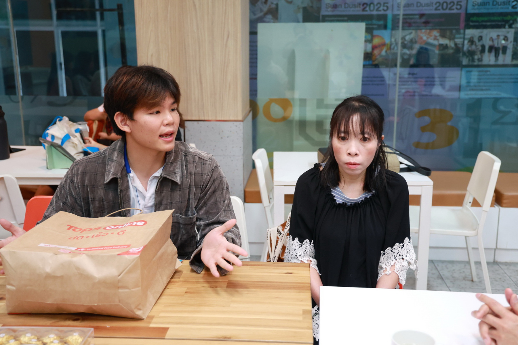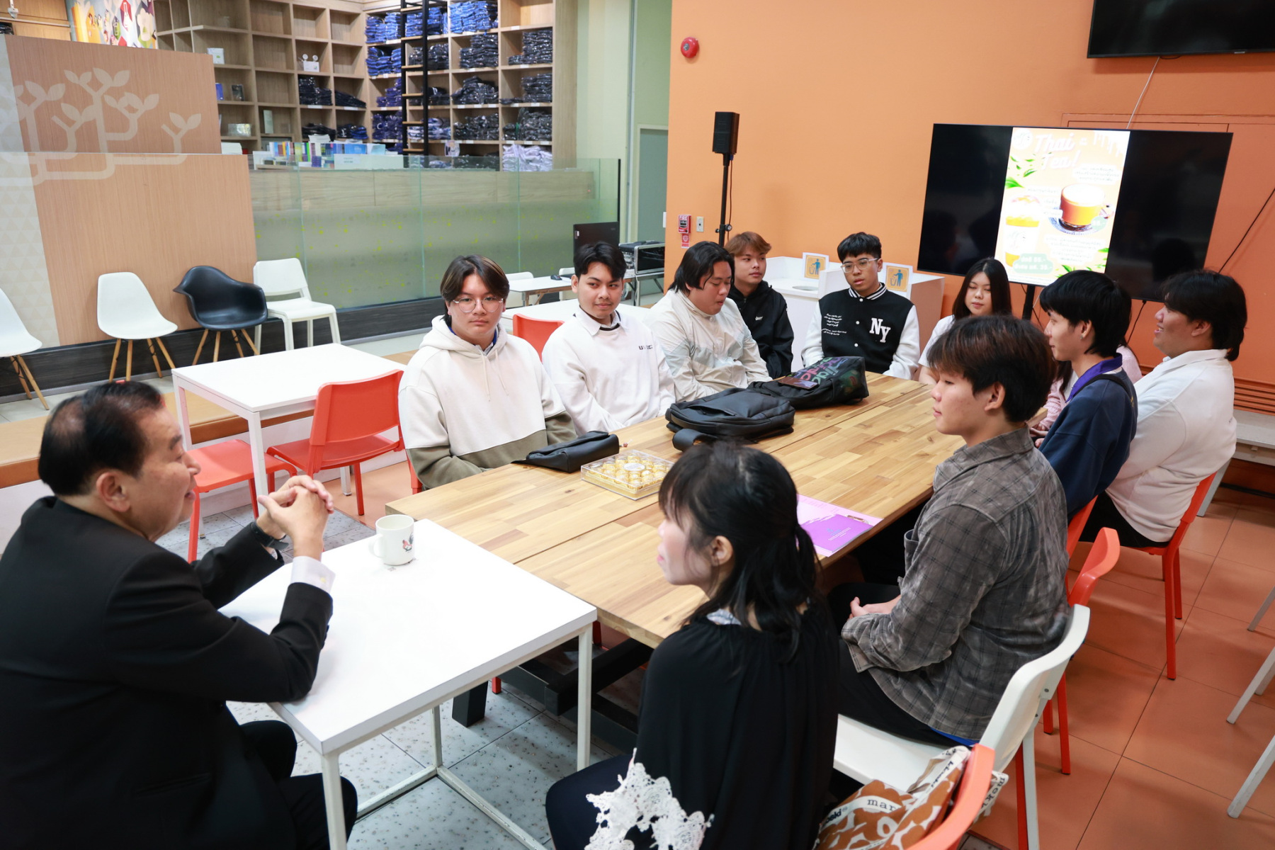 ผศ.ธัญชนก บุญเจือ หัวหน้าโครงการ พร้อมทั้งนักศึกษาหลักสูตรสหวิทยาการการท่องเที่ยว โรงเรียนการท่องเที่ยวและการบริการ ดังรายชื่อต่อไปนี้ น.ส.ฐิตาภัทร อ้อมงาม, นายจิราพัชร ซื่อสกุลไชย, นายเจษฎาภรณ์ เงินถม, นายรชต ละออง, นายรชต ชัยจิต, นายภูริภัทร จำนงค์จิตร์, นายณัฐยศ อุบลสมุทร, น.ส.สุภาพร อินทร์แสน และนักศึกษาหลักสูตรคหกรรมศาสตร์ โรงเรียนการเรือน ดังรายชื่อต่อไปนี้ นายนพ ไม่มีนามสกุล, นายวีรภัทร์ เภาทอง ได้เข้าพบ รองศาสตราจารย์ ดร.สุขุม เฉลยทรัพย์ ประธานที่ปรึกษาอธิการบดี เพื่อรายงานผลการดำเนินการโครงการยุวชนอาสาออกแบบกิจกรรมพัฒนาทักษะใหม่ให้กับกลุ่มผู้สูงอายุในชุมชนพหุวัฒนธรรมที่เป็นการบูรณาการองค์ความรู้ของหลักสูตรสหวิทยาการการท่องเที่ยวกับหลักสูตรคหกรรมศาสตร์ที่มีอยู่ในมหาวิทยาลัยสวนดุสิต ในการออกแบบกิจกรรมพัฒนาทักษะใหม่ให้กับกลุ่มผู้อาวุโสชุมชนบ้านญวนสามเสน โดยมีเป้าหมายพัฒนาชุมชนและสร้างรายได้ให้กับกลุ่มผู้สูงอายุเพื่อพึ่งพาตนเองได้อย่างยั่งยืน การที่ Project Outcome บรรลุเป้าหมายหมายถึงผู้อาวุโสได้รับโอกาสพัฒนาทักษะและความรู้เพื่อส่งเสริมการเรียนรู้ตลอดชีวิต(Lifelong learning) ดังนี้