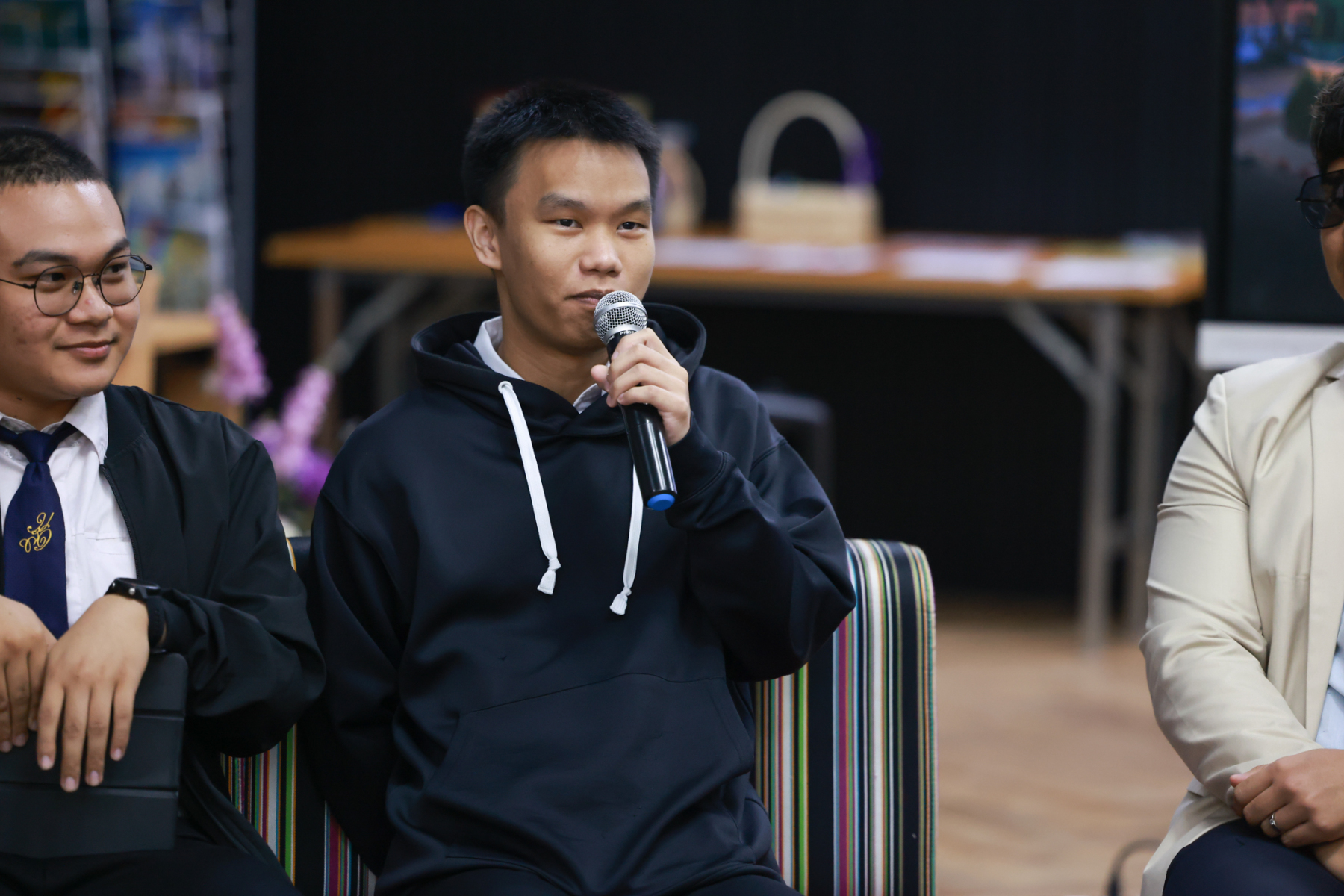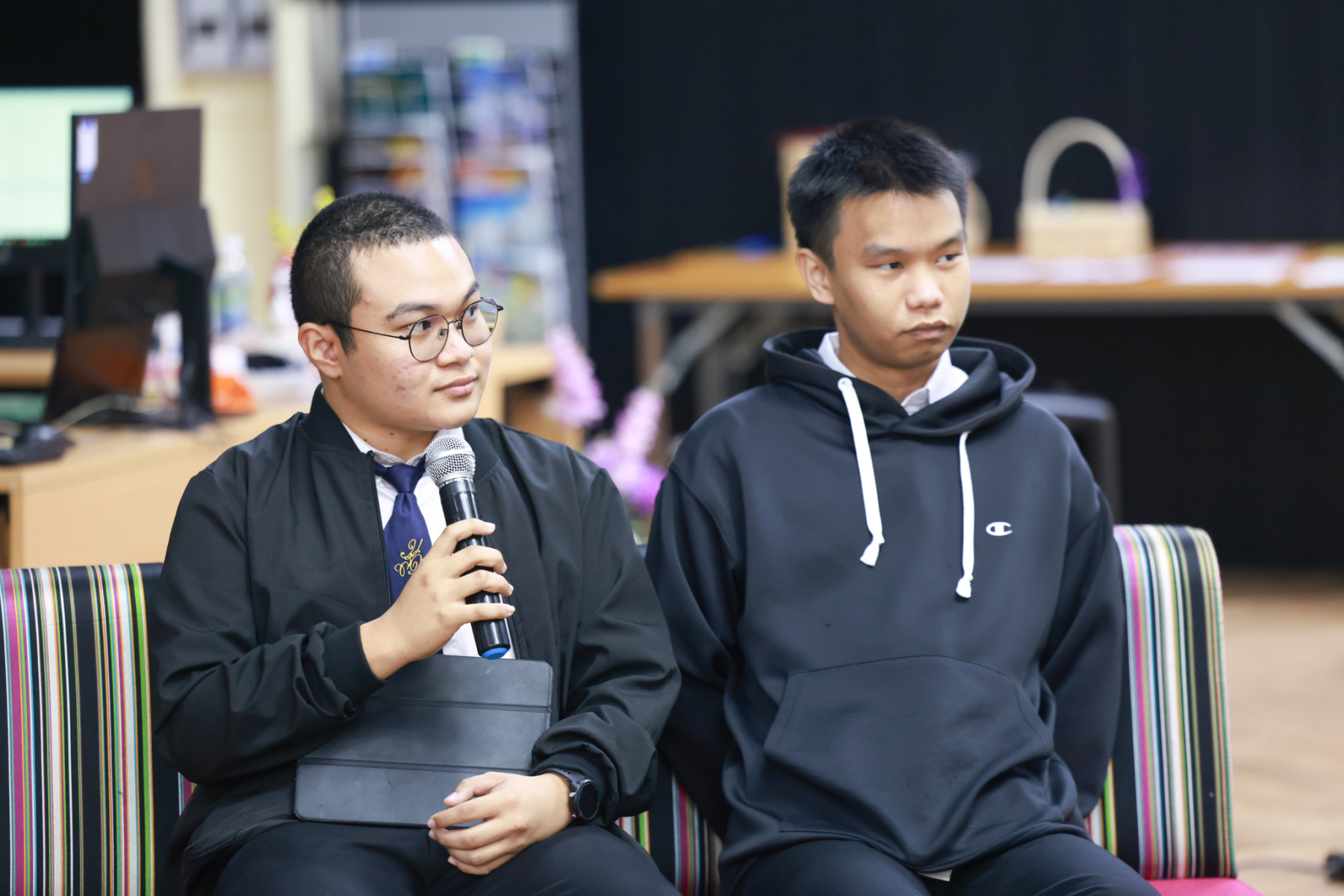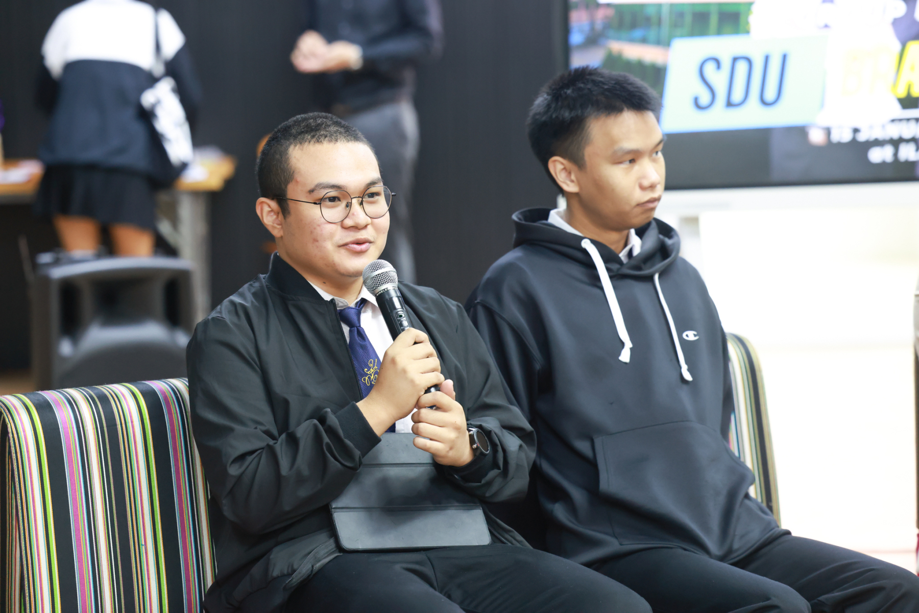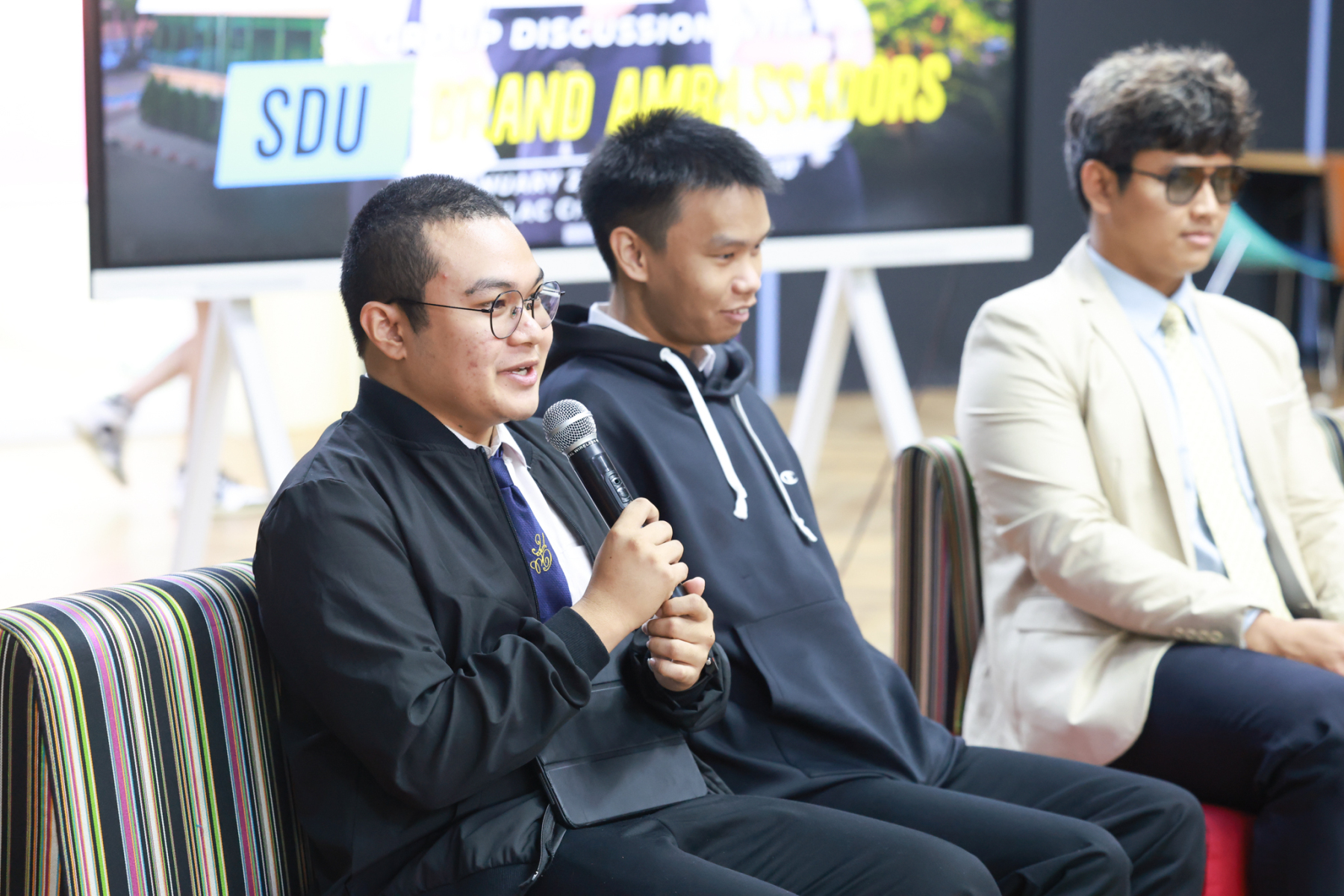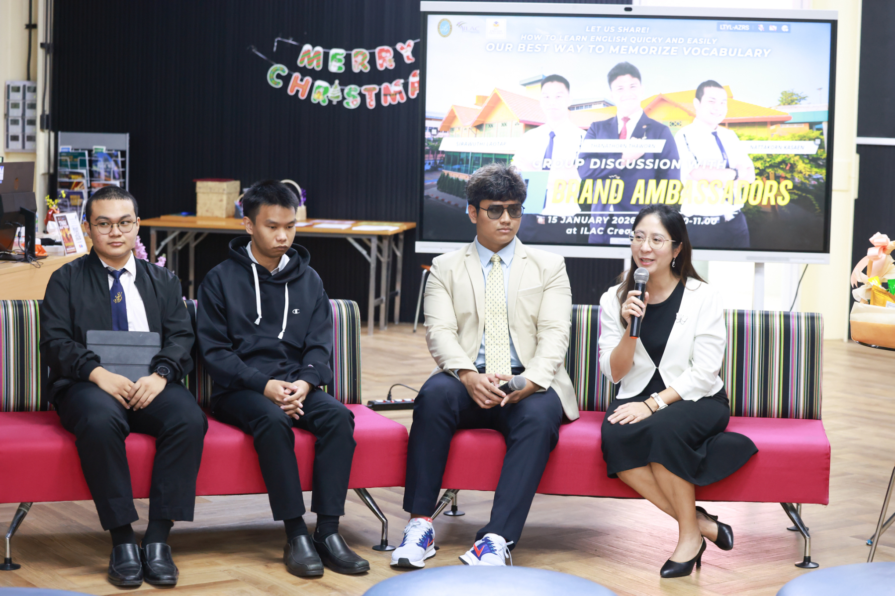 สถาบันภาษา ศิลปะและวัฒนธรรม มหาวิทยาลัยสวนดุสิต จัดกิจกรรม Group Discussion with SDU Brand Ambassador  (ช่วงเช้า) โดยมี ผู้ช่วยศาสตราจารย์ ดร.ณัฐพรโอวาทนุพัฒน์ รองผู้อำนวยการสถาบันภาษา ศิลปะและวัฒนธรรม กล่าวเปิดกิจกรรม ร่วมแลกเปลี่ยน โดย นายธนธรณ์ ถาวร นายสิรวุฒิ เหล่าทัพ และนายณัฏฐกร กาแสน นักศึกษามหาวิทยาลัยสวนดุสิต SDU Brand Ambassador เมื่อวันพฤหัสบดีที่ 15 มกราคม 2569 ห้อง ILAC Creative Space อาคาร 1 ชั้น 2