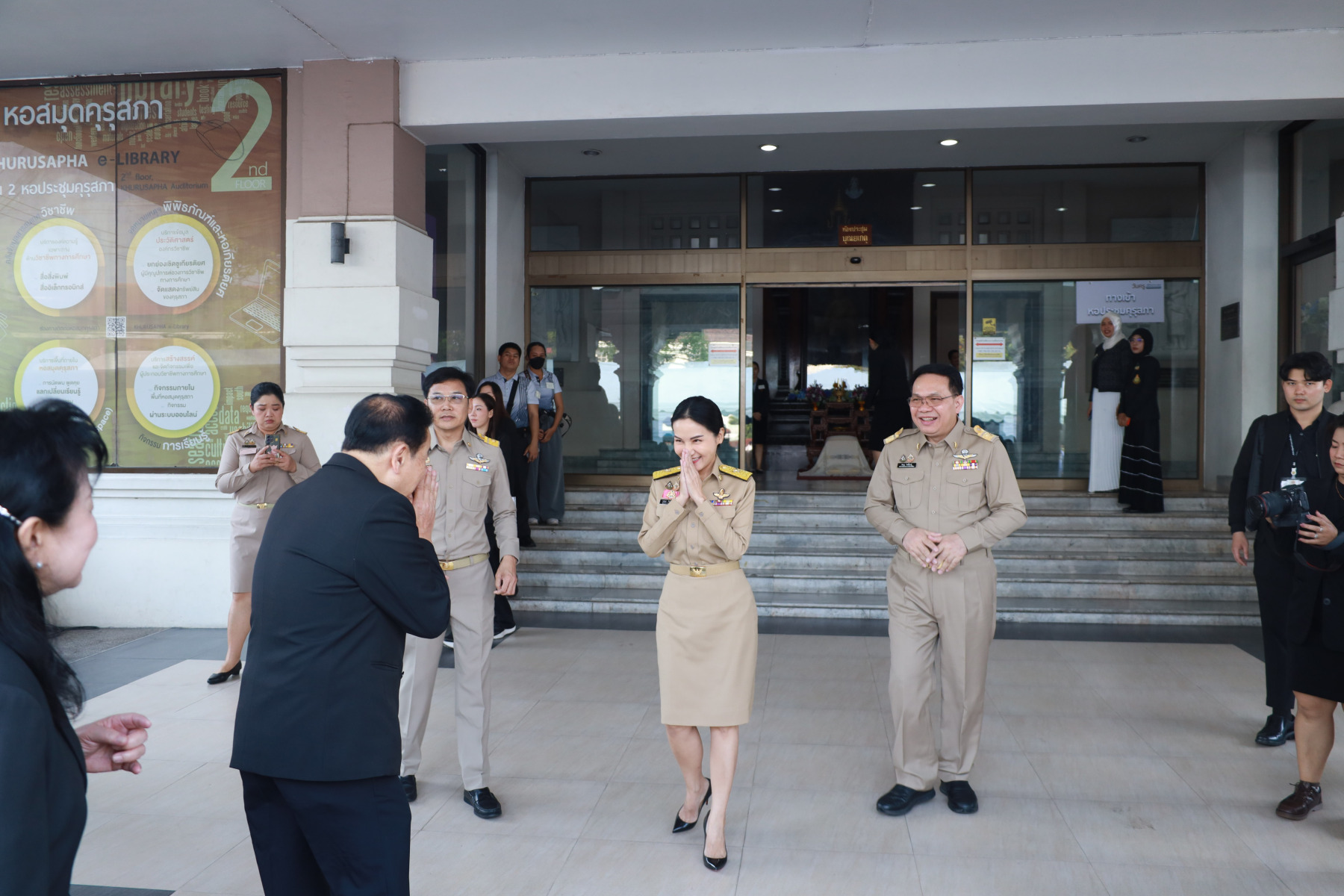 รศ.ดร.สุขุม เฉลยทรัพย์ ประธานที่ปรึกษาอธิการบดี มหาวิทยาลัยสวนดุสิต (ประธานคณะกรรมการประชาสัมพันธ์งานวันครู) พร้อมด้วย ดร.วรานี เวสสุนทรเทพ รองอธิการบดีฝ่ายวิทยาเขตสุพรรณบุรี ผู้บริหาร อาจารย์ และบุคลากรมหาวิทยาลัยสวนดุสิต ร่วมงานวันครู ครั้งที่ 70 ประจำปี 2569 จัดโดยสำนักงานเลขาธิการคุรุสภา กระทรวงศึกษาธิการ วันศุกร์ที่ 16 ธันวคม 2569 ณ หอประชุมคุรุสภา