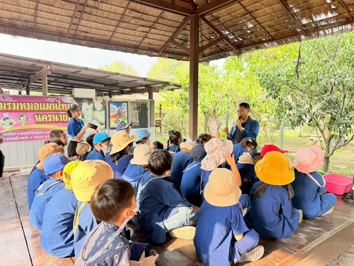เมื่อคณะเดินทางถึงศูนย์การเรียนรู้ภูกระเหรี่ยง จังหวัดนครนายก ได้รับการต้อนรับอย่างอบอุ่นจากวิทยากรประจำศูนย์ ซึ่งได้กล่าวต้อนรับและแนะนำภาพรวมของแหล่งเรียนรู้ จากนั้นนักเรียนได้ร่วมเดินชมฐานการเรียนรู้และเข้าร่วมกิจกรรมด้านการเกษตร อาทิ การดำนา การปลูกข้าว และการเรียนรู้วิถีชีวิตของเกษตรกร    ก่อนจบกิจกรรมได้ร่วมกันสรุปและแลกเปลี่ยนประสบการณ์จากกิจกรรมการเรียนรู้อย่างสร้างสรรค์