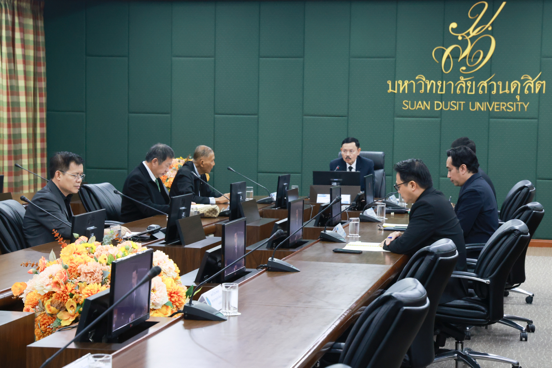 นายณรงค์ศักดิ์ ภูมิศรีสอาด กรรมการสภามหาวิทยาลัยสวนดุสิต ผู้ทรงคุณวุฒิ เป็นประธานการประชุมคณะกรรมการบริหารความเสี่ยง ครั้งที่ 1(27)/2569 โดยมีวาระเพื่อพิจารณา ผลการดำเนินงานตามแผนบริหารความเสี่ยง มหาวิทยาลัยสวนดุสิต ประจำปีงบประมาณ พ.ศ. 2569 ความเสี่ยงด้านการเงิน (Financial Risk: F) ประเด็นความเสี่ยง : รายได้ไม่เป็นไปตามแผนการจัดหารายได้ ผลการดำเนินงานตามแผนจัดหารายได้ ประจำปีงบประมาณ พ.ศ. 2568 (ไตรมาส 1) ของหน่วยงานอิสระ ประกอบด้วย สวนดุสิตโฮมเบเกอรี่ สวนดุสิตโพล ศูนย์บริการสื่อและสิ่งพิมพ์กราฟฟิคไซท์ ศูนย์พัฒนาทุนมนุษย์  ศูนย์บริการทดสอบทางวิชาการ และโครงการปฏิบัติการอาหารแปรรูป เมื่อวันพุธที่ 21 มกราคม พ.ศ. 2569  ณ ห้องประชุมลำพอง 2 มหาวิทยาลัยสวนดุสิต