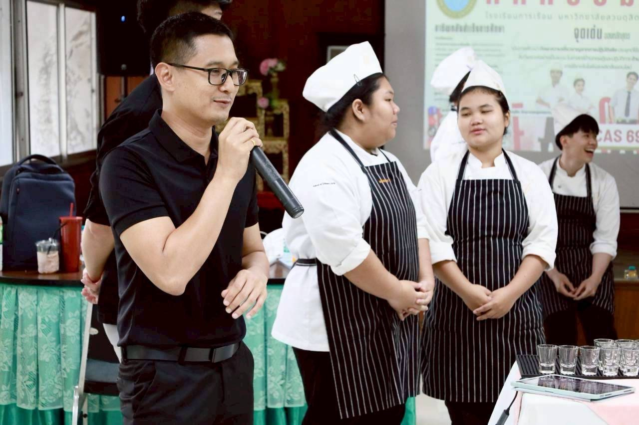 หลักสูตรศิลปศาสตรบัณฑิต สาขาวิชาคหกรรมศาสตร์ โรงเรียนการเรือน มหาวิทยาลัยสวนดุสิต วิทยาเขตสุพรรณบุรี จัดกิจกรรมสอนการทำเครื่องดื่ม และแนะแนวการศึกษาต่อ ให้แก่นักเรียนระดับมัธยมศึกษาตอนปลาย โรงเรียนบางปลาม้า “สูงสุมารผดุงวิทย์“ และ โรงเรียนหรรษาสุจิตวิทยา 2 ภายใต้โครงการ Home Economics Professional Roadshow : เชื่อมมัธยมสู่มาตรฐานคหกรรมมืออาชีพ เมื่อวันอังคารที่ 20 มกราคม 2569 เวลา 10.20-11.20 น. ณ โรงเรียนบางปลาม้า “สูงสุมารผดุงวิทย์“ และ เวลา 14.40-15.40 น. โรงเรียนหรรษาสุจิตวิทยา 2 สุพรรณบุรี