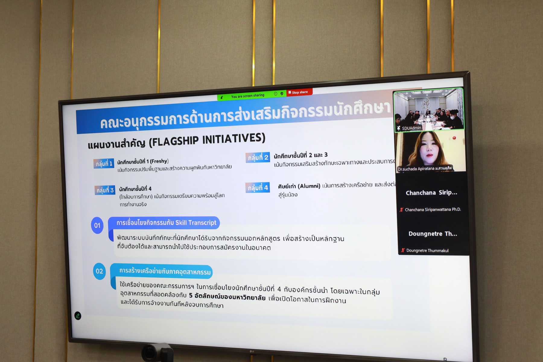 สำนักงานเลขานุการสภามหาวิทยาลัย จัดประชุมอนุกรรมการทั้ง 5 คณะ(อนุกรรมการภายใน) ของคณะกรรมการส่งเสรกิจการมหาวิทยาลัยเพื่อรับทราบแนวทางการดำเนินงานของอนุกรรมการ โดยมี ผศ.ดร.ชนะศึก นิชานนท์ เป็นประธานในการประชุม วันที่ 22 มกราคม 2569 ณ ห้องประชุมลำพอง 3 มหาวิทยาลัยสวนดุสิต