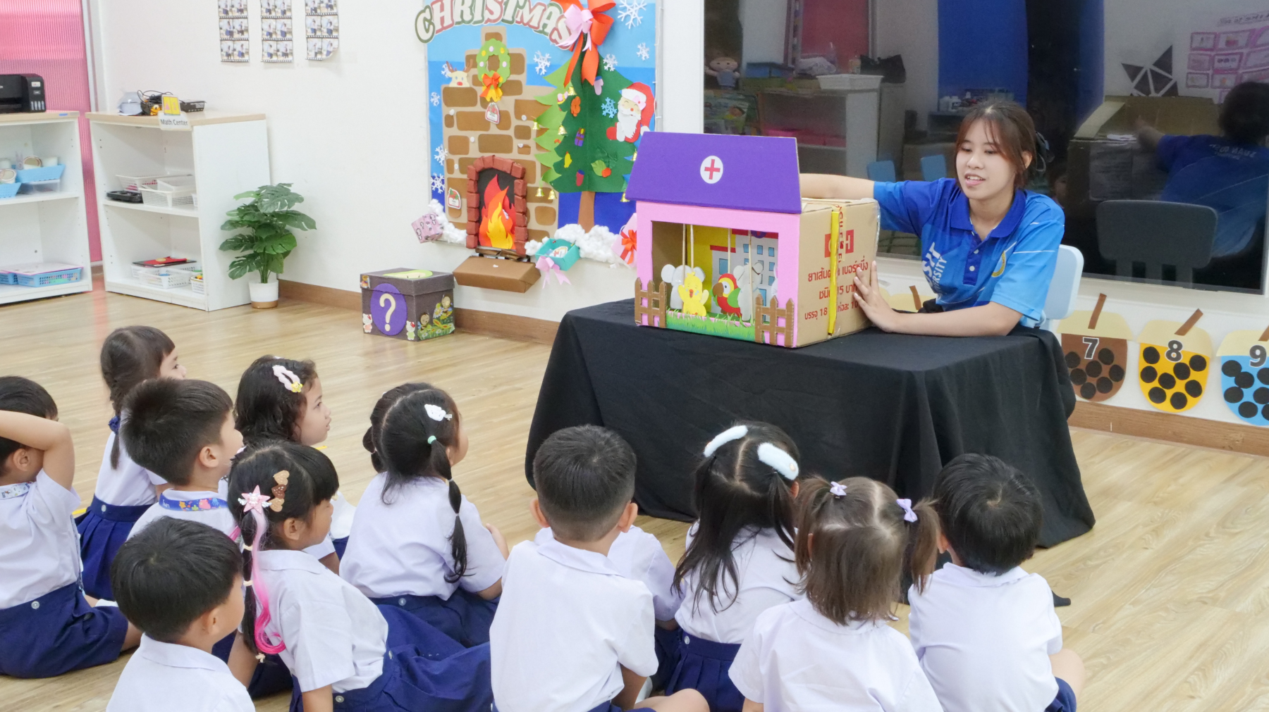 มหาวิทยาลัยสวนดุสิต ศูนย์การศึกษา นครนายก หลักสูตรศึกษาศาสตรบัณฑิต สาขาวิชาการศึกษาปฐมวัย จัดกิจกรรมความร่วมมือรายวิชาแลกเปลี่ยนเรียนรู้การจัดการเรียนการสอนร่วมกับโรงเรียนสาธิตละอออุทิศ นำโดย อาจารย์ฉัตรทราวดี บุญถนอม อาจารย์ผู้สอนรายวิชา ภาษาและการรู้หนังสือสำหรับเด็กปฐมวัย พานักศึกษาชั้นปีที่ 1 เข้าเล่านิทานประกอบสื่อเพื่อส่งเสริมการเรียนรู้ทางภาษา ให้เด็กระดับชั้นบ้านสาธิต อนุบาล 3 ในวันที่ 19 มกราคม 2569 เวลา 09.00 – 09.45 น. ณ โรงเรียนสาธิตละอออุทิศ ศูนย์การศึกษา นครนายก