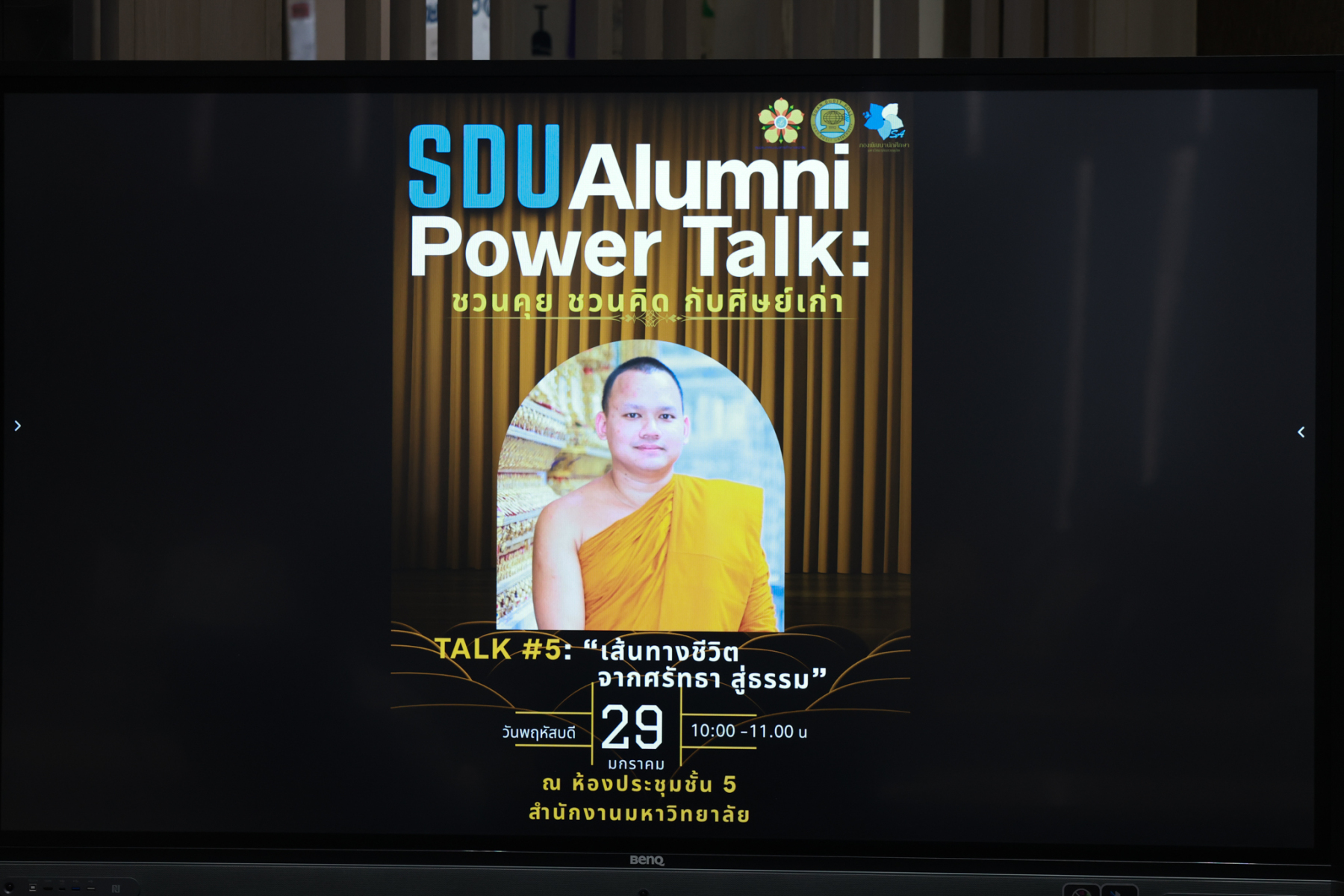 มหาวิทยาลัยสวนดุสิต โดย ศูนย์สนเทศแนะแนวการศึกษาและอาชีพ ร่วมกับ สวนดุสิตโพล และ กองพัฒนานักศึกษา จัดกิจกรรม SDU Alumni Power Talk #5 : ชวนคุยชวนคิดกับศิษย์เก่า ตอน “เส้นทางชีวิต จากศรัทธาสู่ธรรม” เพื่อเปิดพื้นที่การเรียนรู้ แลกเปลี่ยนประสบการณ์ชีวิต และสร้างแรงบันดาลใจให้แก่นักศึกษา บุคลากร และผู้สนใจ