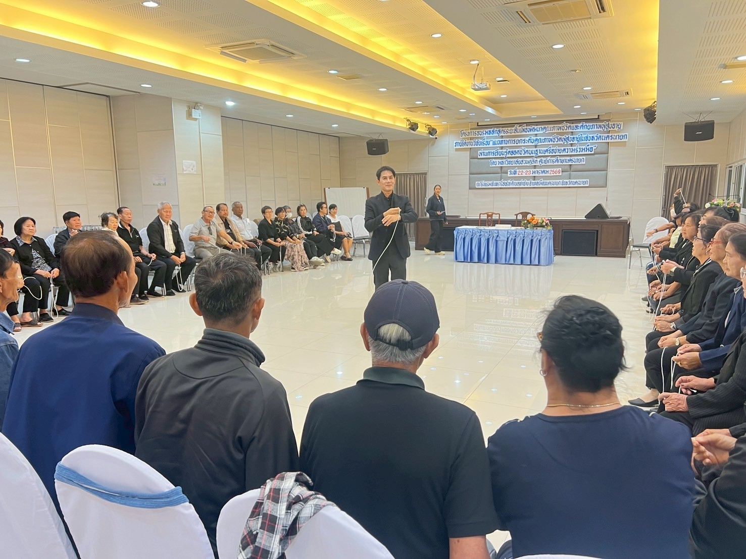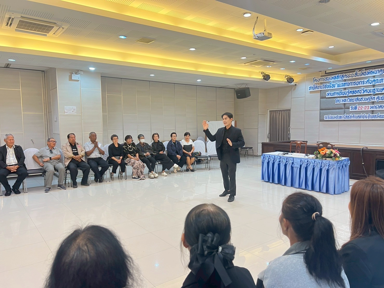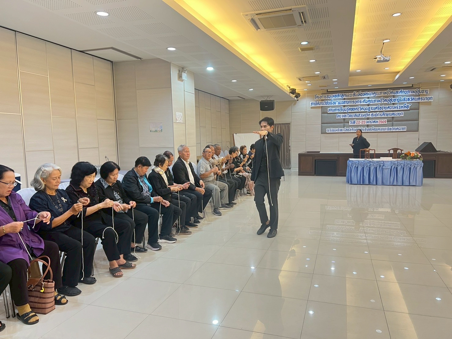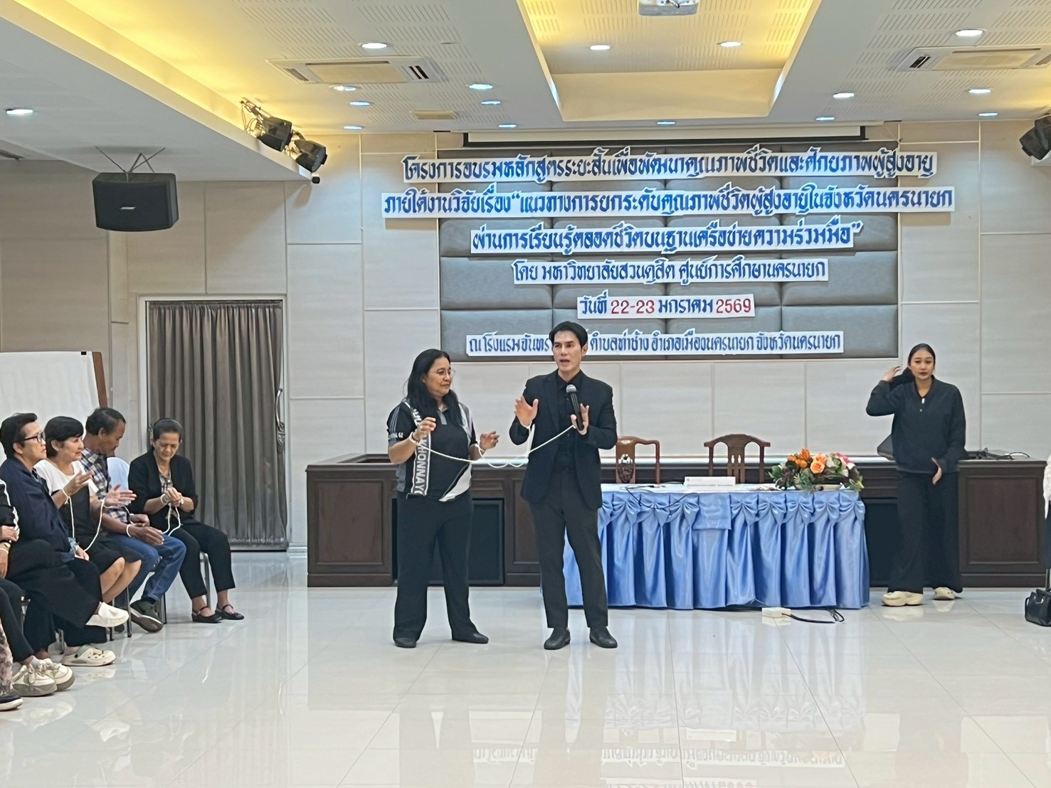 มหาวิทยาลัยสวนดุสิต ศูนย์การศึกษา นครนายก จัดอบรมหลักสูตรระยะสั้น ภายใต้งานวิจัย เรื่อง “แนวทางการยกระดับคุณภาพชีวิตผู้สูงอายุในจังหวัดนครนายกผ่านการเรียนรู้ตลอดชีวิตบนฐานเครือข่ายความร่วมมือ” ภายใต้แผนงานการพัฒนากลไกและข้อเสนอเชิงนโยบายการพัฒนาการเรียนรู้ตลอดชีวิตเพื่อสร้างโอกาสและลดความเหลื่อมล้ำของคนในพื้นที่จังหวัดนครนายก  โดยมีผู้ช่วยศาสตราจารย์ ว่าที่ร้อยตรีหญิง ดร.ขวัญใจ จริยาทัศน์กร อาจารย์ประจำหลักสูตรศึกษาศาสตรบัณฑิต สาขาวิชาการศึกษาปฐมวัย เป็นหัวหน้าโครงการวิจัย  กิจกรรมการอบรมครั้งนี้ มีผู้ช่วยศาสตราจารย์ ดร.พิสิทธิ์ โสภณพงศพัฒน์ เป็นวิทยากรให้ความรู้แก่ผู้เข้าร่วมอบรมจากโรงเรียนผู้สูงอายุตำบลวังกระโจม, โรงเรียนผู้สูงอายุตำบลบางสมบูรณ์, ชมรมผู้สูงอายุบ้านเขาเพิ่ม และโรงเรียนผู้สูงอายุตำบลหนองแสง จังหวัดนครนายก ในวันที่ 23 มกราคม 2569 เวลา 09.00 – 16.00 น. ณ โรงแรมจันทรา รีสอร์ท จังหวัดนครนายก