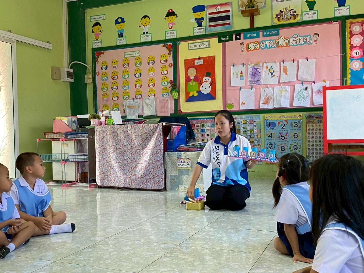 มหาวิทยาลัยสวนดุสิต ศูนย์การศึกษา นครนายก หลักสูตรศึกษาศาสตรบัณฑิต สาขาวิชาการศึกษาปฐมวัย ในรายวิชา การวิจัยและการพัฒนานวัตกรรมเพื่อพัฒนาผู้เรียน พานักศึกษาชั้นปีที่ 3 สาขาการศึกษาปฐมวัย เข้าจัดกิจกรรม “โครงการการบูรณาการการเรียนการสอนในการพัฒนาเชิงพื้นที่บนฐานเครือข่ายความร่วมมือ” เพื่อเพิ่มสมรรถนะทางวิชาการและส่งเสริมให้นักศึกษาเกิดการเรียนรู้จากการปฏิบัติจริง มุ่งเน้นผสมผสานระหว่างการเรียนรู้ทั้งในชั้นเรียนและนอกชั้นเรียน โดยมี ผู้ช่วยศาสตราจารย์ ว่าที่ร้อยตรีหญิง ดร.ขวัญใจ จริยาทัศน์กร เป็นผู้รับผิดชอบโครงการและอาจารย์ที่ปรึกษา ในวันที่ 28 มกราคม 2569 เวลา 08.30 – 12.00 น. ณ โรงเรียนวัดโพธิ์ปากพลี จังหวัดนครนายก