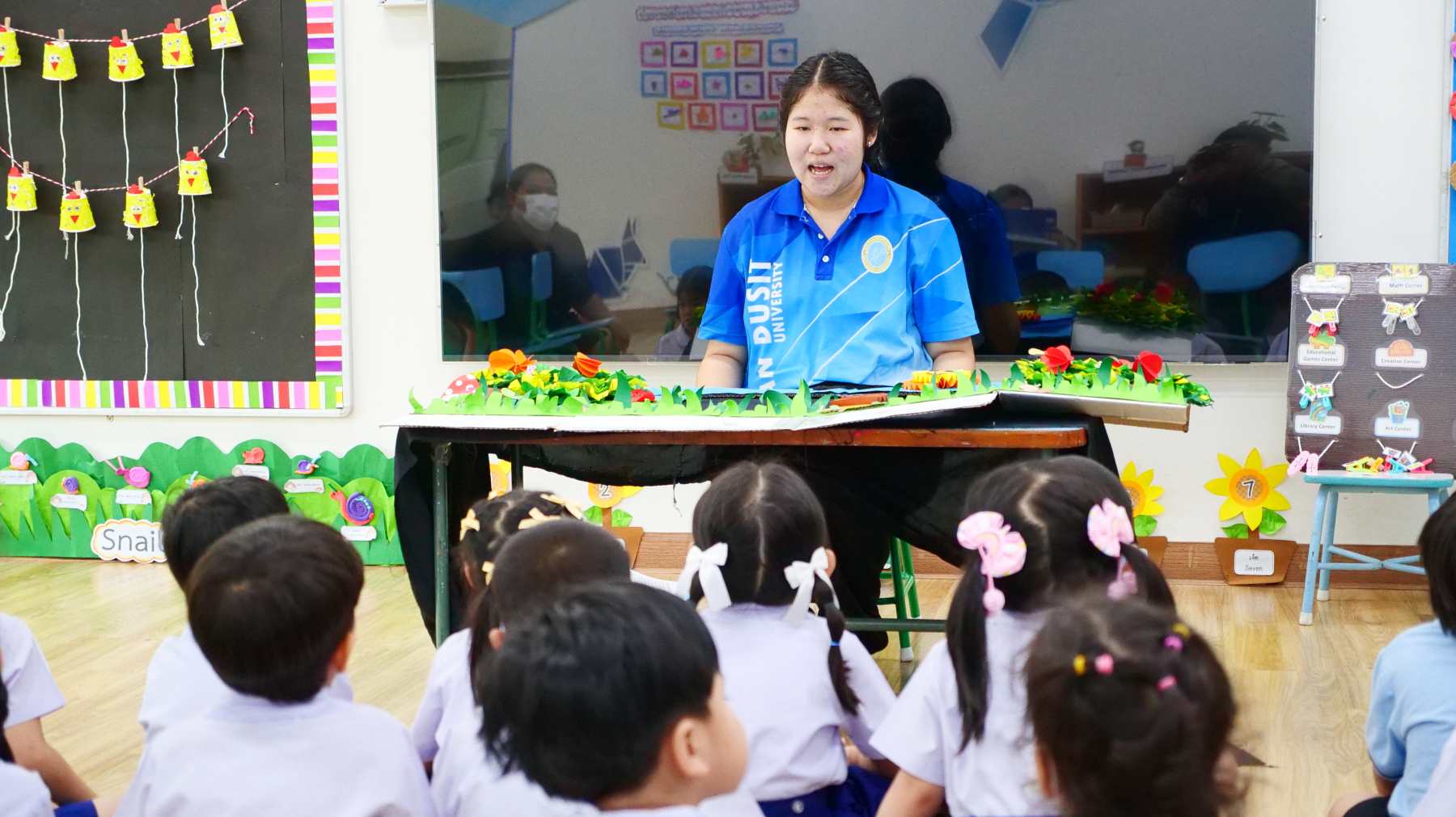 มหาวิทยาลัยสวนดุสิต ศูนย์การศึกษา นครนายก หลักสูตรศึกษาศาสตรบัณฑิต สาขาวิชาการศึกษาปฐมวัย จัดกิจกรรมความร่วมมือรายวิชาแลกเปลี่ยนเรียนรู้การจัดการเรียนการสอนร่วมกับโรงเรียนสาธิตละอออุทิศ นำโดยอาจารย์ฉัตรทราวดี บุญถนอม อาจารย์ผู้สอนรายวิชา ภาษาและการรู้หนังสือสำหรับเด็กปฐมวัย พานักศึกษาชั้นปีที่ 1 เข้าเล่านิทานประกอบสื่อเพื่อส่งเสริมการเรียนรู้ทางภาษา ให้เด็กระดับชั้นบ้านสาธิต – อนุบาลปีที่ 3 ในวันที่ 26 มกราคม 2569 เวลา 09.00 – 15.00 น. ณ โรงเรียนสาธิตละอออุทิศ ศูนย์การศึกษา นครนายก