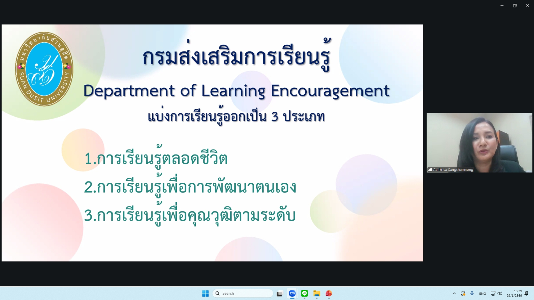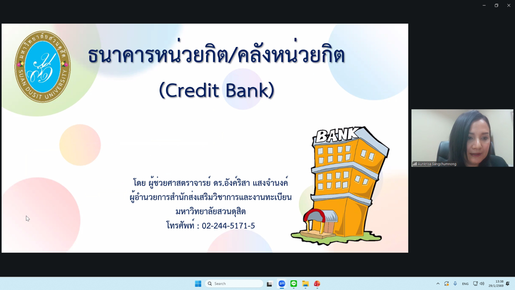 การประชุมดังกล่าวจัดขึ้นในรูปแบบ ออนไลน์ผ่านโปรแกรม Zoom Meeting ในวันพฤหัสบดีที่ ๒๙ มกราคม ๒๕๖๙ ระหว่างเวลา ๑๓.๓๐ – ๑๖.๓๐ น. โดยมีวัตถุประสงค์เพื่อสร้างความเข้าใจเกี่ยวกับแนวทางการจัดการศึกษา โครงสร้างหลักสูตร เงื่อนไขการเข้าศึกษา และประโยชน์ของโครงการ SDU Pre-degree ซึ่งเปิดโอกาสให้นักเรียนระดับมัธยมศึกษาตอนปลายสามารถเรียนล่วงหน้าและสะสมหน่วยกิตเพื่อศึกษาต่อในระดับอุดมศึกษา