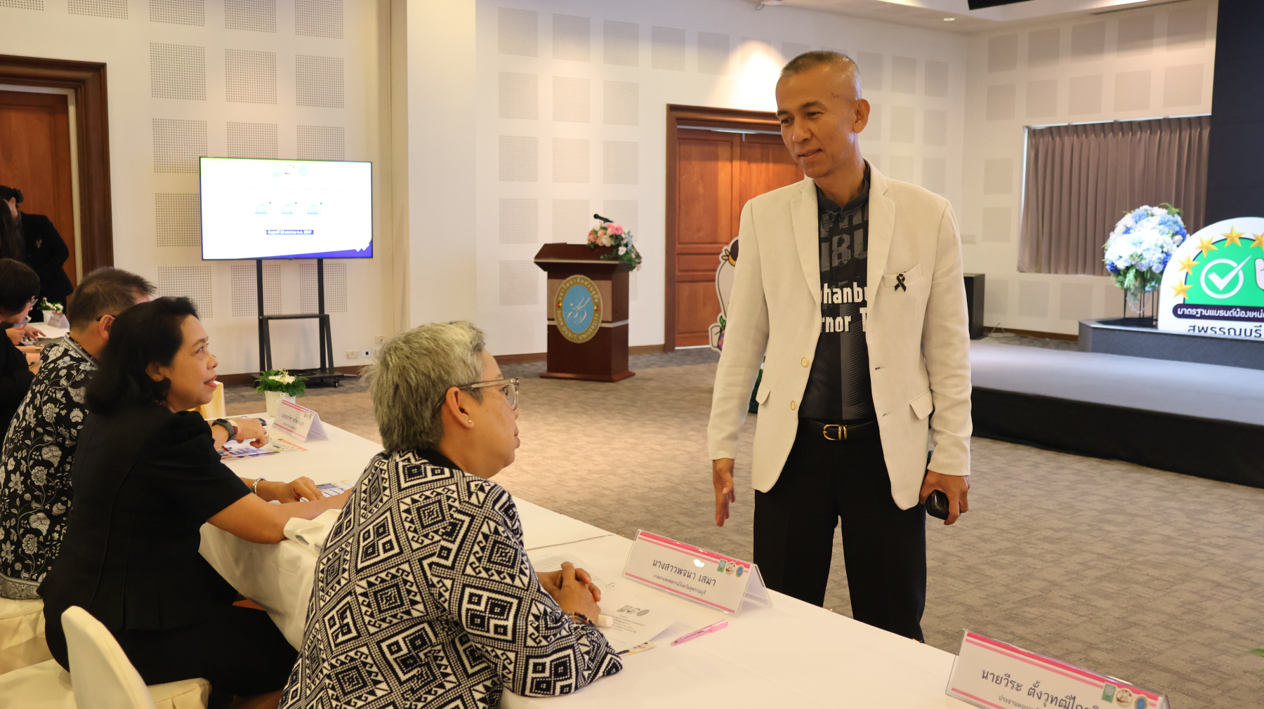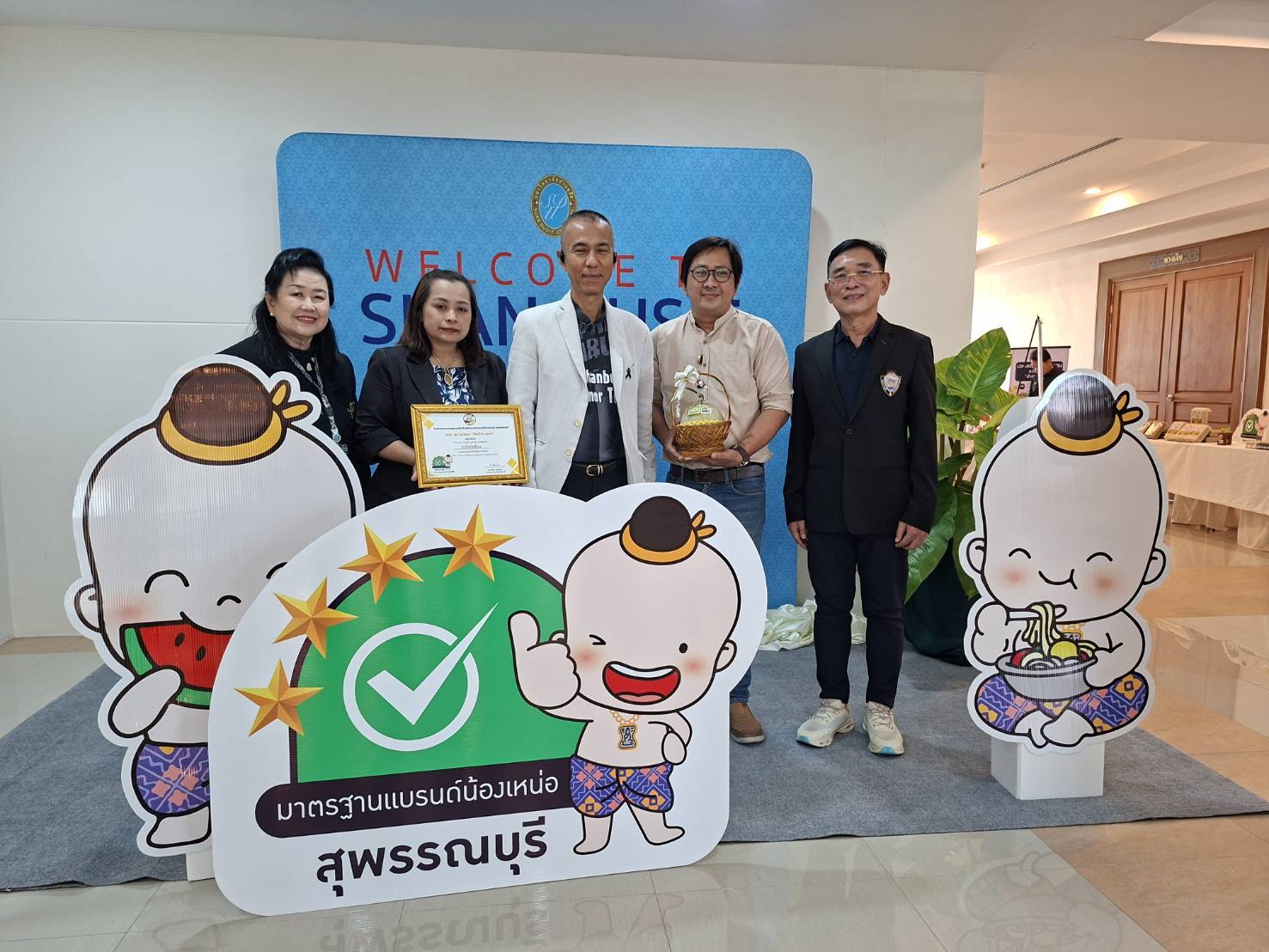 มหาวิทยาลัยสวนดุสิต วิทยาเขตสุพรรณบุรี โดย ดร.วรานี เวสสุนทรเทพ รองอธิการบดีฝ่ายวิทยาเขตสุพรรณบุรี ร่วมต้อนรับและกล่าวเปิดกิจกรรมการนำเสนอการพัฒนามาตรฐานแบรนด์น้องเหน่อ จังหวัดสุพรรณบุรี (ศึกษาเฉพาะกรณีผลิตภัณฑ์อาหาร) โดยมี นายณัฐพงษ์ สงวนจิตร ผู้ว่าราชการจังหวัดสุพรรณบุรี มอบนโยบายในภาพรวมยุทธศาสตร์ด้านผลิตภัณฑ์อาหาร จังหวัดสุพรรณบุรี และ ผู้ช่วยศาสตราจารย์ ดร.ปรียนันท์ ประยูรศักดิ์ คณบดีคณะวิทยาการจัดการ หัวหน้าโครงการวิจัยและทีมงาน กล่าวแนะนำโครงการวิจัย โดยในกิจกรรม การเสวนา “เกณฑ์มาตรฐานอาหารแบรนด์น้องเหน่อสู่การขับเคลื่อนอาหารปลอดภัย จังหวัดสุพรรณบุรี” โดย – เกษตรและสหกรณ์จังหวัดสุพรรณบุรี – พาณิชย์จังหวัดสุพรรณบุรี – คุณวีระ ตั้งวุทฒิไกรวิทย์ ประธานหอการค้าจังหวัดสุพรรณบุรี คุณทิพย์เนตร แฉล้ม ตัวแทนจากกลุ่มผู้ประกอบการรุ่นใหม่ YEC สุพรรณบุรีหอการค้าจังหวัดสุพรรณบุรี ดำเนินการเสวนา โดย ผู้ช่วยศาสตราจารย์ ดร.กฤษณพร ประสิทธิ์วิเศษ และ กิจกรรมเชิญชวนเข้าร่วมการยื่นขอรับรองมาตรฐานผลิตภัณฑ์อาหาร แบรนด์น้องเหน่อ ในวันศุกร์ที่ 23 มกราคม 2569 เวลา 13.00-16.00 น. ณ ห้องประชุมพวงเงิน ชั้น 2 ศูนย์ปฏิบัติการอาหารมุสลิม (อาคารจันทร์เจริญ) มหาวิทยาลัยสวนดุสิต วิทยาเขตสุพรรณบุรี