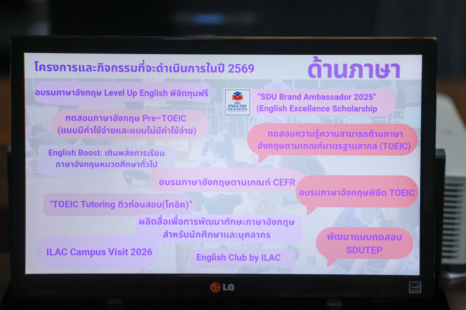 ผู้ช่วยศาสตราจารย์ ดร.พิทักษ์ จันทร์เจริญ อธิการบดีมหาวิทยาลัยสวนดุสิต เป็นประธานประชุมเพื่อนำผลการดำเนินงานลงสู่การปฏิบัติ ของหน่วยงาน สถาบันภาษา ศิลปะและวัฒนธรรม โดยมีผู้บริหารและบุคลากรเข้าร่วมประชุม พร้อมนำเสนอแผนการดำเนินงานสู่การปฏิบัติ เมื่อวันอังคารที่ 3 กุมภาพันธ์ 2569 ณ ห้องประชุมลำพอง 2