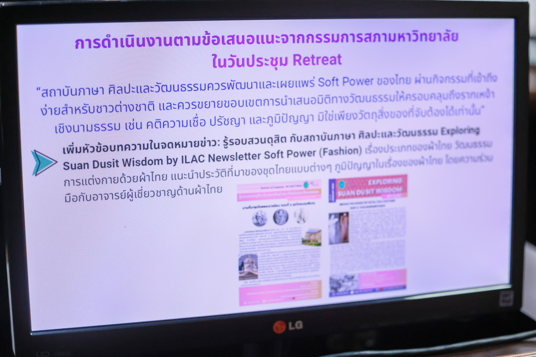 มหาวิทยาลัยสวนดุสิต จัดประชุมเพื่อนำผลการดำเนินงานลงสู่การปฏิบัติ หน่วยงานสถาบันภาษา ศิลปะและวัฒนธรรม