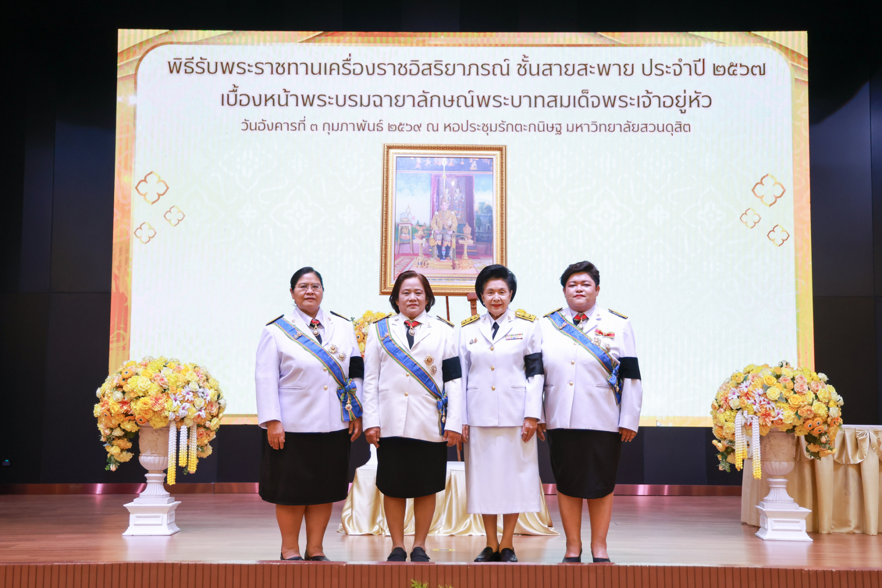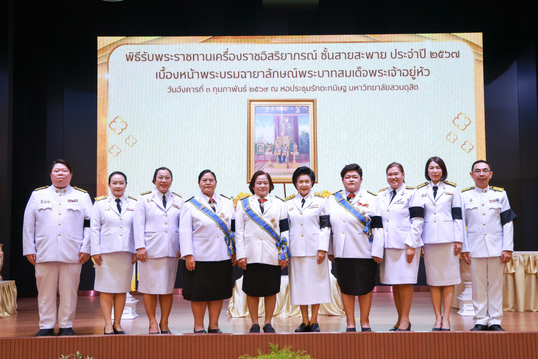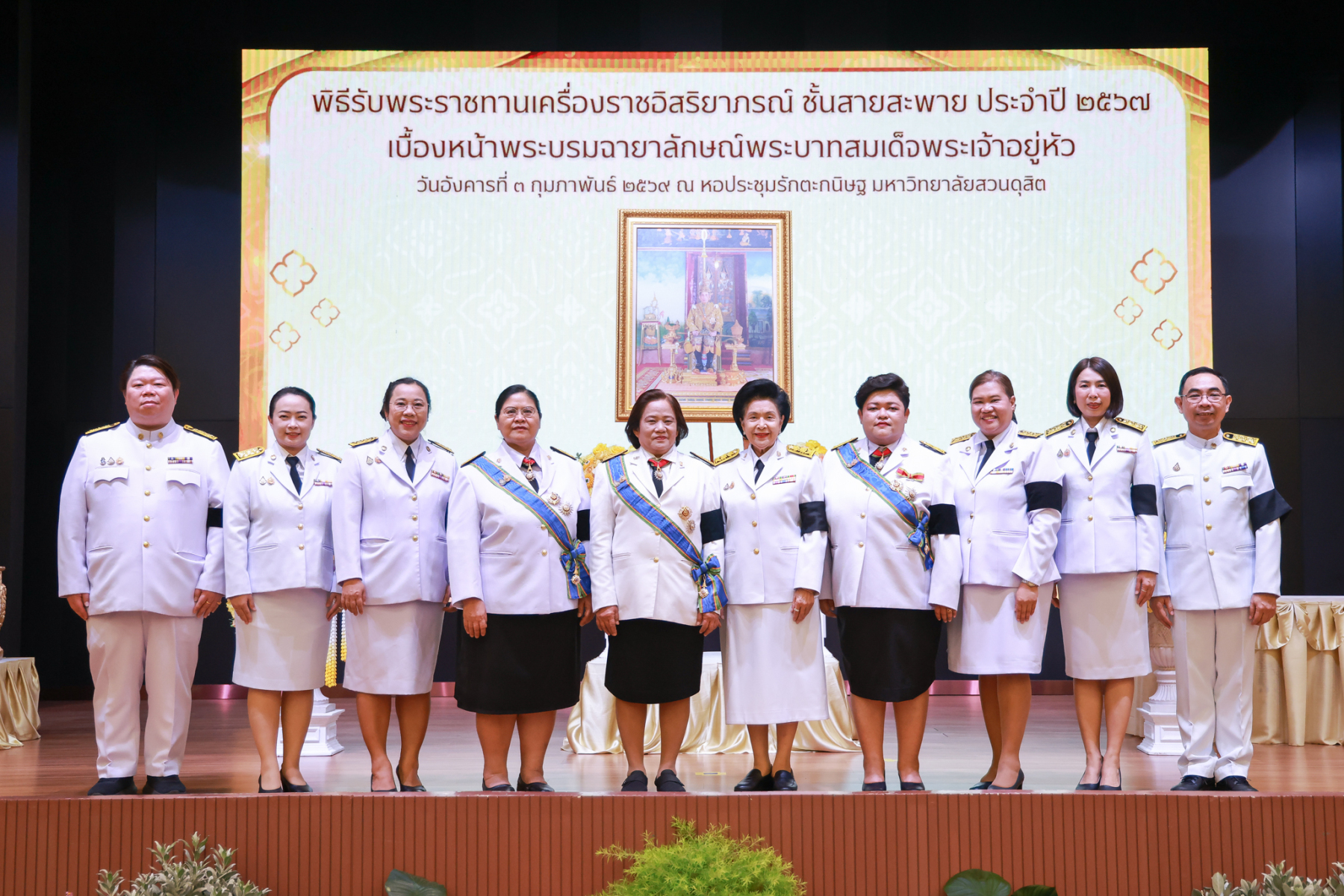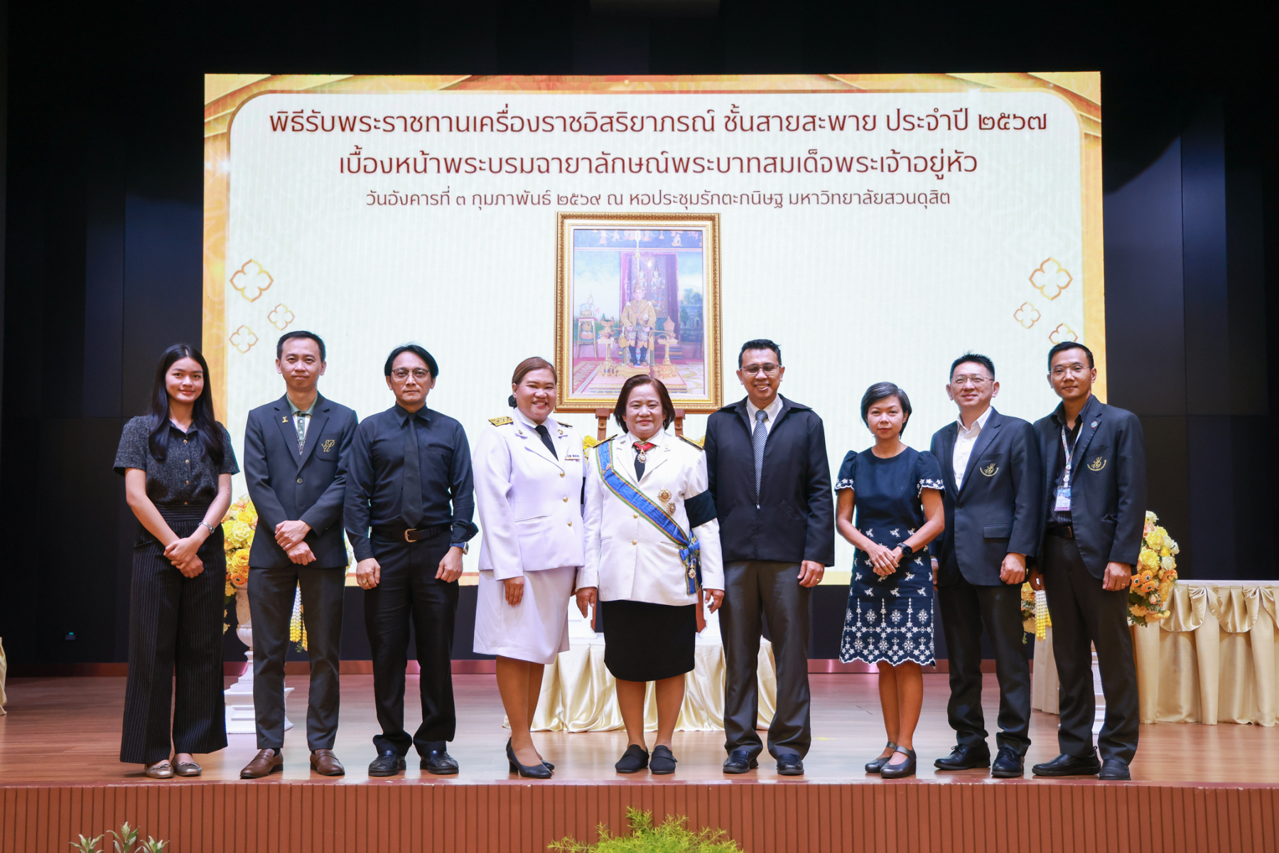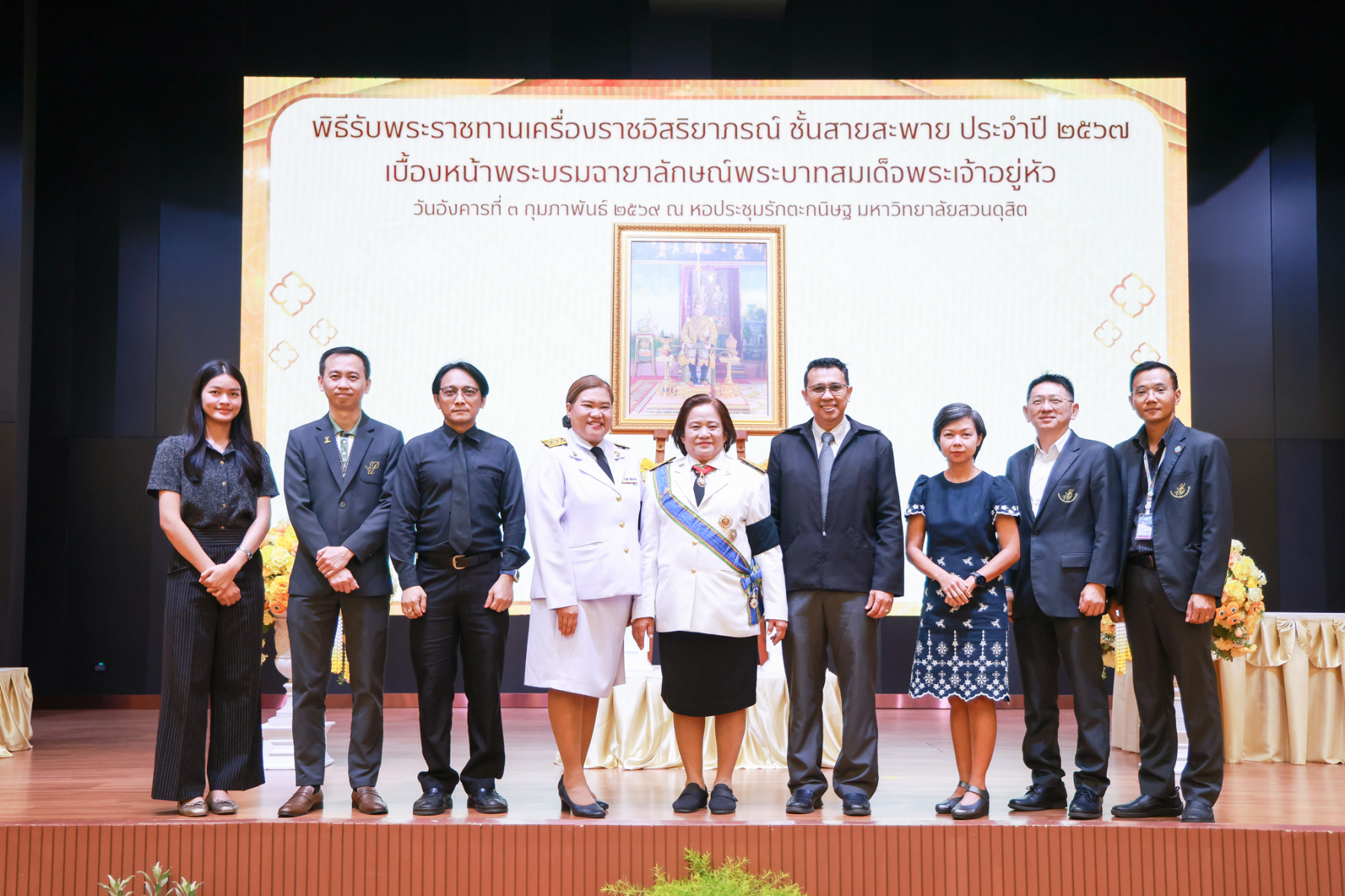 มหาวิทยาลัยสวนดุสิต จัดพิธีรับพระราชทานเครื่องราชอิสริยาภรณ์ ชั้นสายสะพาย ประจำปี 2567 เบื้องหน้าพระบรมฉายาลักษณ์พระบาทสมเด็จพระเจ้าอยู่หัว