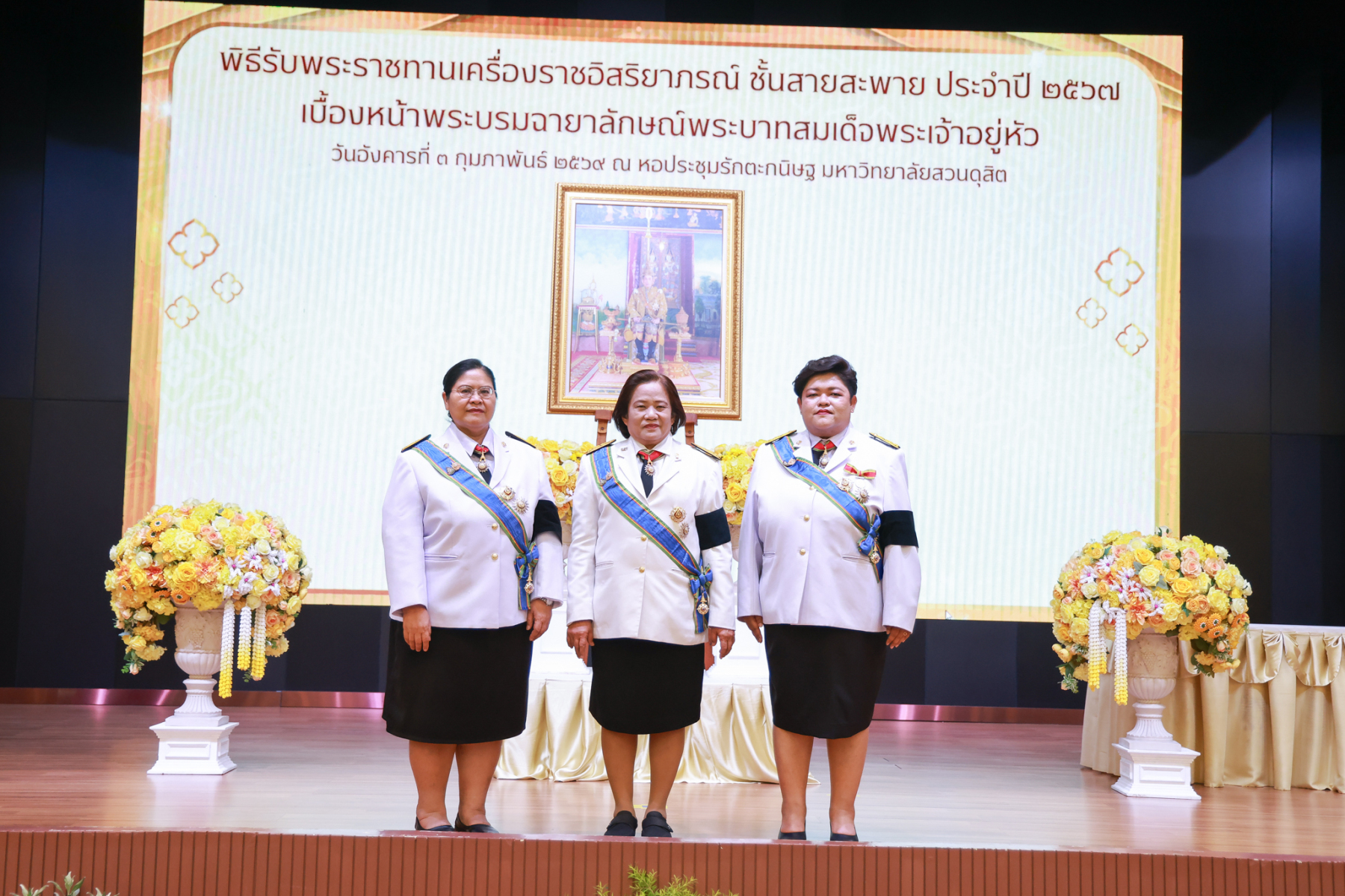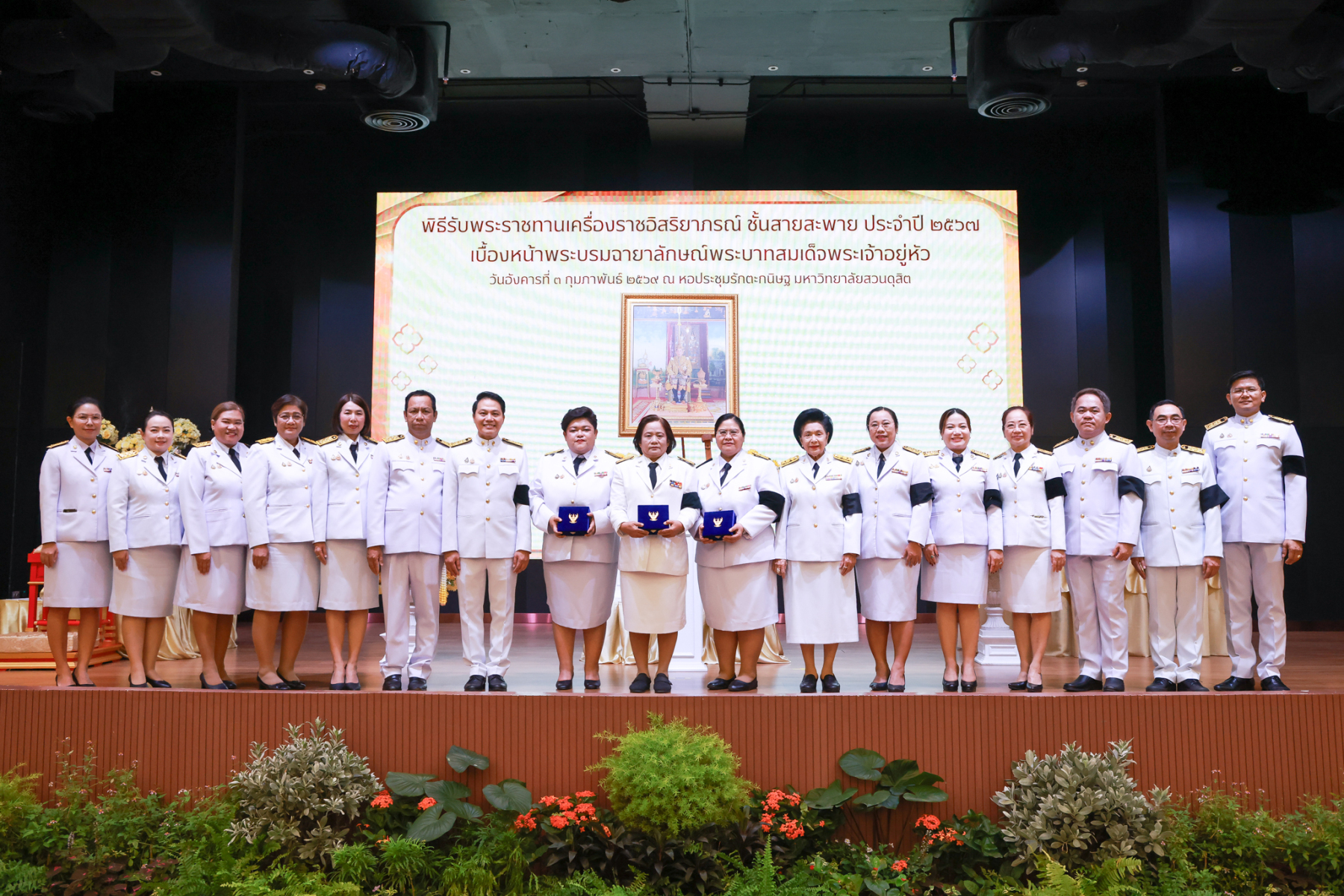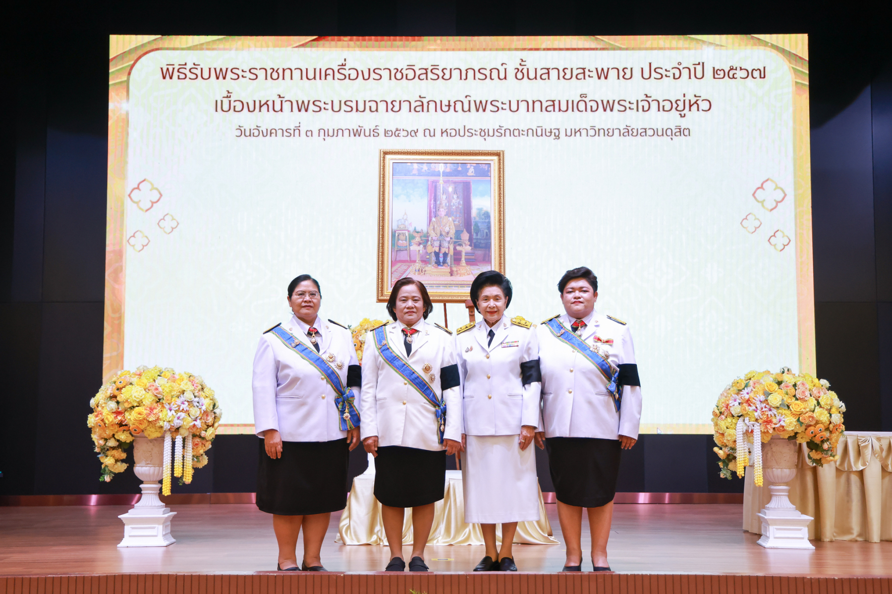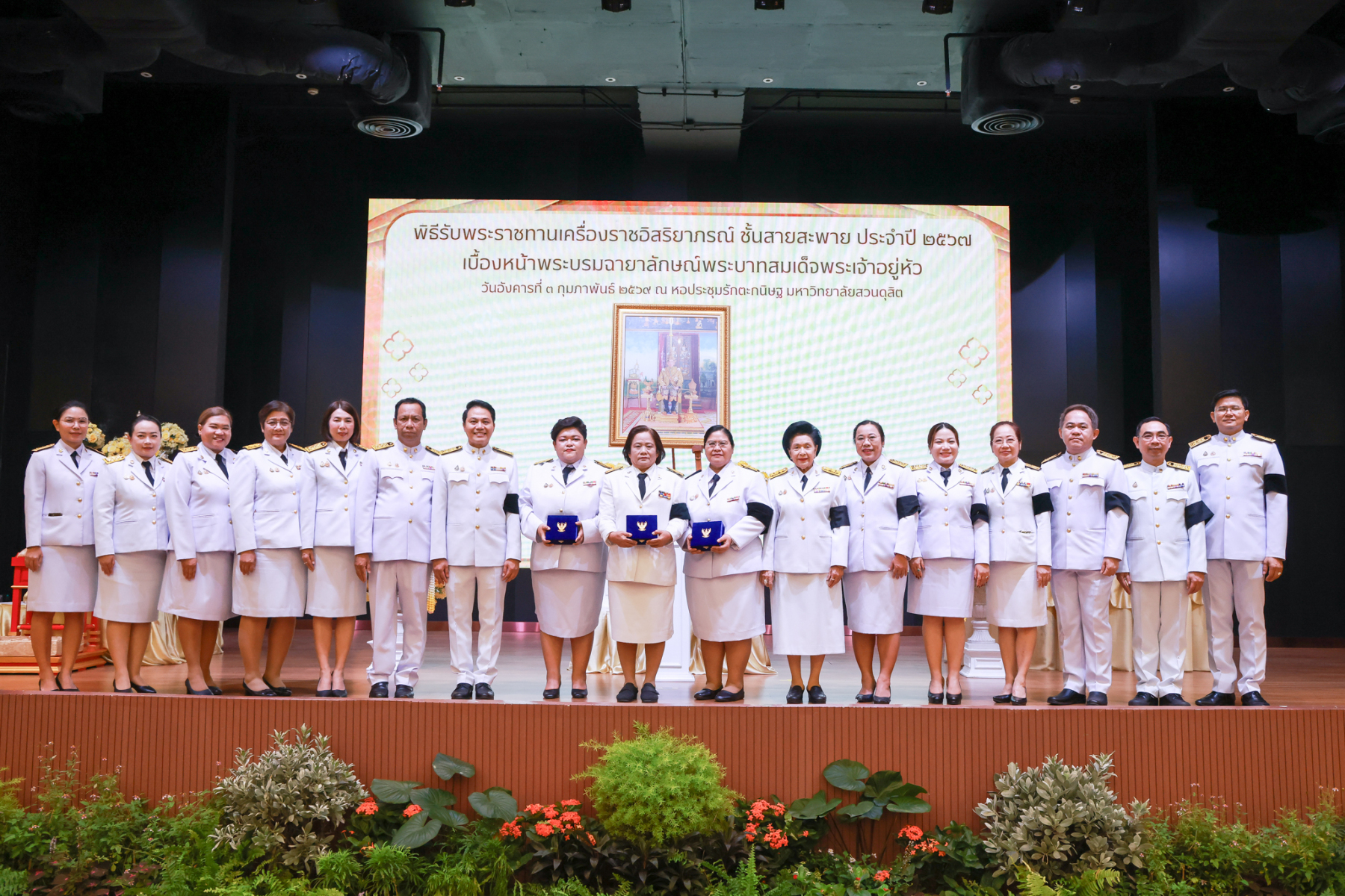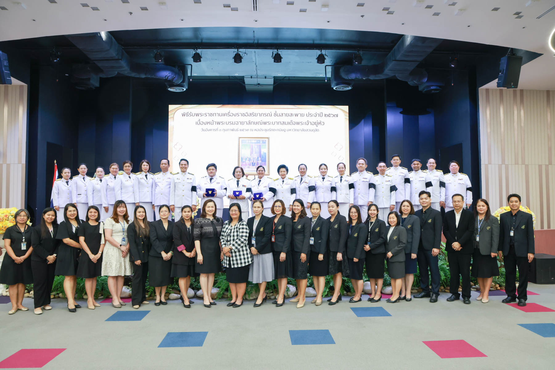 มหาวิทยาลัยสวนดุสิต จัดพิธีรับพระราชทานเครื่องราชอิสริยาภรณ์ ชั้นสายสะพาย ประจำปี 2567 เบื้องหน้าพระบรมฉายาลักษณ์พระบาทสมเด็จพระเจ้าอยู่หัว