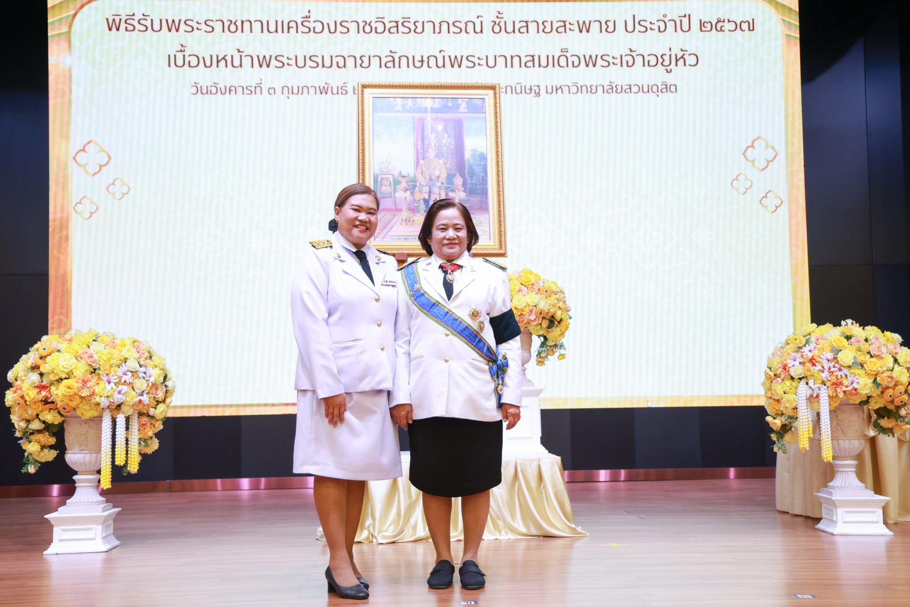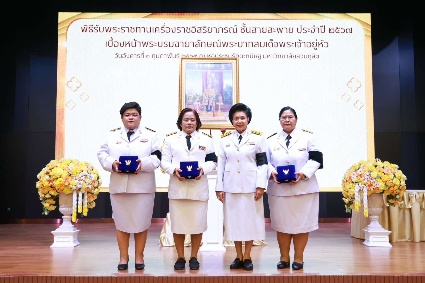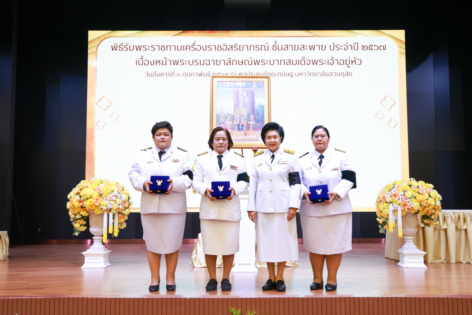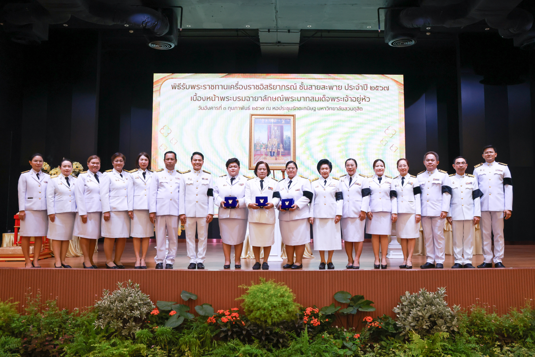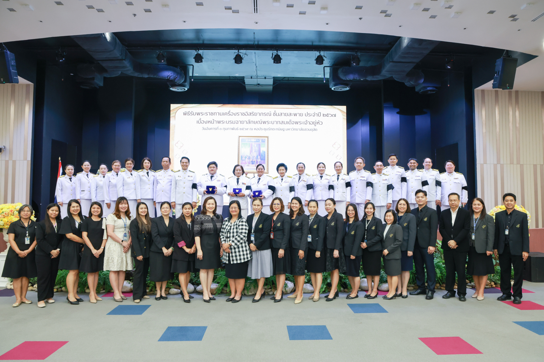มหาวิทยาลัยสวนดุสิต จัดพิธีรับพระราชทานเครื่องราชอิสริยาภรณ์ ชั้นสายสะพาย ประจำปี 2567 เบื้องหน้าพระบรมฉายาลักษณ์พระบาทสมเด็จพระเจ้าอยู่หัว