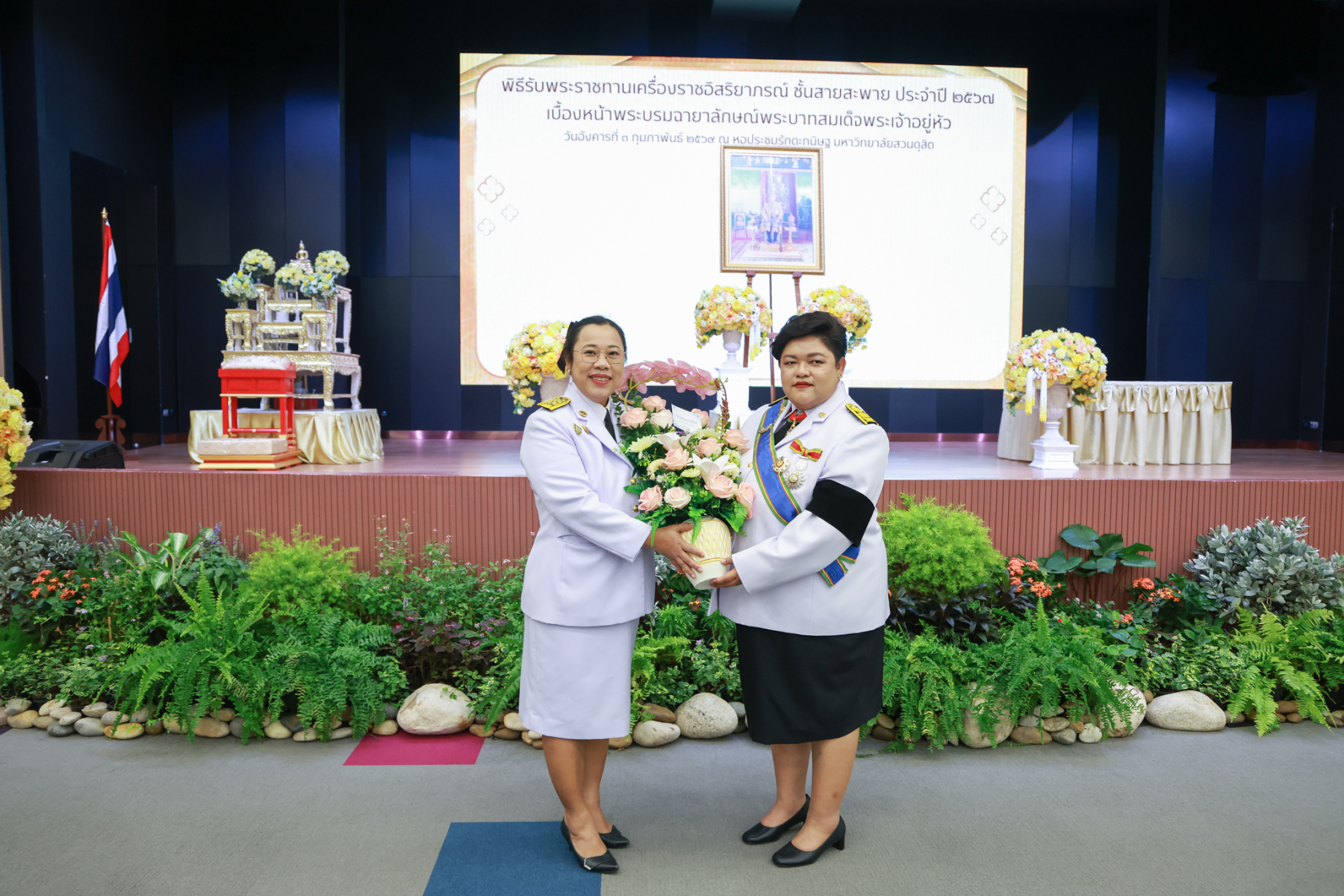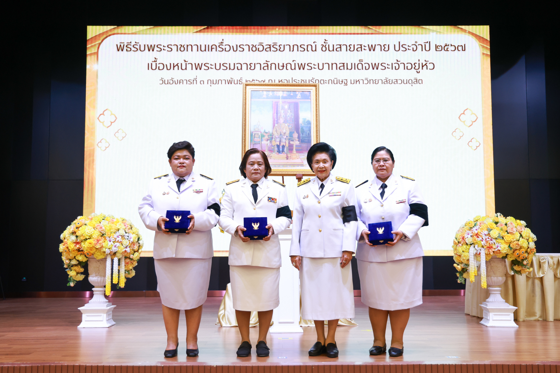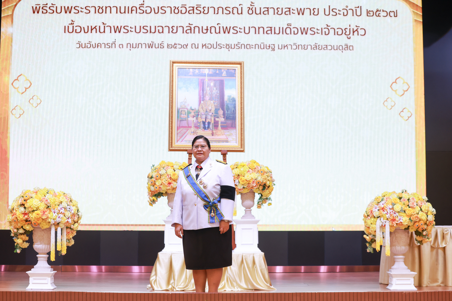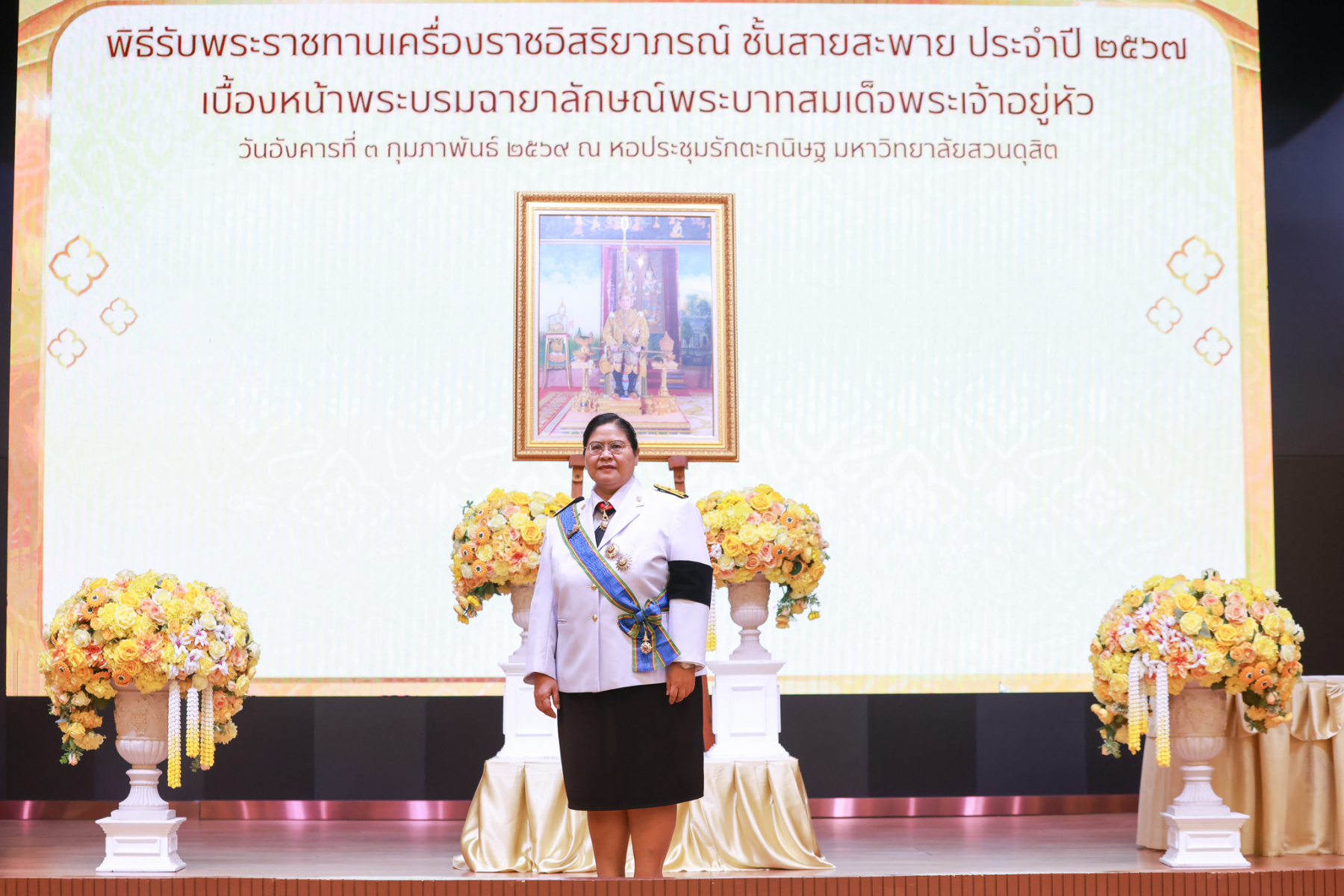 มหาวิทยาลัยสวนดุสิต จัดพิธีรับพระราชทานเครื่องราชอิสริยาภรณ์ ชั้นสายสะพาย ประจำปี 2567 เบื้องหน้าพระบรมฉายาลักษณ์พระบาทสมเด็จพระเจ้าอยู่หัว
