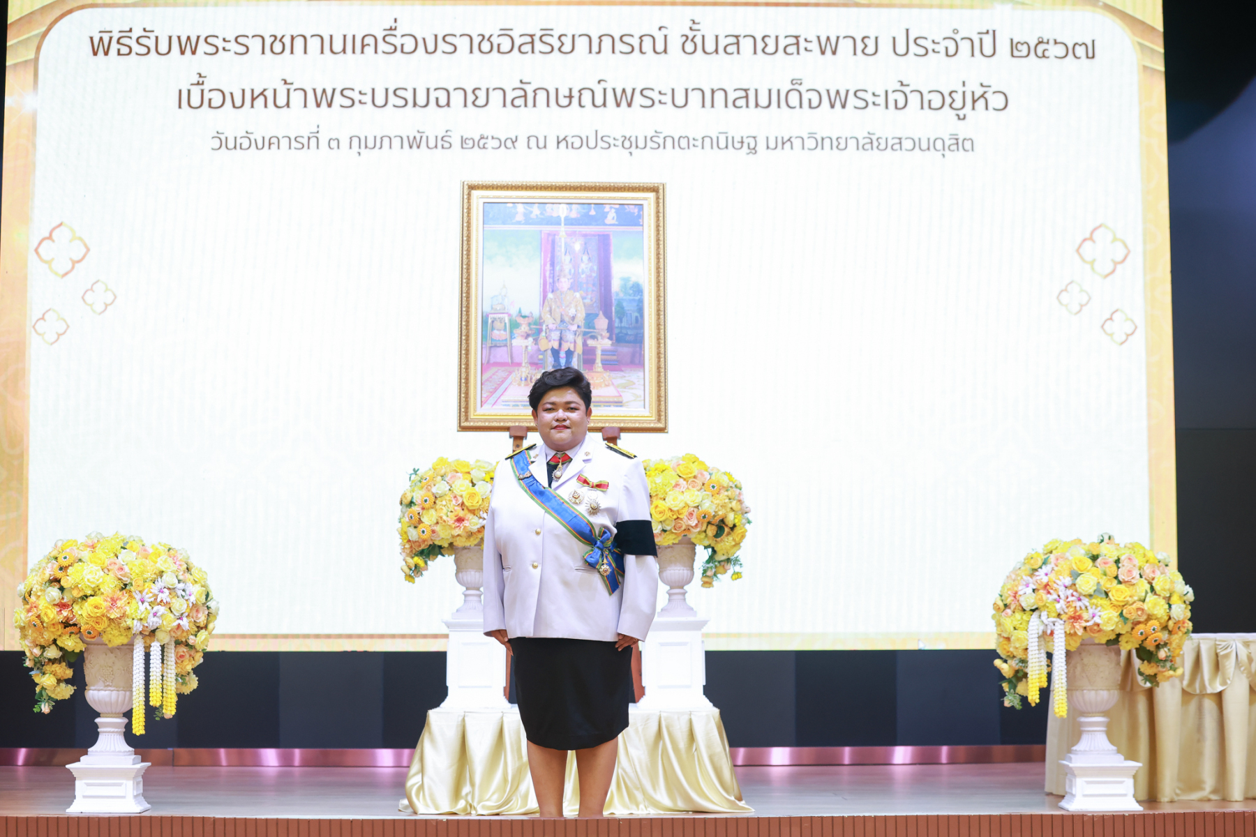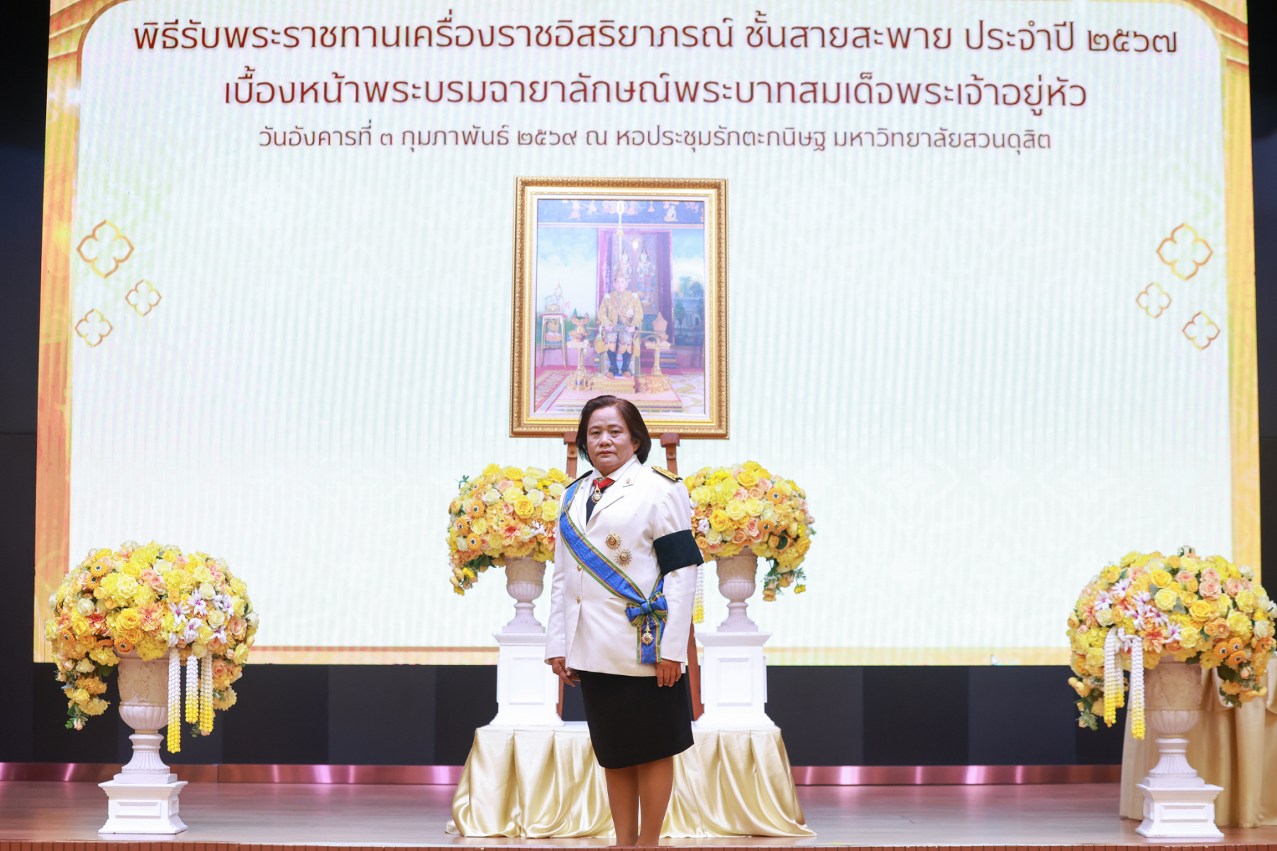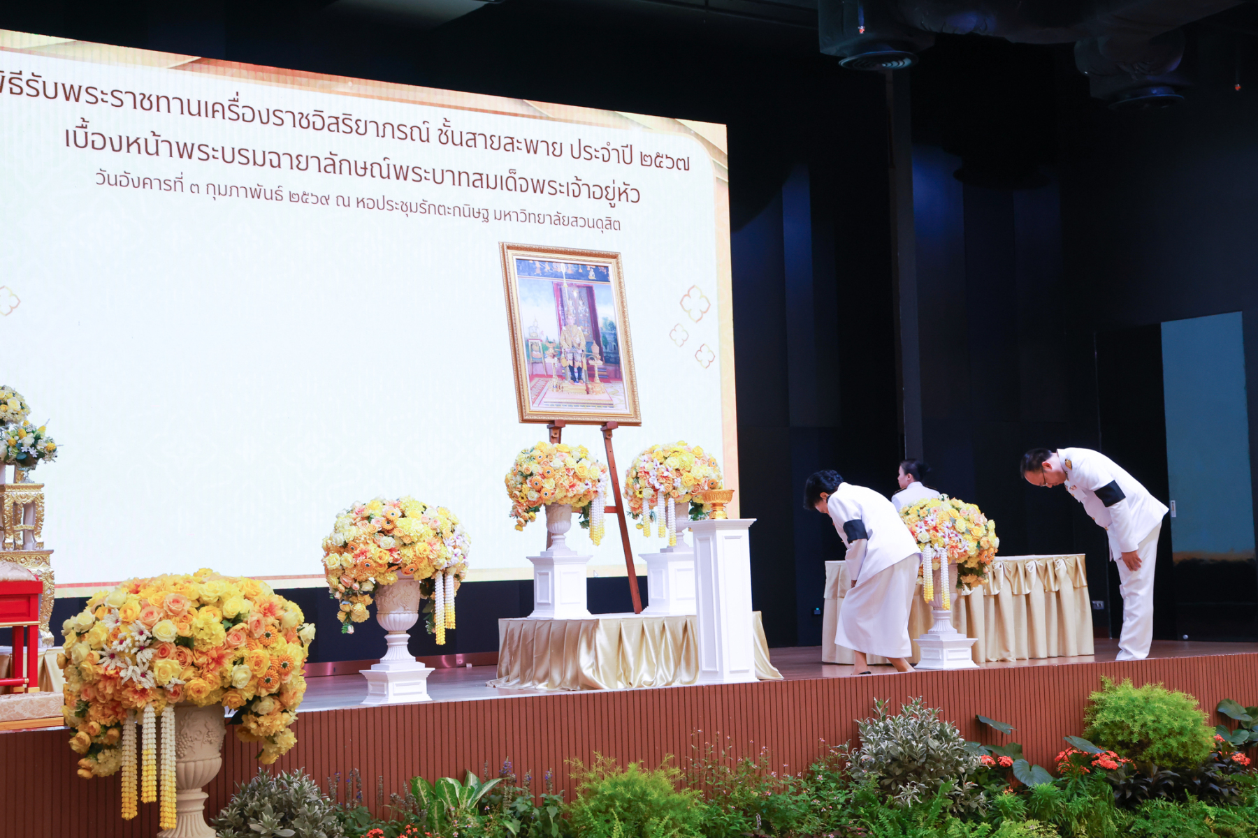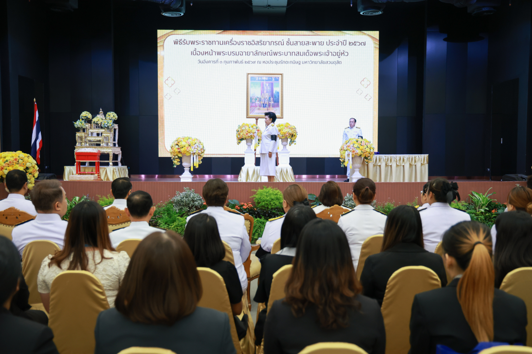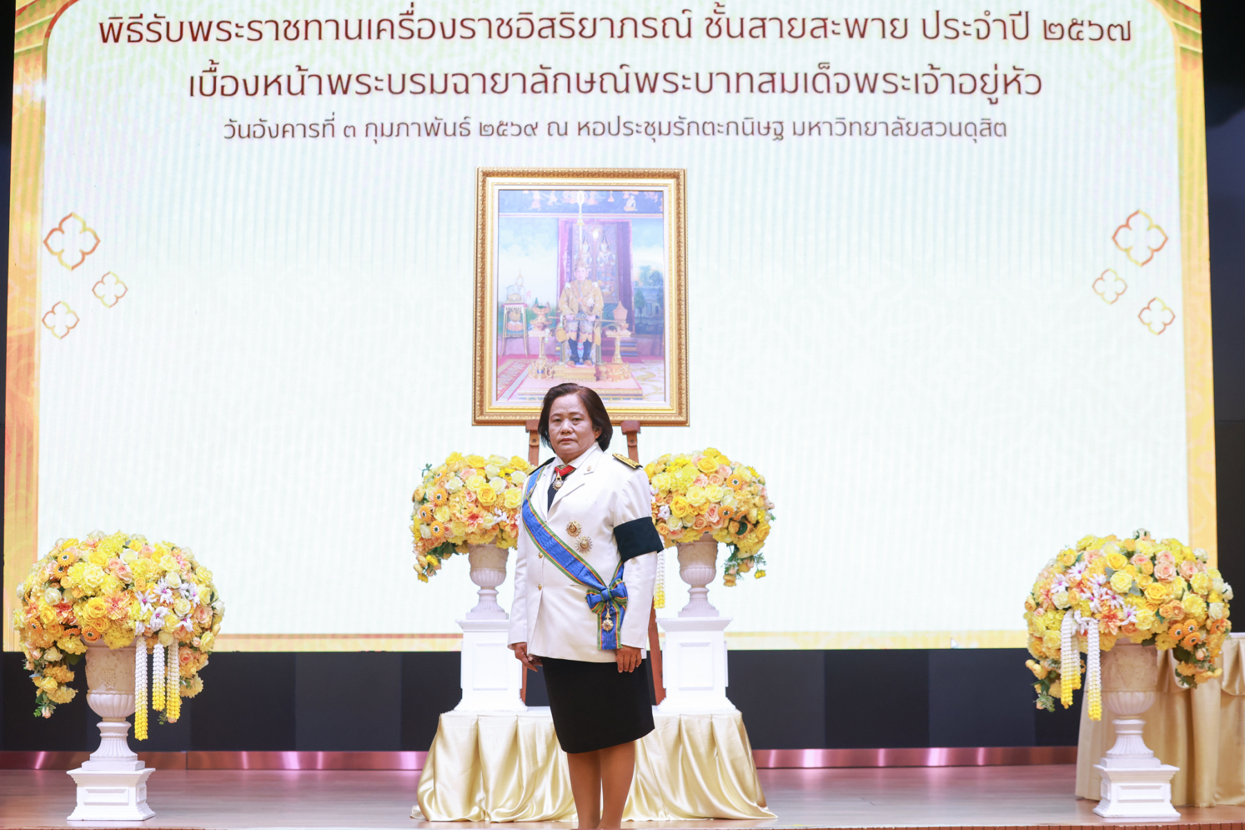 มหาวิทยาลัยสวนดุสิต จัดพิธีรับพระราชทานเครื่องราชอิสริยาภรณ์ ชั้นสายสะพาย ประจำปี 2567 เบื้องหน้าพระบรมฉายาลักษณ์พระบาทสมเด็จพระเจ้าอยู่หัว