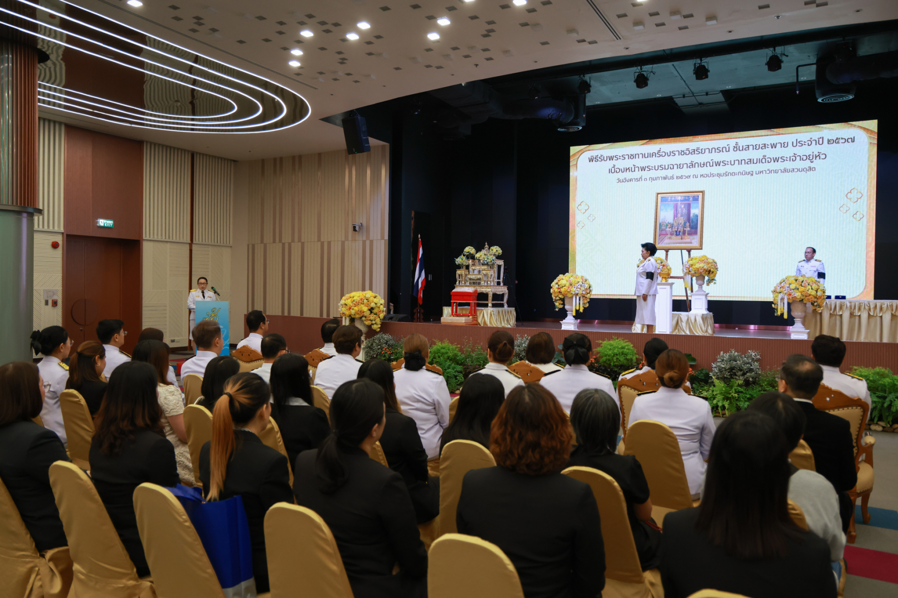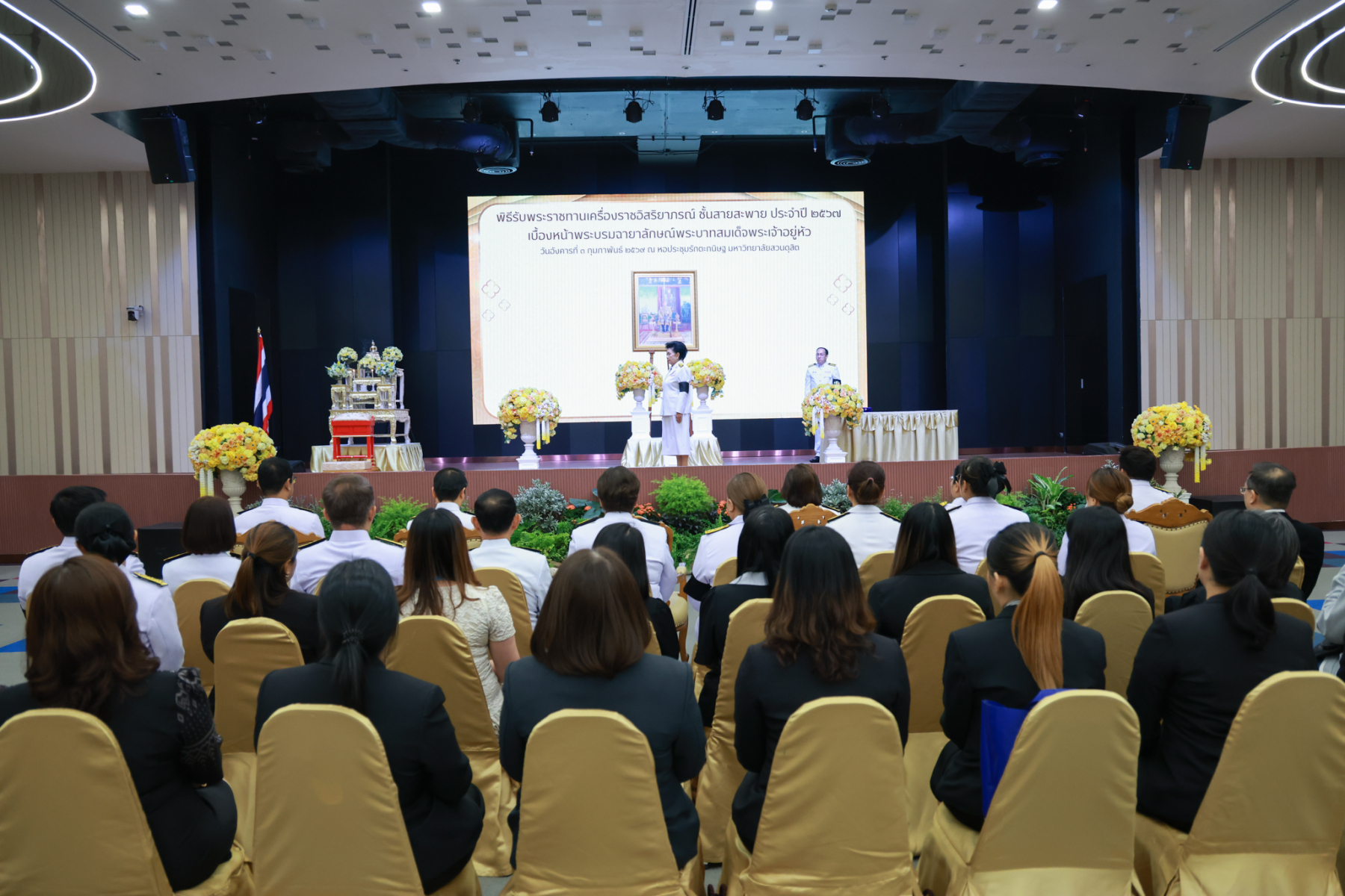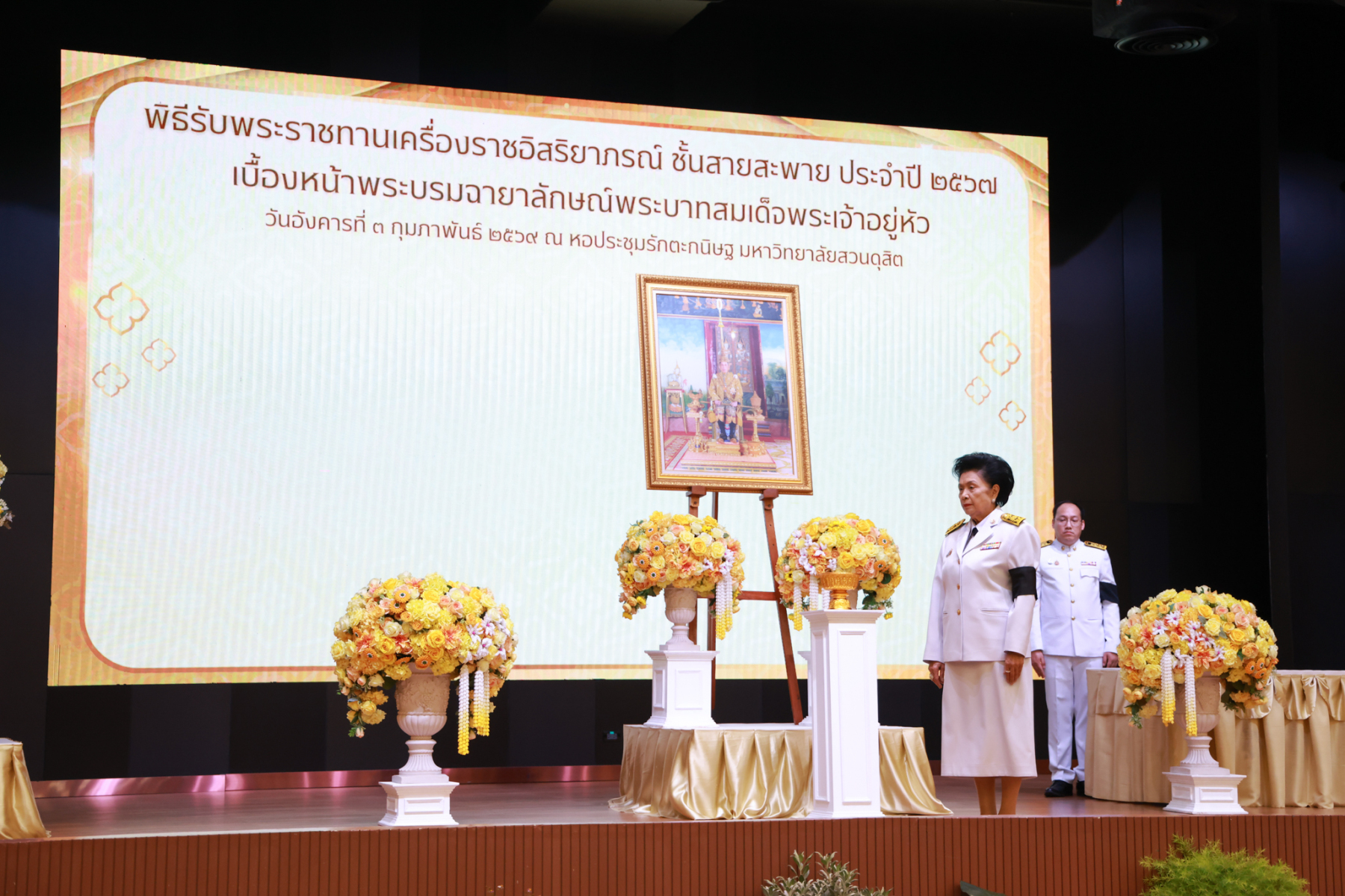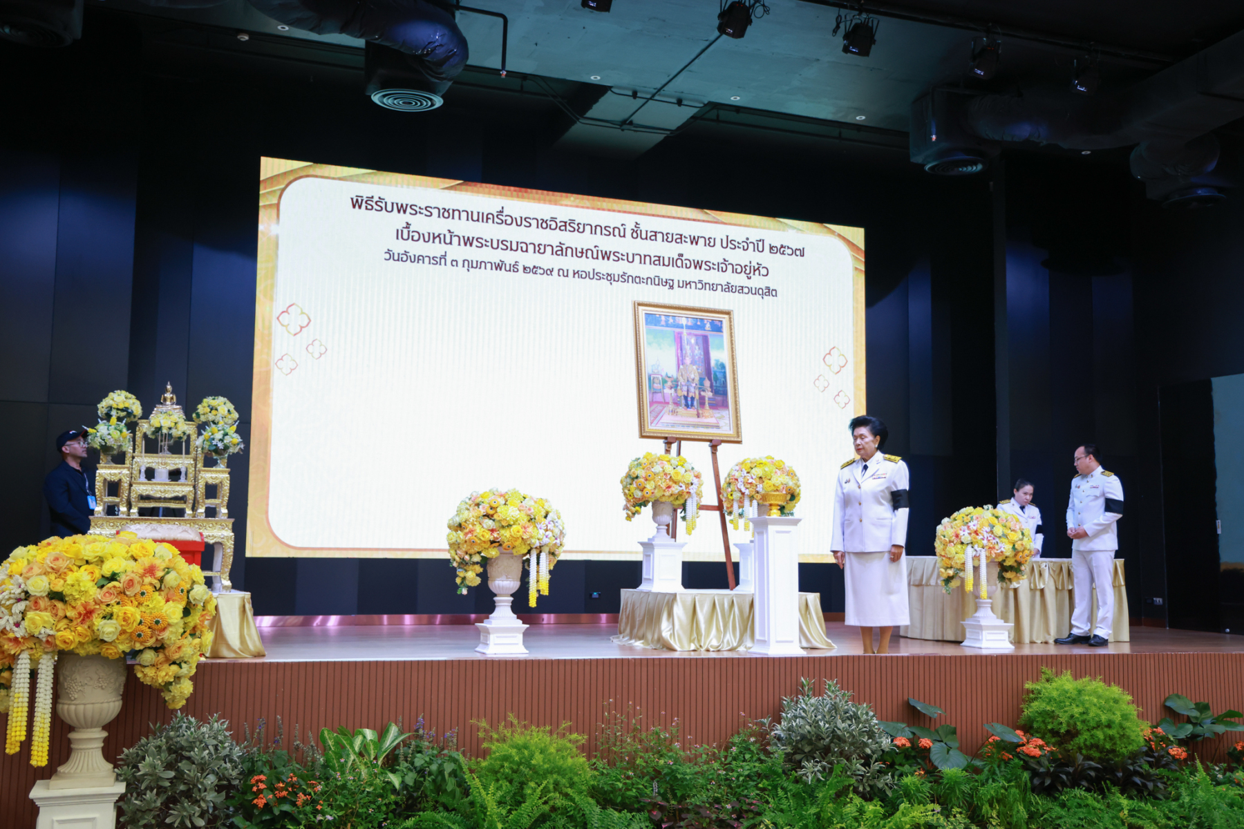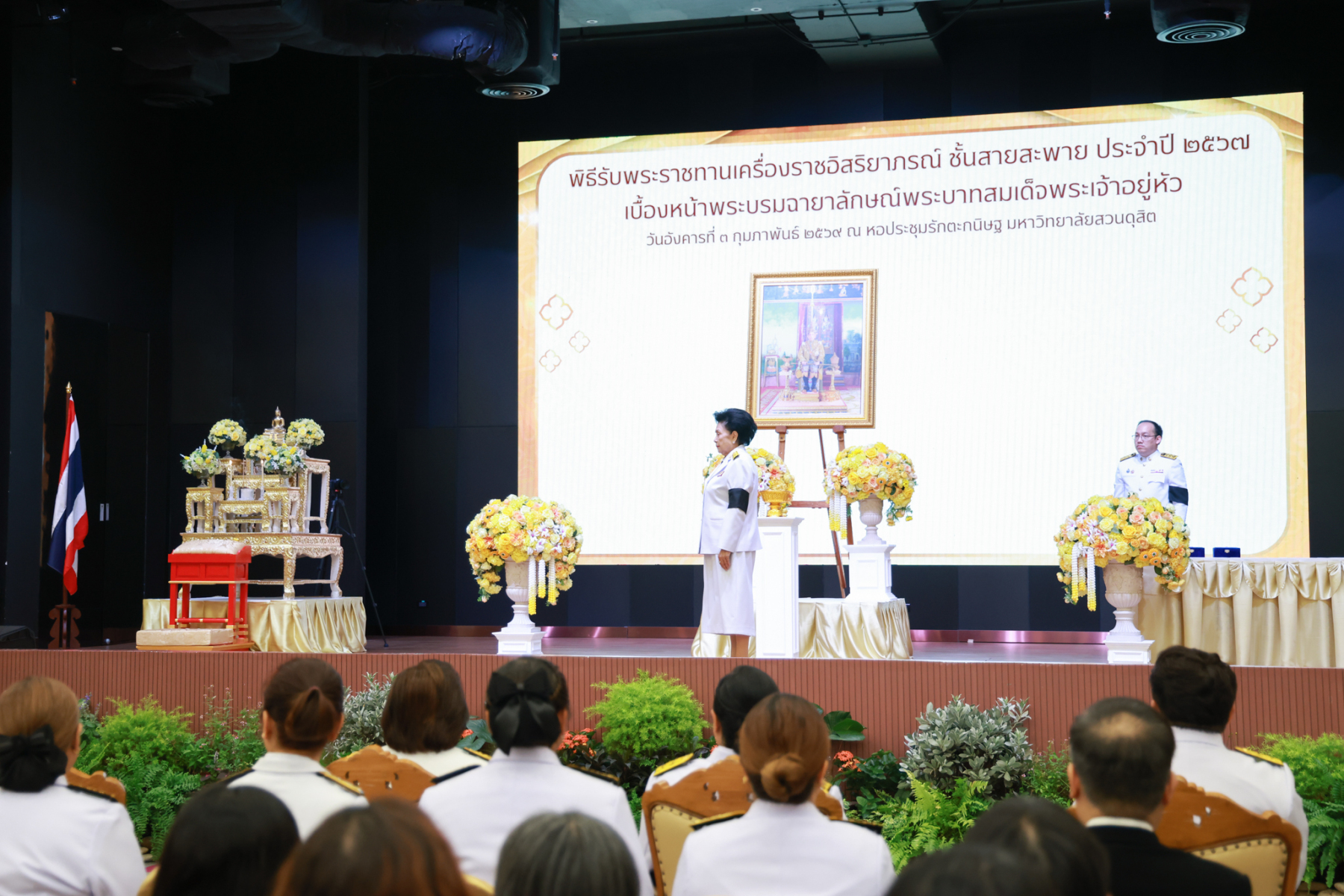 มหาวิทยาลัยสวนดุสิต จัดพิธีรับพระราชทานเครื่องราชอิสริยาภรณ์ ชั้นสายสะพาย ประจำปี 2567 เบื้องหน้าพระบรมฉายาลักษณ์พระบาทสมเด็จพระเจ้าอยู่หัว